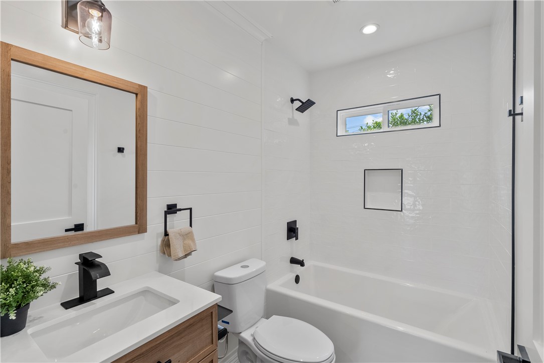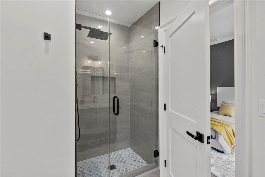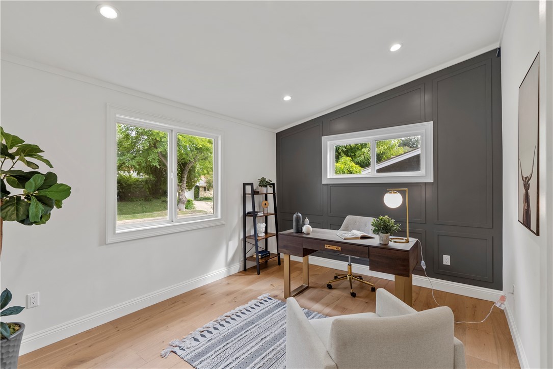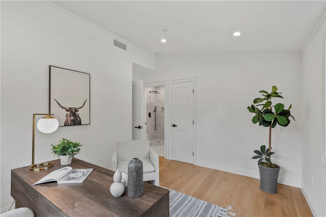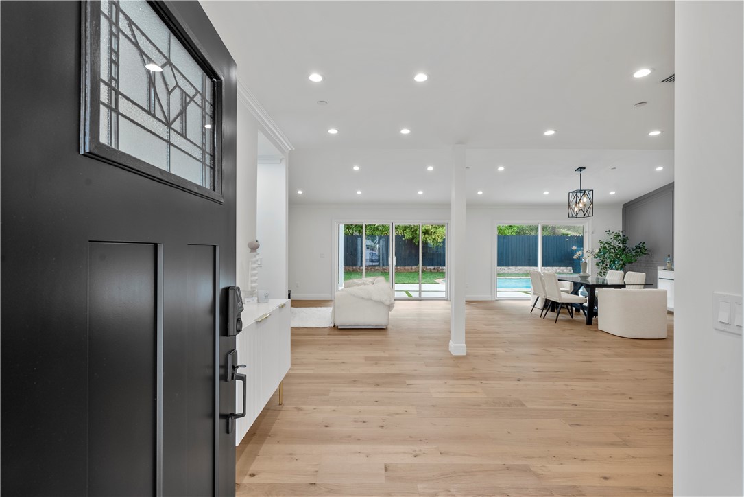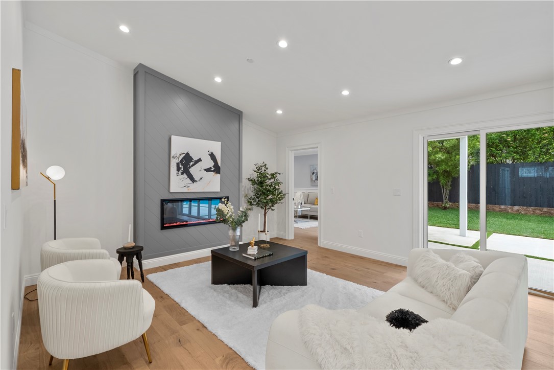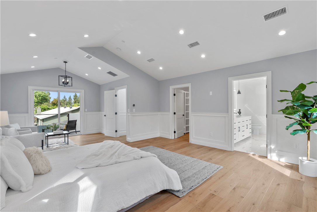 Experience the tranquility of a lush, tree-lined sanctuary south of Ventura Boulevard in the most desirable pocket of Woodland Hills. This is a dream location to enjoy peaceful surroundings and call home. With over 1,000 feet of brand new construction added, this modest 3 bed/2 bath Charles Du Bois home has been transformed into a modern, spacious 5 bed/5.5 bath masterpiece. Even more incredible is that all five bedrooms include private en suite bathrooms. The stunning attention to detail and quality are breathtaking, creating an atmosphere that genuinely feels one of a kind. When you step inside, the sight of engineered hardwood flooring greets you with an aura of richness underfoot. The open-concept area welcomes you with a warm and inviting environment while highlighting the high vaulted ceilings that echo sophistication. Moving onwards leads you into the custom-designed kitchen that connects modern functionality with style. A striking 9' quartz island takes center stage, paired with matching countertops to complete an intoxicating mix of form and function. On the ground level are four expansive bedrooms and a private laundry room, with two of the bedrooms granted access to the outdoors through sliding glass doors. Journey upstairs into the secluded primary bedroom: a cocoon of comfort featuring arched ceilings paired with a large walk-in closet and a captivating bathroom housing a tranquil standalone tub. Start your day with the serenity of a private balcony overlooking the backyard and inground pool. Additional new items include kitchen appliances, lighting, windows, sliding glass doors throughout, smooth exterior-coat stucco, gutters, roof, rain barrels, (2) HVAC units (one for downstairs and one for upstairs), fireplace, electrical/plumbing, electrical panel, (2) water heaters, finished two car garage, driveway and pool patio hardscape, landscaping, fire sprinkler system. Situated less than a mile from the Calabasas Commons and close to Calabash Elementary Charter School, this property blends modern living with unparalleled convenience. Don't hesitate - make your forever home a reality!