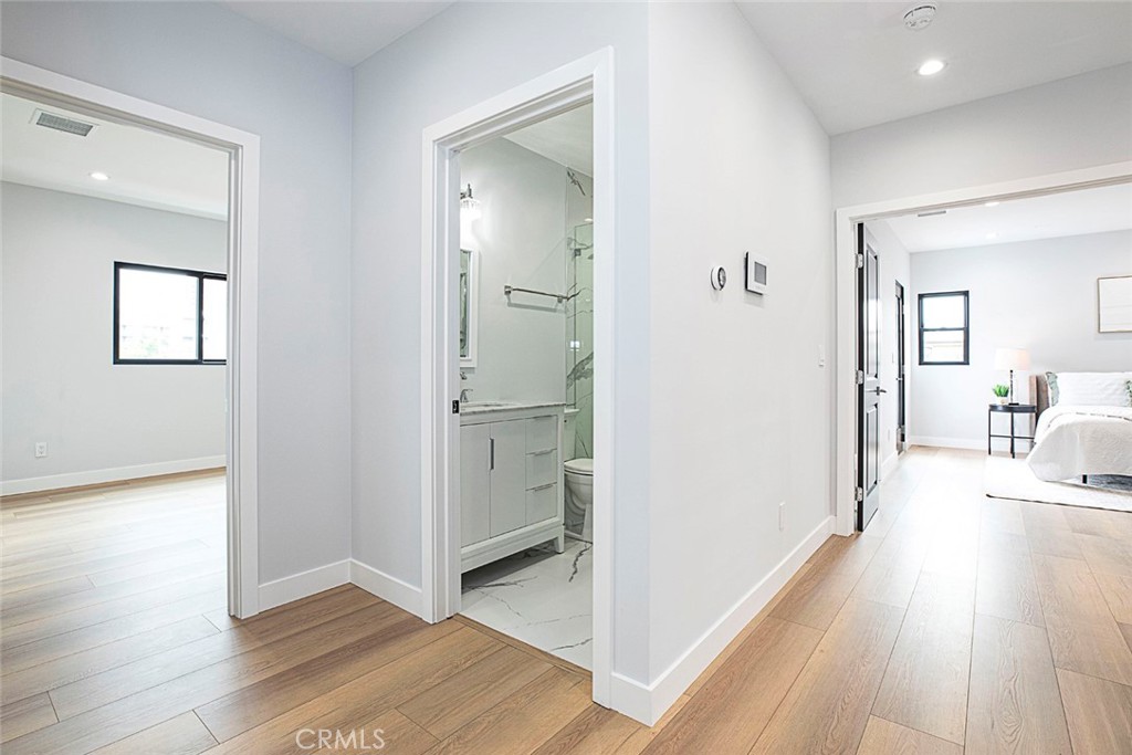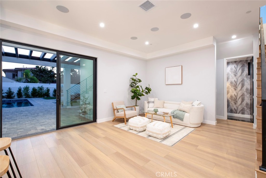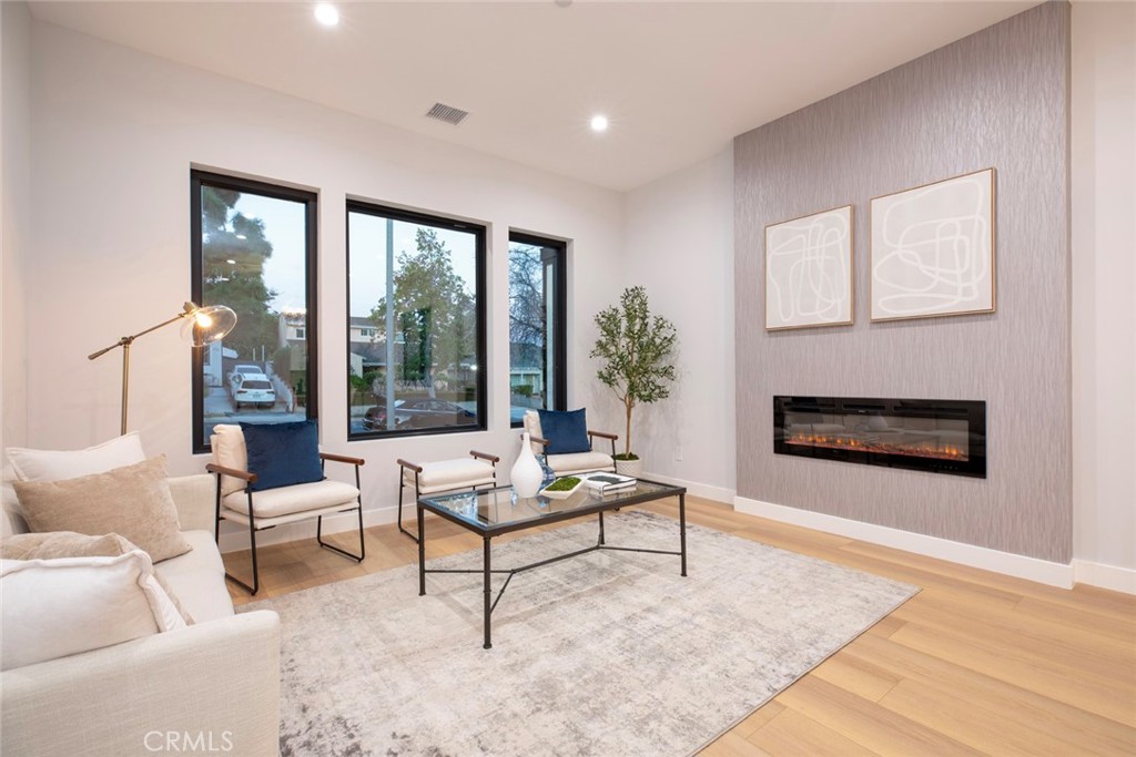 Brand New Built. Stunning two story single family home in Media District/Magnolia Park Area. Arguably one of the most beautiful homes available today in Burbank, built by a very respected local builder. Flawless floor plan executed with impeccable attention to detail. Home consists of 5 bedrooms; one downstairs and four upstairs. Upon entry occupants are treated to an open and inviting floor plan that incorporates a living room, a family room, a luxurious and fully functional kitchen loaded with high-end appliances. A center island is not only a great gathering point, it is also purposeful, houses a wine cooler, offers a sink, and number of hidden cabinets. Second floor consists of an exquisite Primary Suite that features a shower, tub, dual vanity and a make up area, two fully finished walk-in closets, and a private balcony. Also upstairs are another Suite and two very specious bedrooms, a 3/4 bath, as well as a laundry room. Modern amenities include a fully wired entertainment system, Intercom, CCTV, electric car charger plug, two Nest operated AC units, Tankless water heater, Fully Paid and installed Solar System, and much more. Sliding glass door leads to an oversized veranda complete with a custom built outdoor grill center and a spacious sitting area for any number of gatherings. Back yard is complete with a saltwater pool and a sitting area around a fire pit. This one of a kind home is located in an award winning Burbank school district and conveniently close to NBC, Disney Studios, Warner Brothers, Providence Saint Joseph Medical Center, Whole Foods Market, Toluca Lake, and so much more. This remarkable home is complete for the most fastidious buyer and ready for ultimate SoCal living.