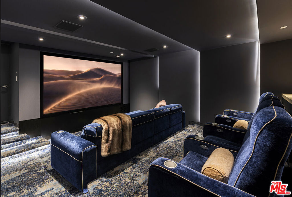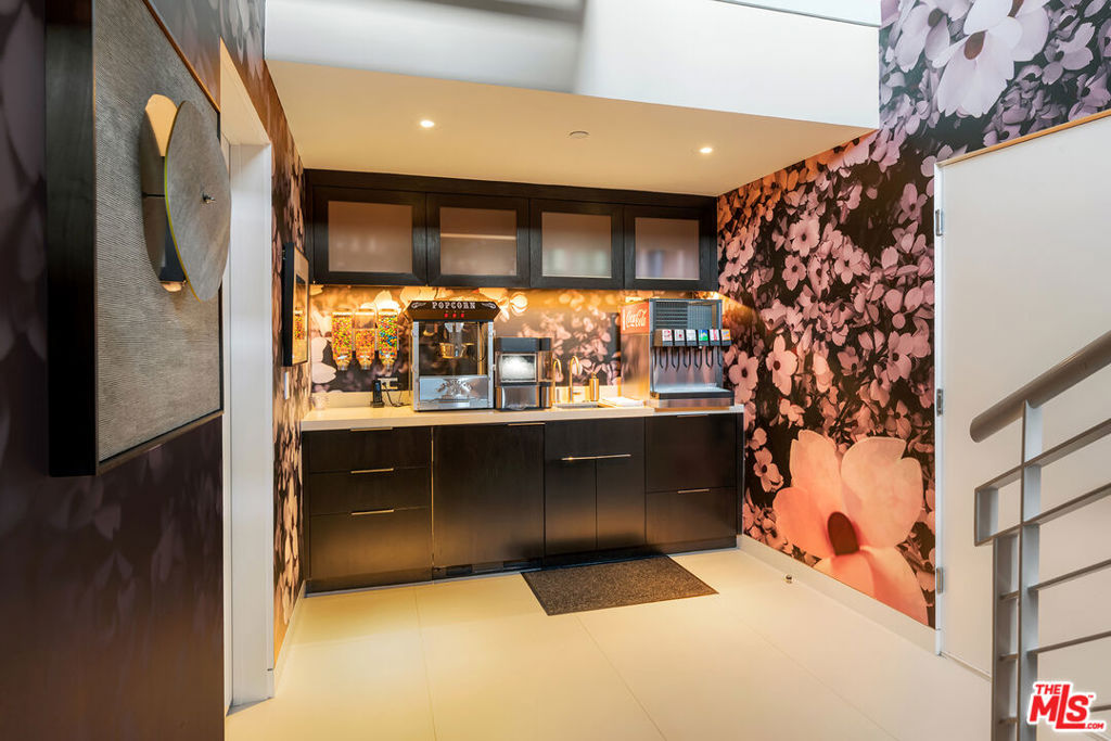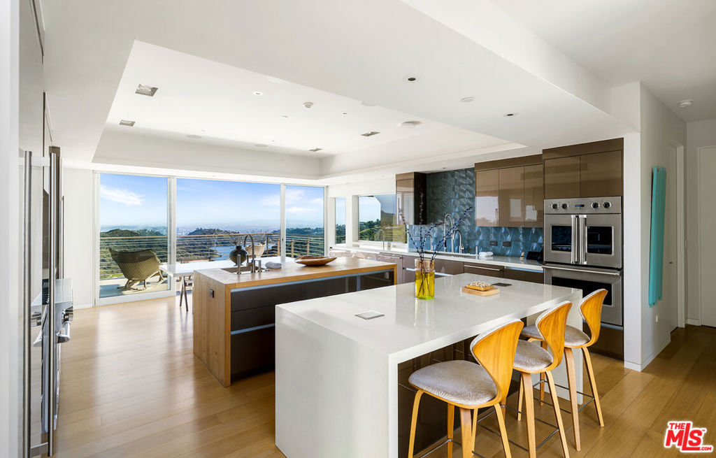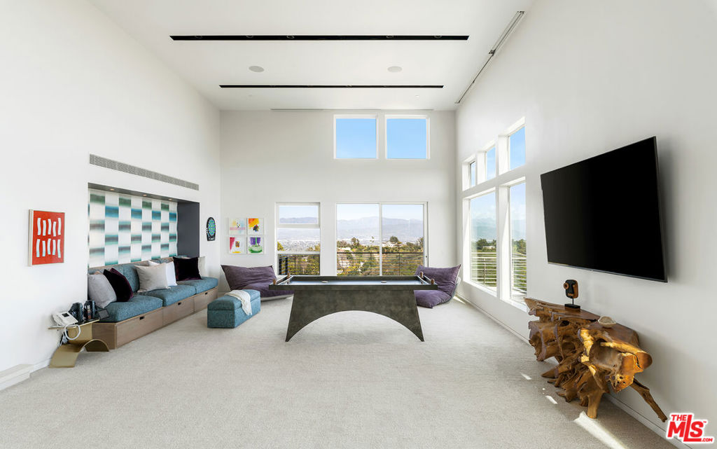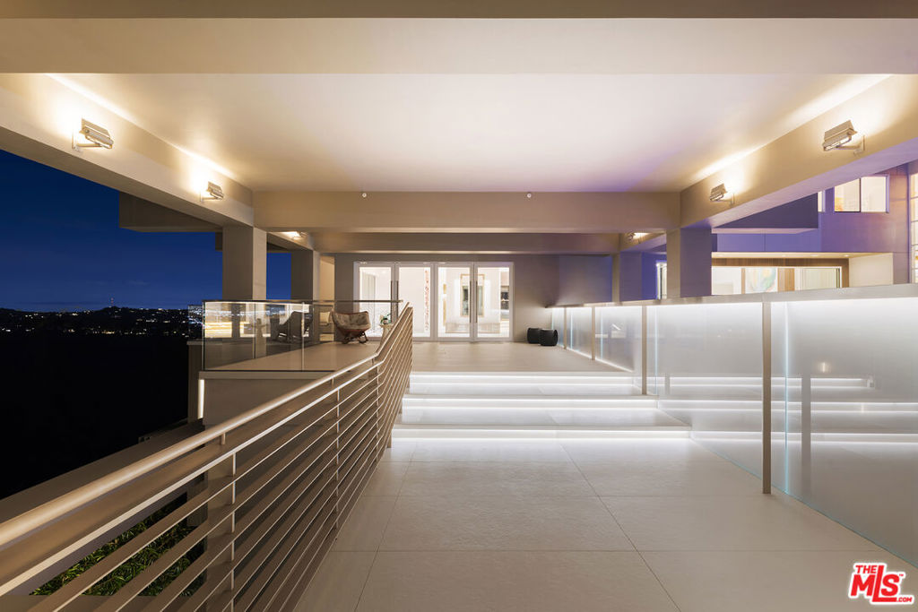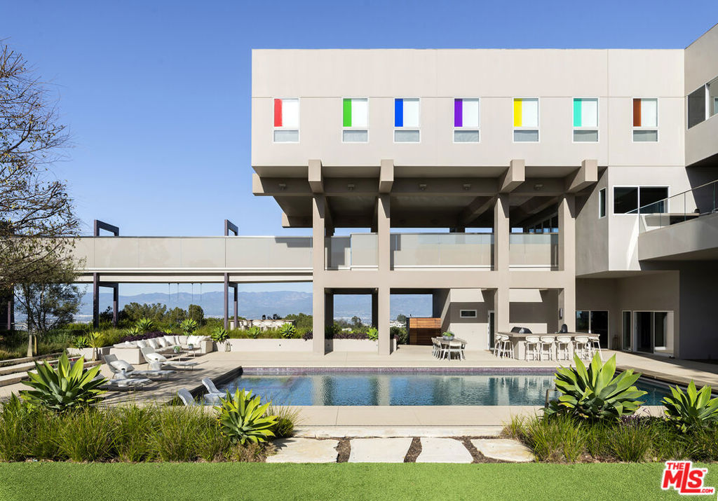 Originally designed in 1986 by renowned architect Ted Tanaka, this world-class architectural marvel underwent a five-year structural remodel and addition completed in 2021 under the direction of Clive and Julie Bridgewater, along with landscape architect Pamela Burton. Crafted for a young collector family seeking the ultimate modern view estate to showcase art in a family-oriented setting, it serves as a hub for major art installations and esteemed art-world gatherings. Tucked behind two sets of iron gates at the end of a long driveway within a cul-de-sac, this extraordinary private 3.2-acre knoll boasts uninterrupted city, ocean, and reservoir views, enveloping the estate in electrifying vistas from every room inside and outside. With a lit tennis court offering arguably the most breathtaking views in town, two elevators - one for the main home and one for the guest house, and outdoor events two kitchens, one for the main floor for intimate breakfasts and family meals, and another strategically positioned with walls of glass opening to the outdoor barbecue area, for family weekend fun and large-scale events. Additionally, a theater with wine room and soda fountain, game and billiard room. Within the sprawling flat grounds a spectacular oversized pool, full barbecue/pizza kitchen, as well as covered outdoor areas and decks throughout the property. This light-filled home embraces the love of art and family values, offering an unparalleled lifestyle experience.