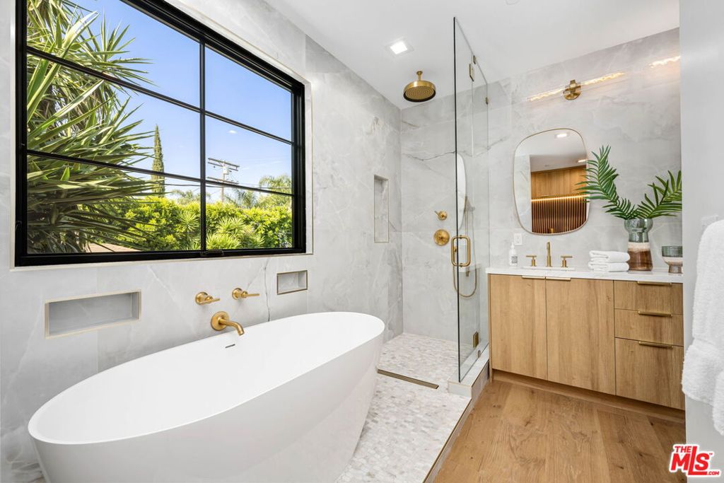 Welcome to a Stunning Brand New 5-Bedroom Home in Prime Studio City Location nestled in the heart of coveted Carpenter School District. This luxurious 5-bedroom, 4-bathroom and 2 half-bath residence offers 2,897 square feet of meticulously designed living space on a generous 5,600 square foot lot. With an ADU that includes a kitchen, bathroom and its own address. The open concept floor plan allows for entertaining on two levels: step through the two-story entryway into a grandiose formal space created by the expansive Cathedral-ceiling living and dining area, overlooking the open kitchen and family room areas spilling out into the courtyard pool. The chef's kitchen boasts top-of-the-line stainless steel appliances, custom cabinetry providing floor to ceiling storage, a large center island with seating for 4, and elegant quartz countertops. Five generously sized bedrooms, provide comfort and privacy for all family members. The master suite in its own separate wing is a true retreat, from the coffee bar upon entry, the 7' tall windows along the hallway overlooking the courtyard bringing in natural southern exposure light, to the spa-like bathroom with soaking tub, dual sink vanity, and spacious walk-in closet. A bedroom off the master offers flexibility as an office, baby room, or closet expansion. The beautifully landscaped multi-level backyard includes a sunken courtyard featuring pool, spa and waterfall, and raised grassy area, offering plenty of space for outdoor activities and entertaining. A hidden crawl space with 8' ceilings provides additional storage, playroom area, or mancave. Don't miss the opportunity to own this exquisite new home in a prime Studio City location. Experience luxury living at its finest in a community renowned for its excellent schools and vibrant lifestyle. Schedule your private tour today!