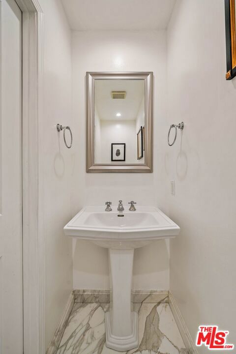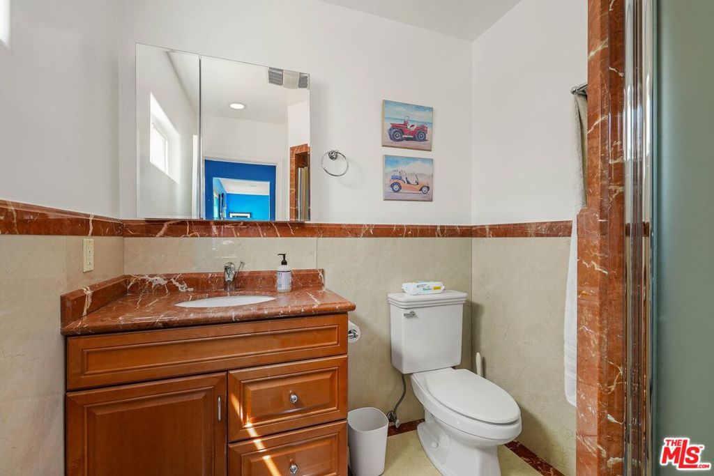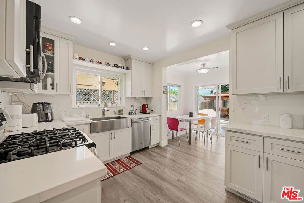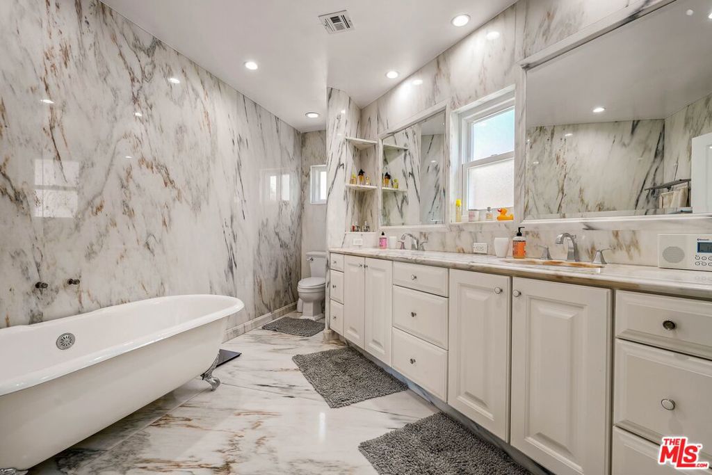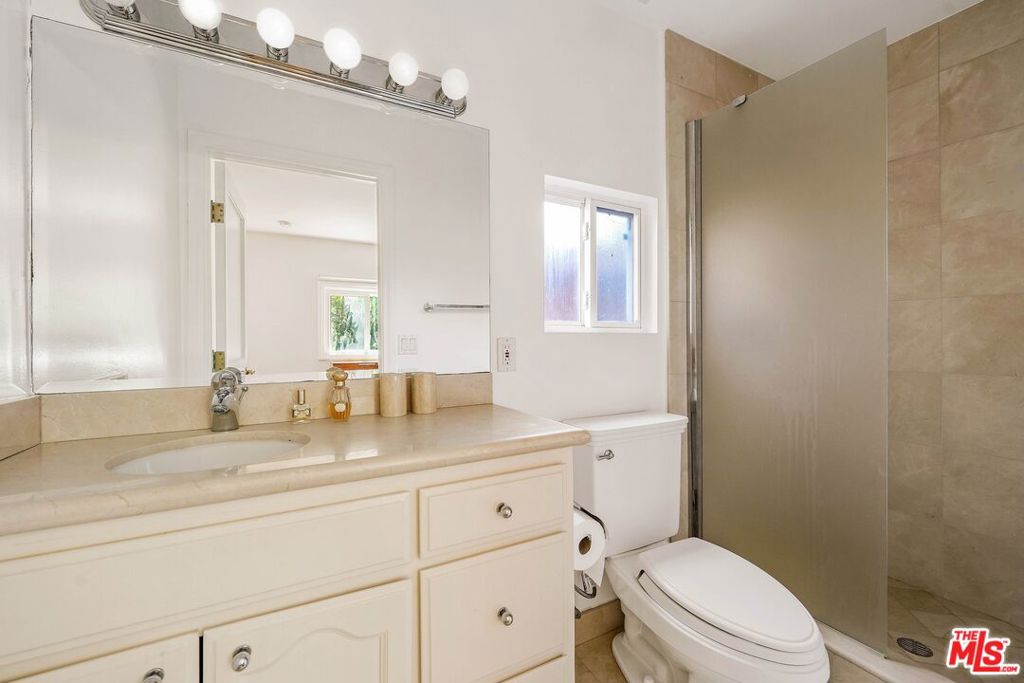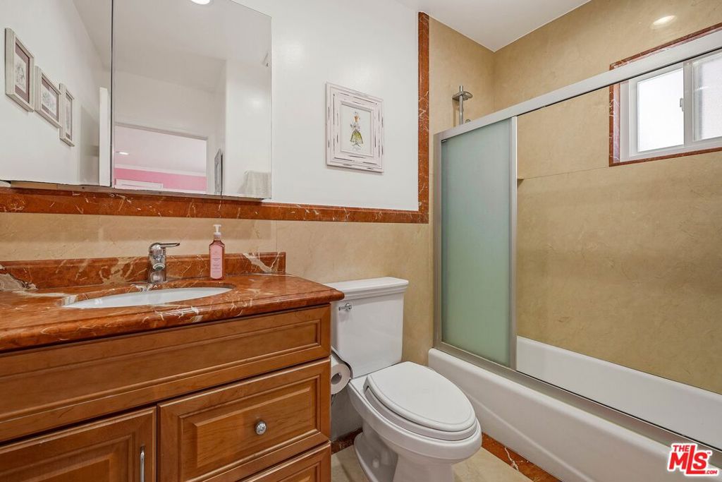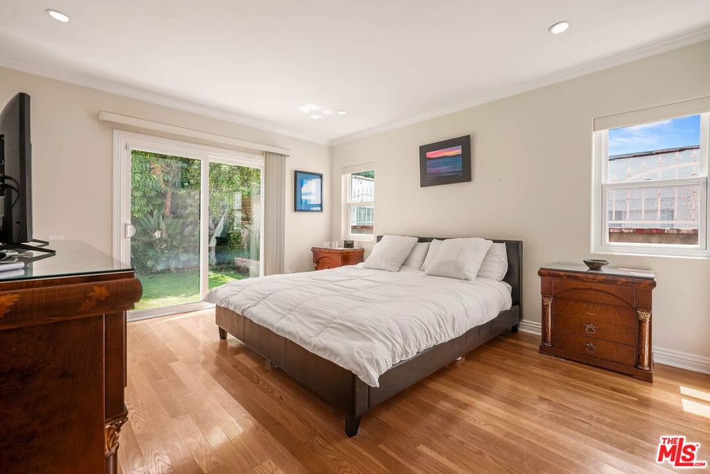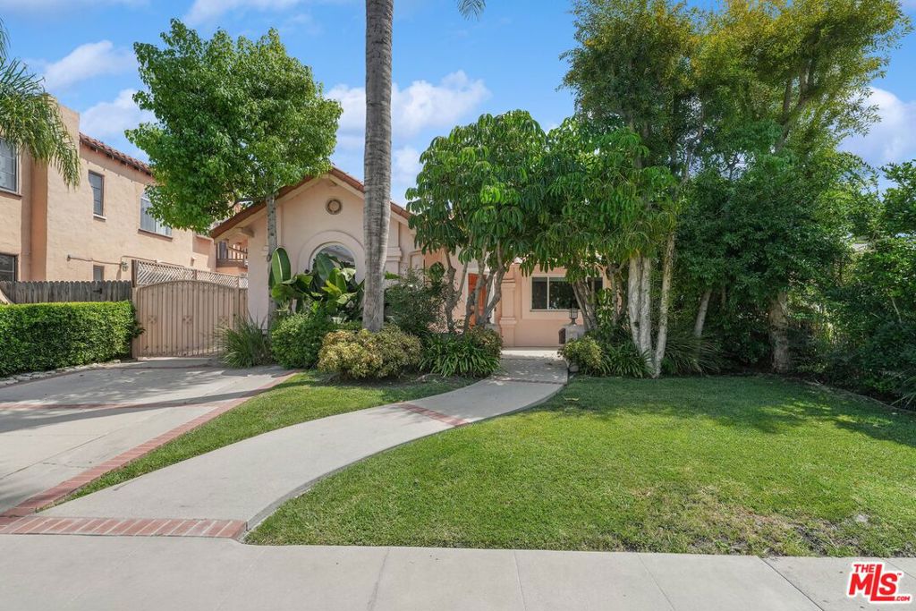 Beautiful 1920's Spanish Style home with 3 bedrooms and 3 1/2 bathrooms. As you enter you will find the high ceiling elegant living room with fireplace and hardwood floors. The dining room has a large arched window overlooking the front yard. The updated kitchen is bright with white quartz countertops and wood cabinets. It also has a breakfast area that leads out the the backyard. While offering a seamless design this charming home also has all the amenities. Next to the kitchen is a separate laundry room. The spacious master suite has his and hers closets and glass doors that lead to the private backyard. The other two bedrooms each have an ensuite bathroom. The house also offers a large guest house with a bonus bedroom and a full bathroom. All glass doors and windows are triple paned and installed in 2020. The Spanish tile roof is two years old. Close to fine dining, Beverly Center, the Grove, Melrose Ave. and Third Street.