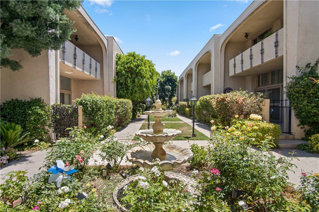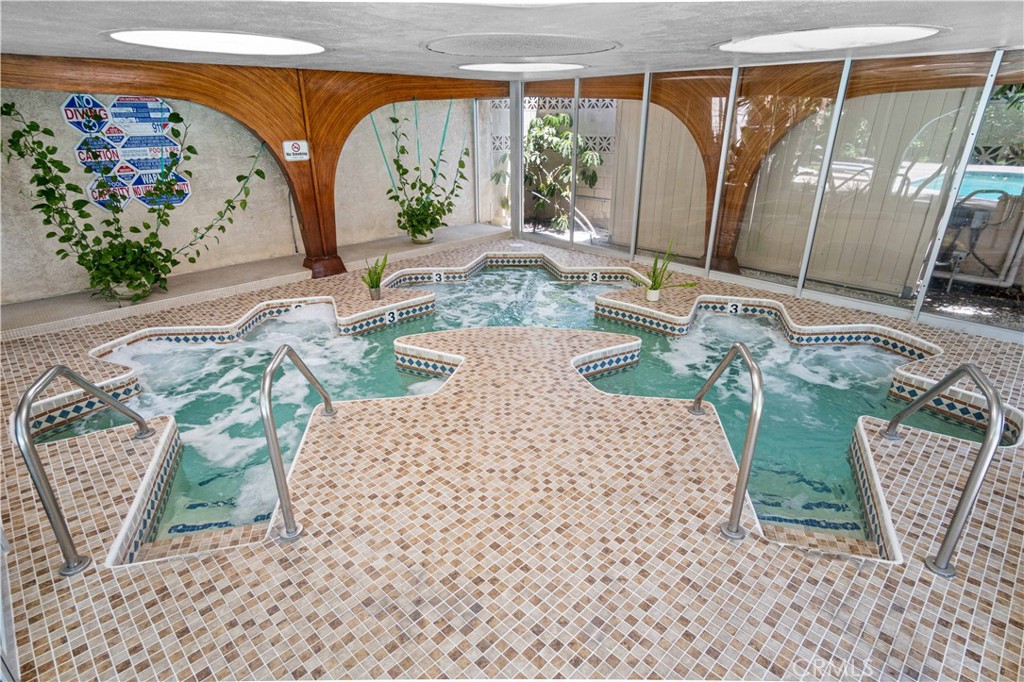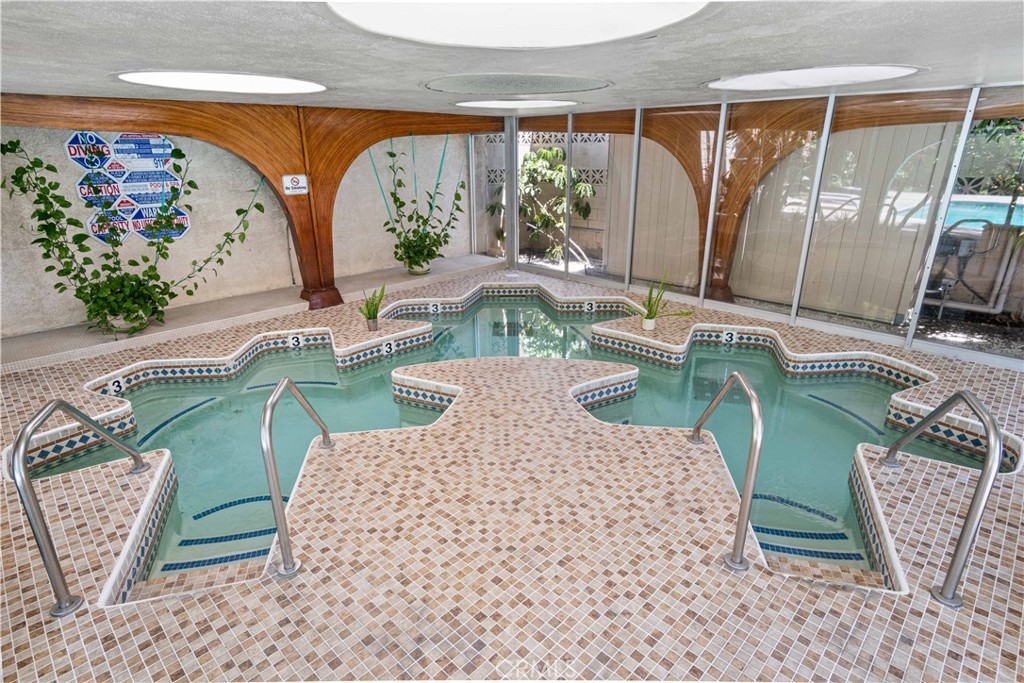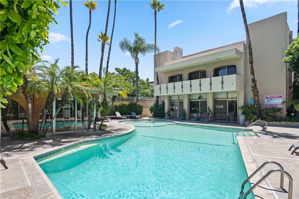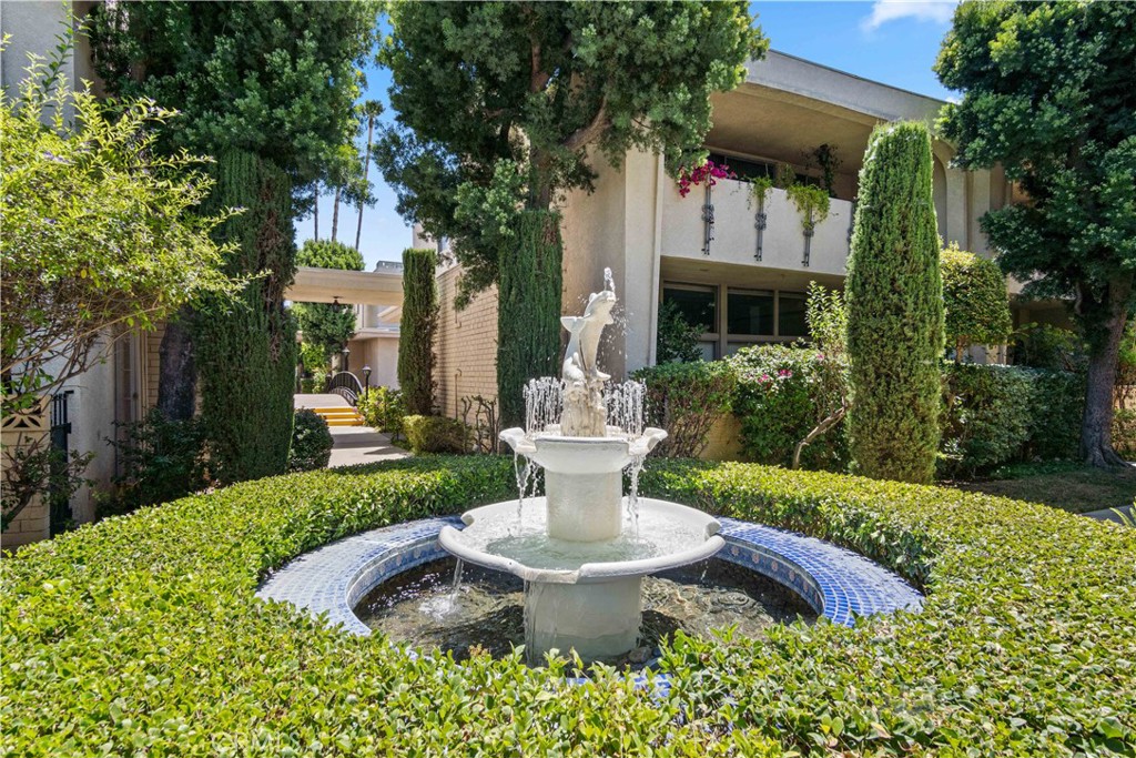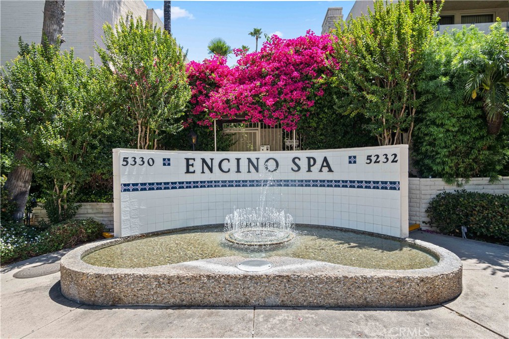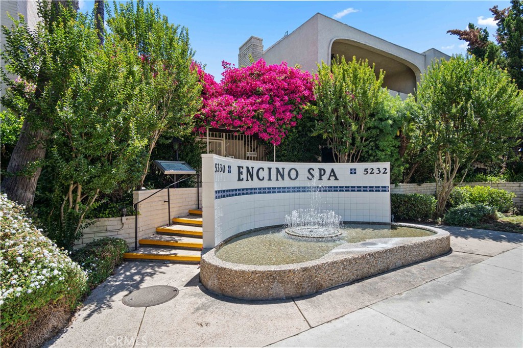 Stunning & luxurious townhouse at Encino Spa. Pass through the tall double door entry, cross real hardwood floors and absorb elegance. Nearly 2,000 sqft with 3 beds, 2.5 baths plus an attached garage; all within walking distance to Ventura Boulevard. The elevated dining room overlooks a spacious living room with high ceilings, crown molding, glass chandeliers and a granite fireplace with carved marble hearth. Adjacent powder room sparkles with its Aqua-Brass faucet and custom vanity created from an antique cabinet. The delightful chef’s kitchen boasts ample maple cabinets with display lighting, seafoam granite countertops, Miele Dishwasher and a stainless-steel, six burner Viking gas range-oven & hood. Indoor and outdoor entertaining flows seamlessly with living room sliding glass doors that open to a private and shaded patio. With amenities most buyers can only dream about…It’s called Encino Spa with good reason! This is no ordinary spa, indoors, uniquely shaped and multi-jetted, it’s the ultimate in relaxation. This resort community amenities also include a sparkling heated swimming pool, his and her saunas, rec room, and a gym. HOA dues include Earthquake insurance, too! Upstairs are two gorgeous bathrooms, and three spacious & plush carpeted bedrooms; one an enormous primary suite with a big private balcony. The primary suite features a marble shower with seamless glass doors, dual sinks with Hans Grohe faucets (in both upstairs baths) and cashmere white marble flooring that complements the tasteful marble counter tops. This townhouse is in a quiet inner location within the complex away from traffic noise. Direct entry to your private two-car garage off gated driveway entrance provides added convenience and security. Convenient to the 101/ 405 freeways, supermarkets, and multiple dining options along Ventura Blvd. These sellers spared no expense designing this home for their enjoyment, now it’s your turn!