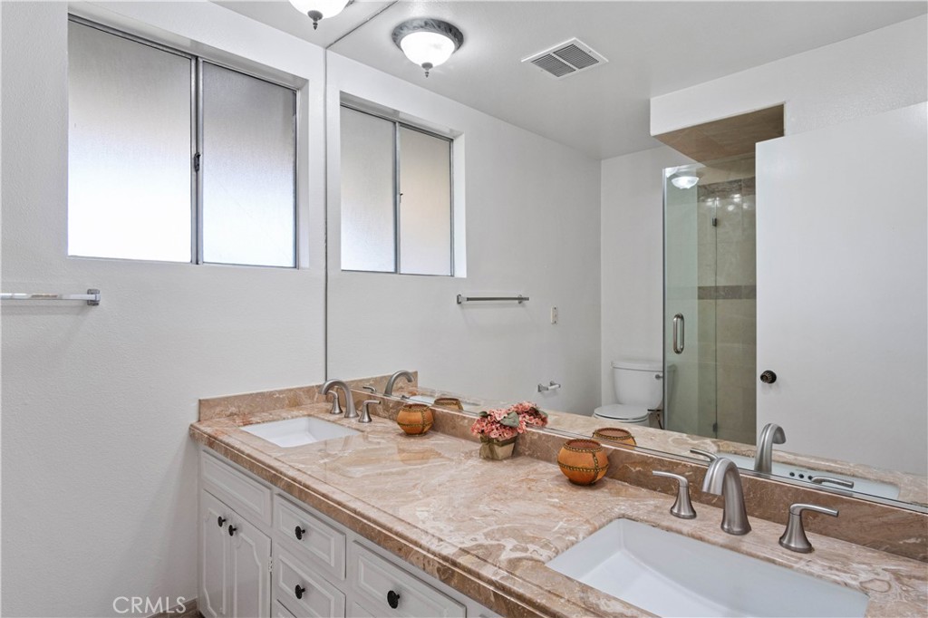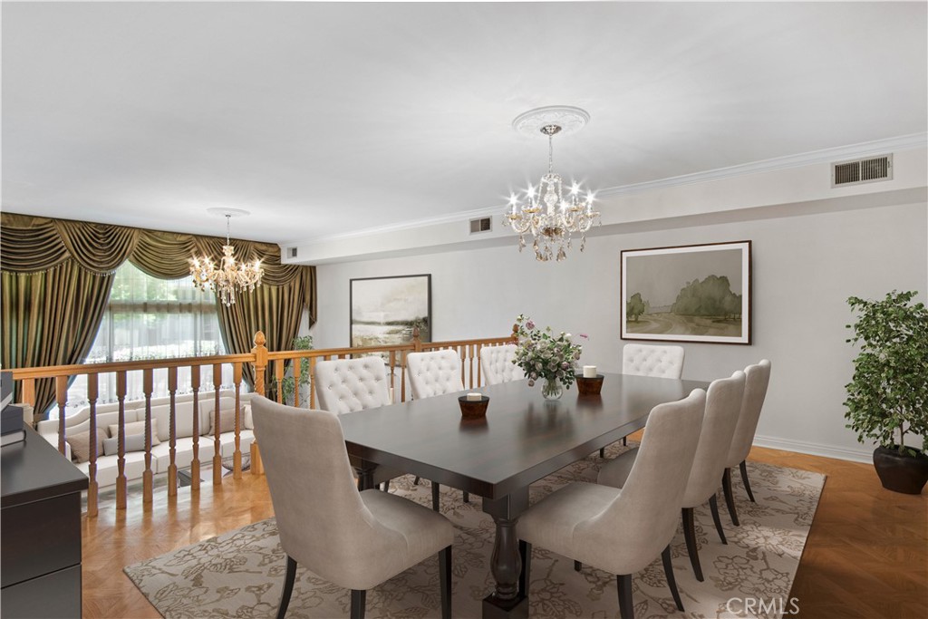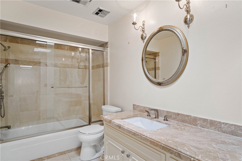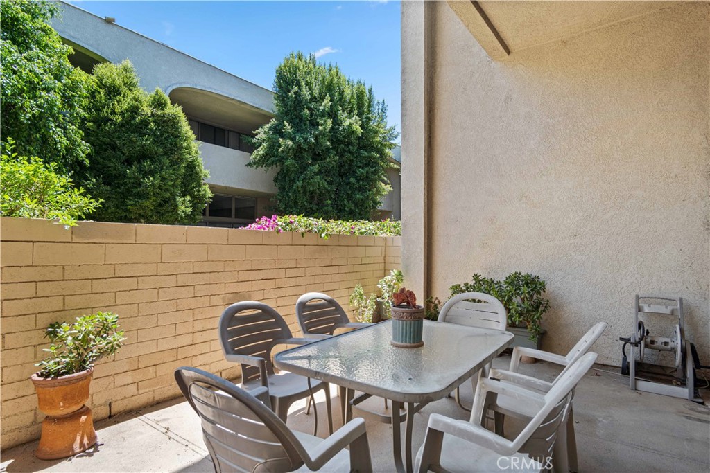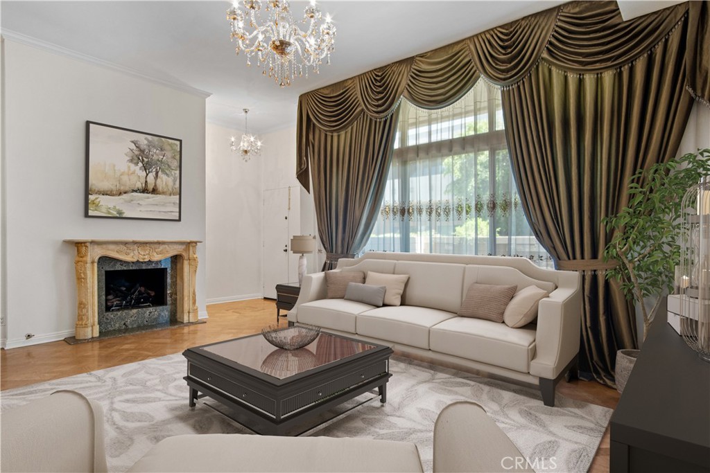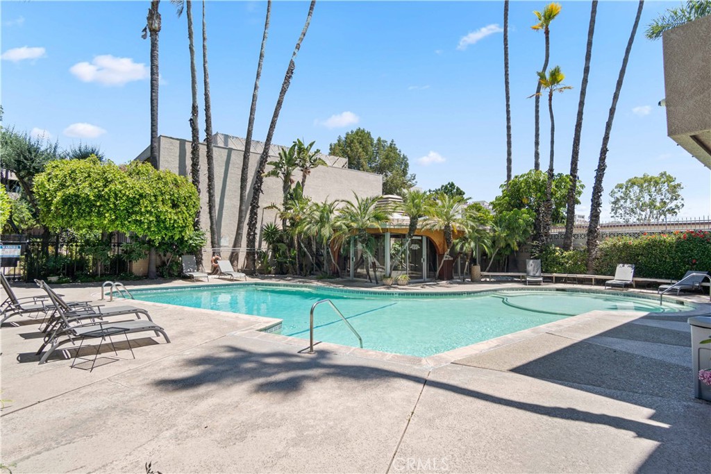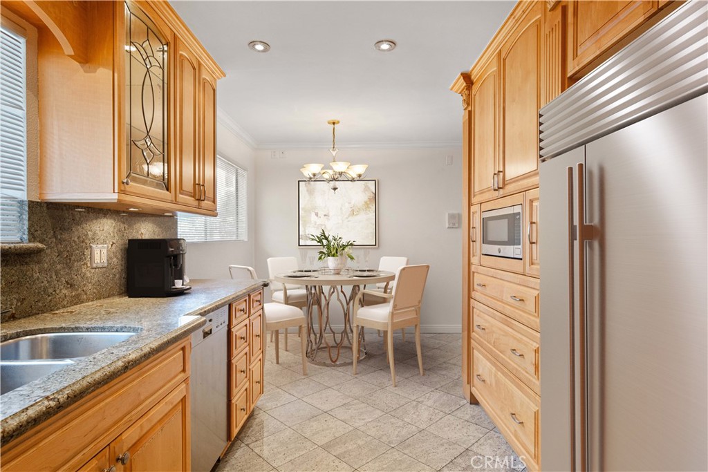 Stunning & luxurious townhouse at Encino Spa. Pass through the tall double door entry, cross real hardwood floors and absorb elegance. Nearly 2,000 sqft with 3 beds, 2.5 baths plus an attached garage; all within walking distance to Ventura Boulevard. The elevated dining room overlooks a spacious living room with high ceilings, crown molding, glass chandeliers and a granite fireplace with carved marble hearth. Adjacent powder room sparkles with its Aqua-Brass faucet and custom vanity created from an antique cabinet. The delightful chef’s kitchen boasts ample maple cabinets with display lighting, seafoam granite countertops, Miele Dishwasher and a stainless-steel, six burner Viking gas range-oven & hood. Indoor and outdoor entertaining flows seamlessly with living room sliding glass doors that open to a private and shaded patio. With amenities most buyers can only dream about…It’s called Encino Spa with good reason! This is no ordinary spa, indoors, uniquely shaped and multi-jetted, it’s the ultimate in relaxation. This resort community amenities also include a sparkling heated swimming pool, his and her saunas, rec room, and a gym. HOA dues include Earthquake insurance, too! Upstairs are two gorgeous bathrooms, and three spacious & plush carpeted bedrooms; one an enormous primary suite with a big private balcony. The primary suite features a marble shower with seamless glass doors, dual sinks with Hans Grohe faucets (in both upstairs baths) and cashmere white marble flooring that complements the tasteful marble counter tops. This townhouse is in a quiet inner location within the complex away from traffic noise. Direct entry to your private two-car garage off gated driveway entrance provides added convenience and security. Convenient to the 101/ 405 freeways, supermarkets, and multiple dining options along Ventura Blvd. These sellers spared no expense designing this home for their enjoyment, now it’s your turn!