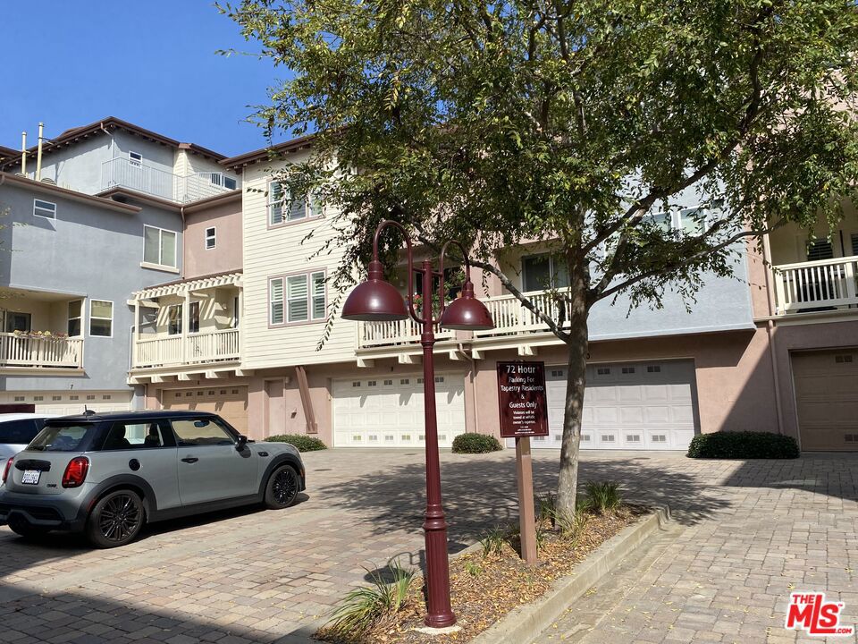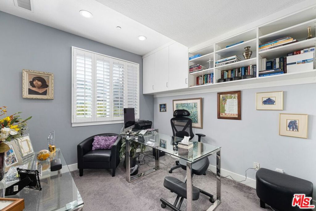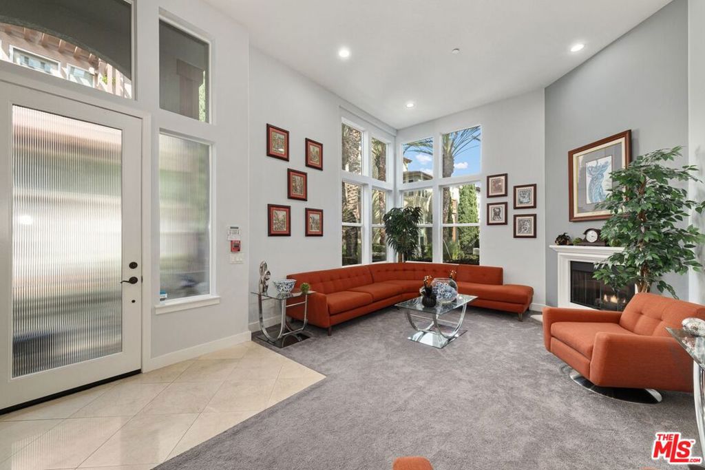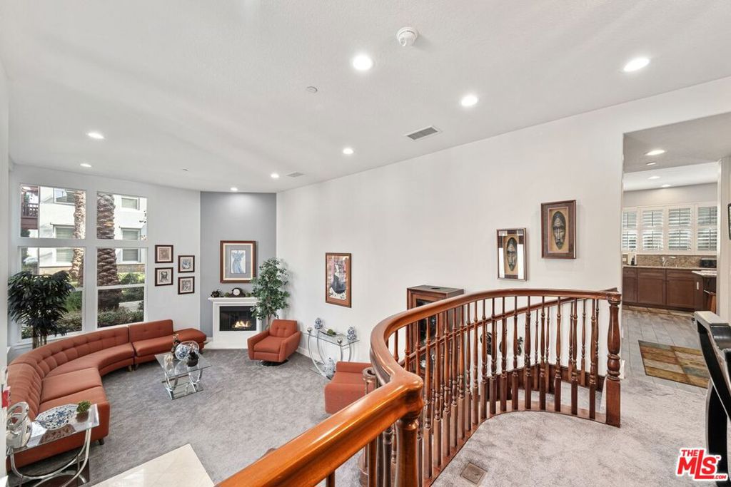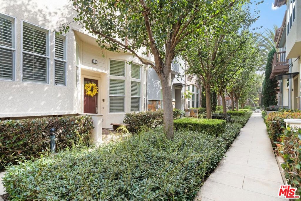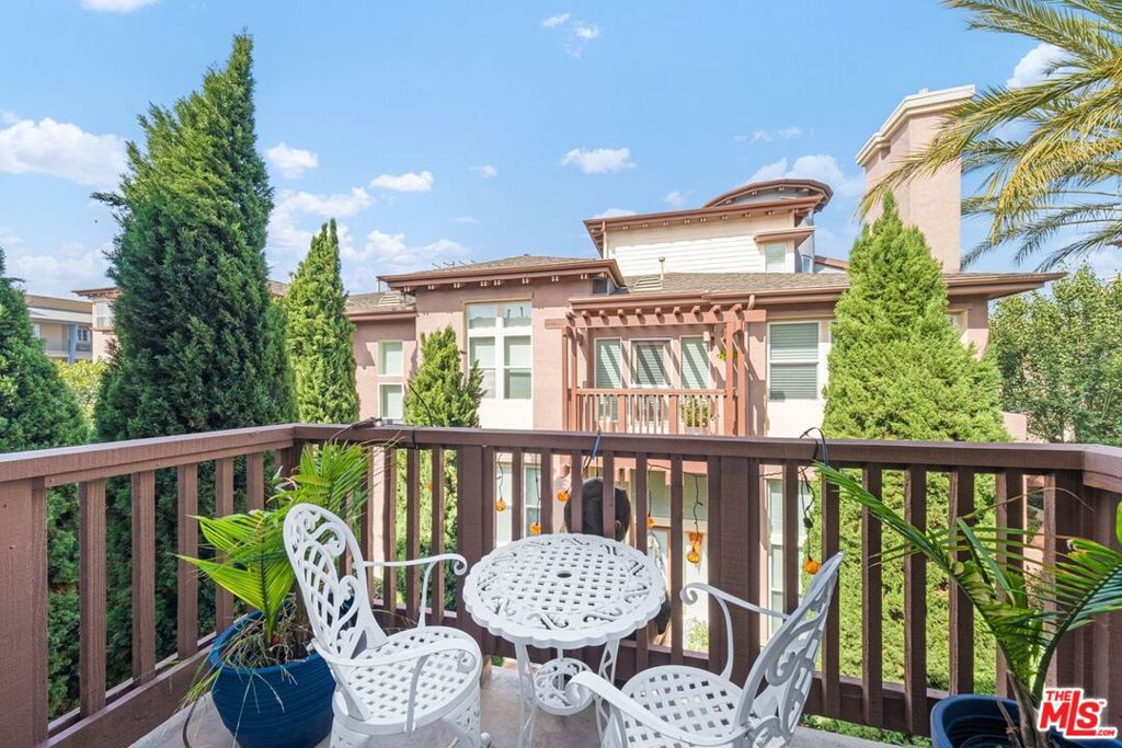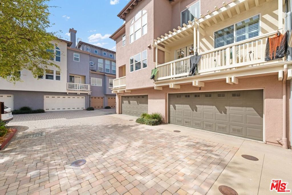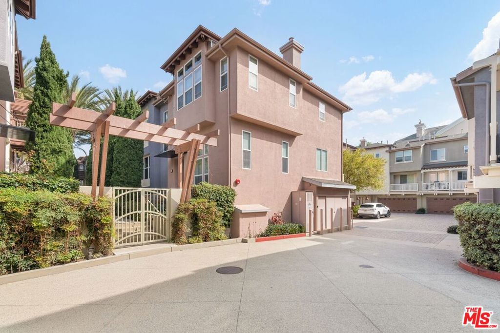 This serene Tapestry I two bedroom + den townhome features a desirable off-street courtyard entry. Walk past the lush gardens and fountains and inside you are greeted with soaring ceilings and oversized windows providing abundant natural light. The spacious living area showcases a fireplace, recessed lighting and an elevated formal dining space. Adjacent to the dining area is a large pantry and dry bar that lead to the gourmet kitchen with stone counters, center island, stainless steel appliances and plenty of cabinet space. The kitchen also features a breakfast area and balcony overlooking the courtyard. Both bedrooms on the third level feature en-suite bathrooms. A third bathroom is adjacent to the living/ dining area. The luxurious primary suite offers high ceilings, a fireplace, balcony, generous walk-in closet and spa-like bathroom with soaking tub and huge shower. Den on the lower level of the townhome is perfect for a family room or office. The adjacent laundry room leads to a private, direct-entry 2-car garage with lots of storage space. A bonus large, finished storage area is accessible from the den. Additional features of this home include plantation shutters, wood-grain tiling and plush carpeting. Steps from your private, secure oasis you can access parks, shops, restaurants and all that Playa Vista has to offer.