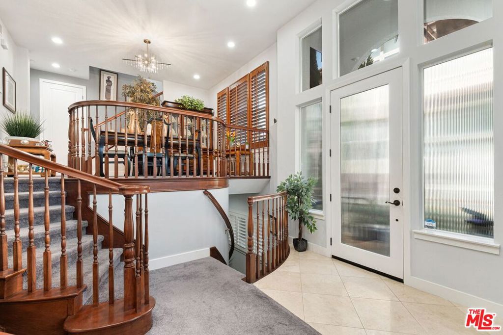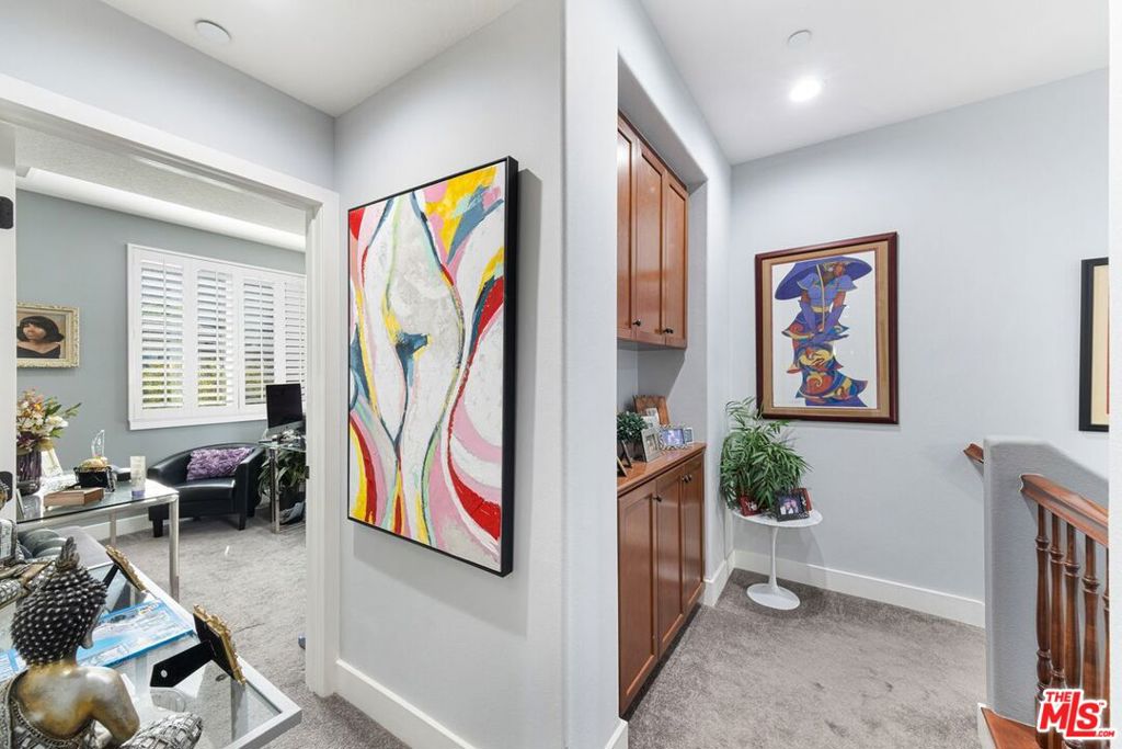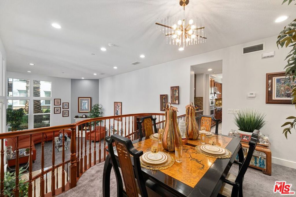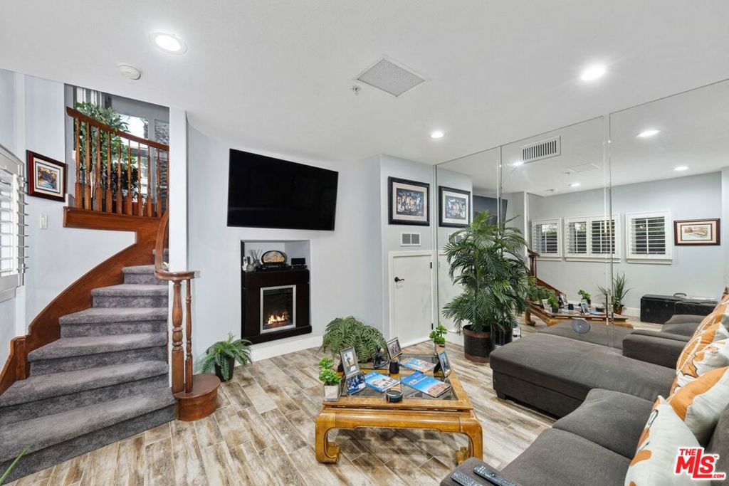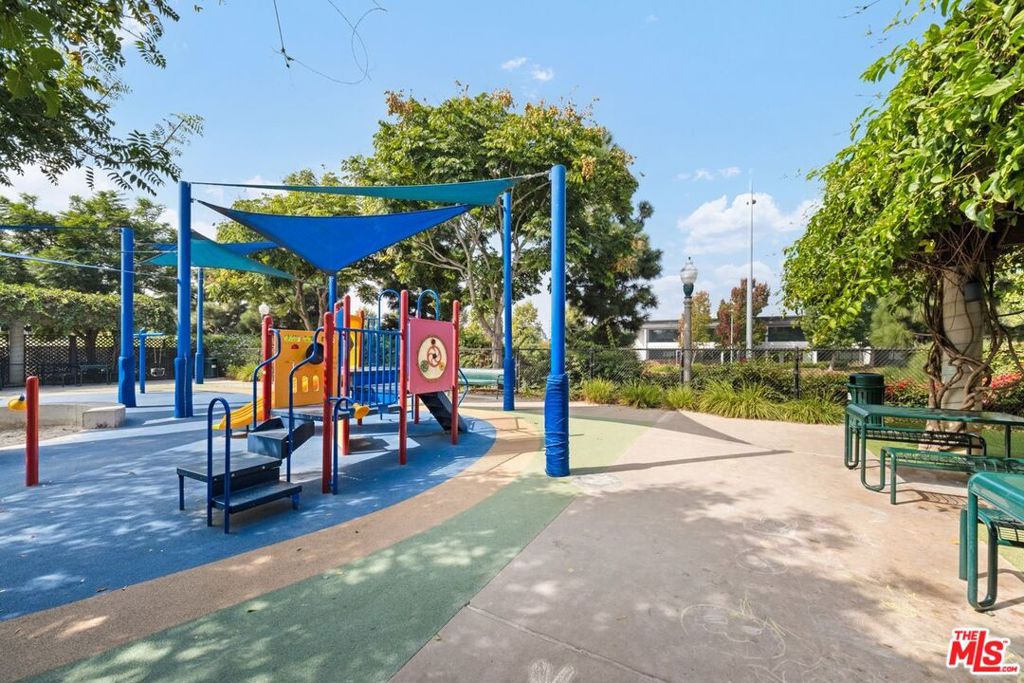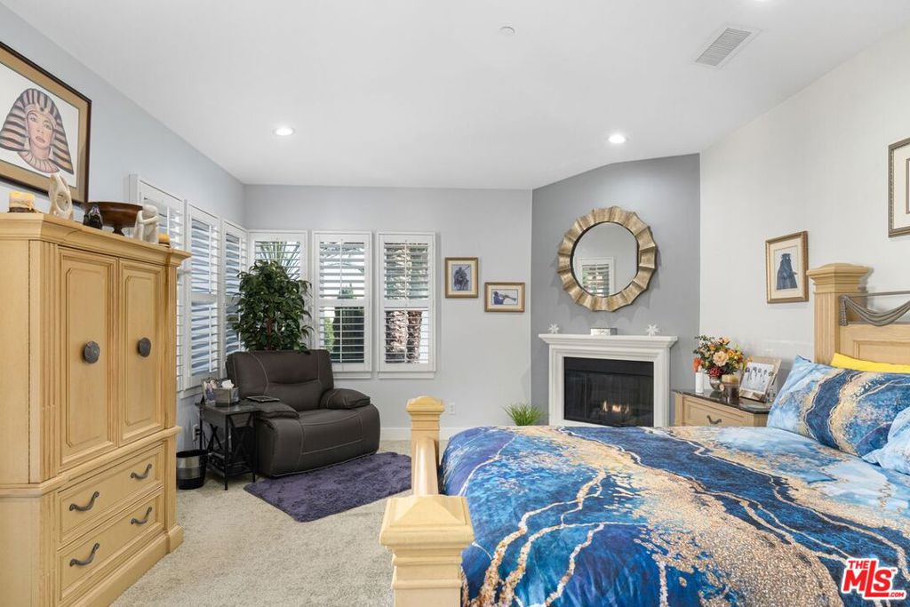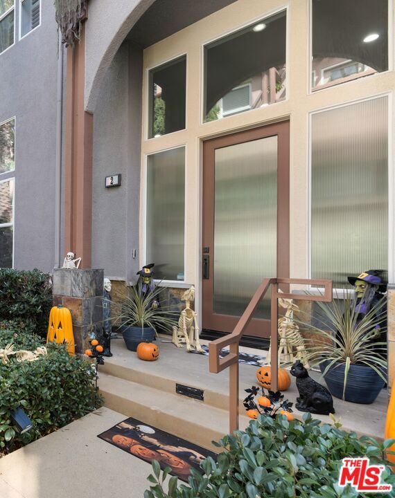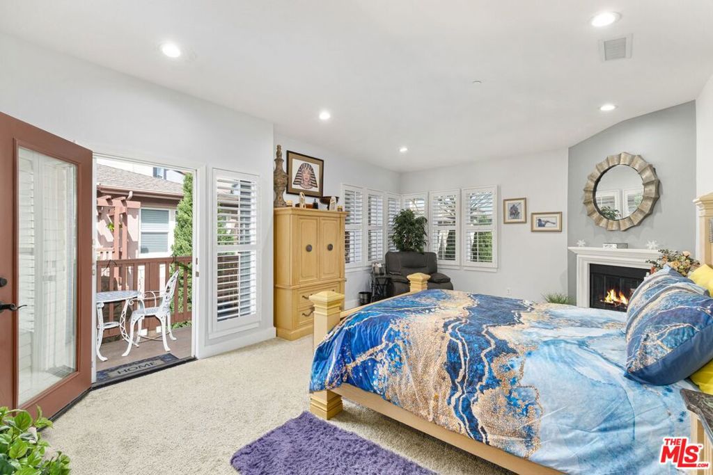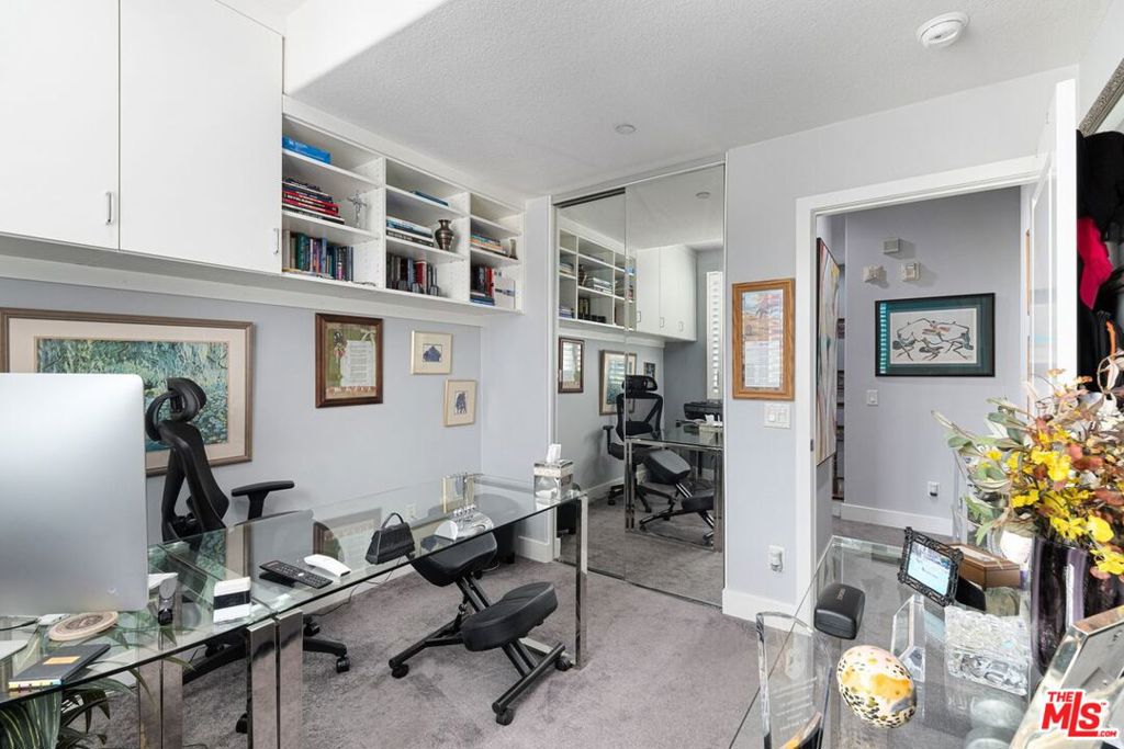 This serene Tapestry I two bedroom + den townhome features a desirable off-street courtyard entry. Walk past the lush gardens and fountains and inside you are greeted with soaring ceilings and oversized windows providing abundant natural light. The spacious living area showcases a fireplace, recessed lighting and an elevated formal dining space. Adjacent to the dining area is a large pantry and dry bar that lead to the gourmet kitchen with stone counters, center island, stainless steel appliances and plenty of cabinet space. The kitchen also features a breakfast area and balcony overlooking the courtyard. Both bedrooms on the third level feature en-suite bathrooms. A third bathroom is adjacent to the living/ dining area. The luxurious primary suite offers high ceilings, a fireplace, balcony, generous walk-in closet and spa-like bathroom with soaking tub and huge shower. Den on the lower level of the townhome is perfect for a family room or office. The adjacent laundry room leads to a private, direct-entry 2-car garage with lots of storage space. A bonus large, finished storage area is accessible from the den. Additional features of this home include plantation shutters, wood-grain tiling and plush carpeting. Steps from your private, secure oasis you can access parks, shops, restaurants and all that Playa Vista has to offer.