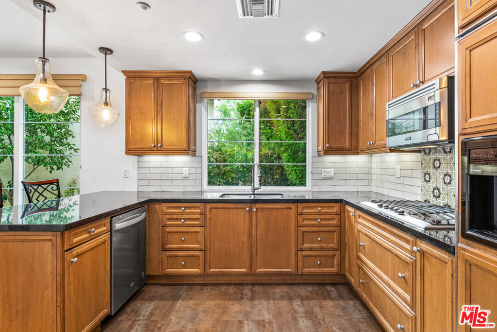 Welcome to 5677 Como Circle, a stunning corner home nestled in a gated community in the heart of Woodland Hills. This 4-bedroom, 3-bathroom residence boasts high ceilings, stainless steel appliances, and a private patio. With 2738 sq ft of living space, this home offers a spacious layout complemented by a master bedroom, walk-in closet, new hvac, 2 car garage, and a large entertainment style kitchen. This home also includes energy efficiency of solar panels! Perfectly located near shopping centers, Warner Park, and the Village, with Topanga Westfield Mall just a stone's throw away.