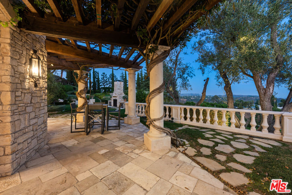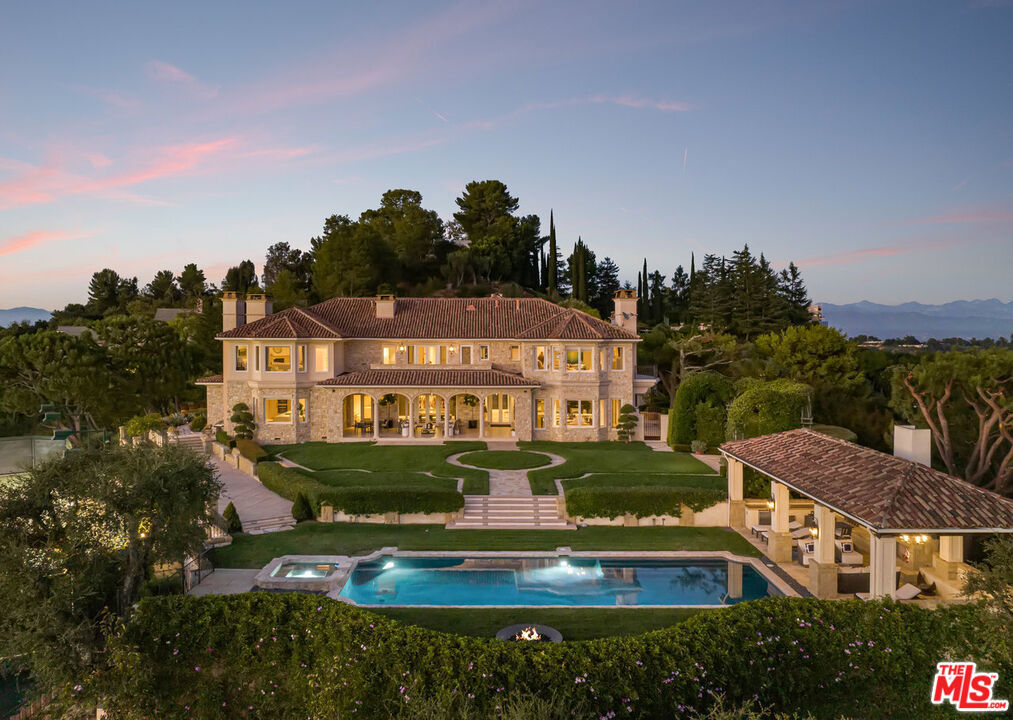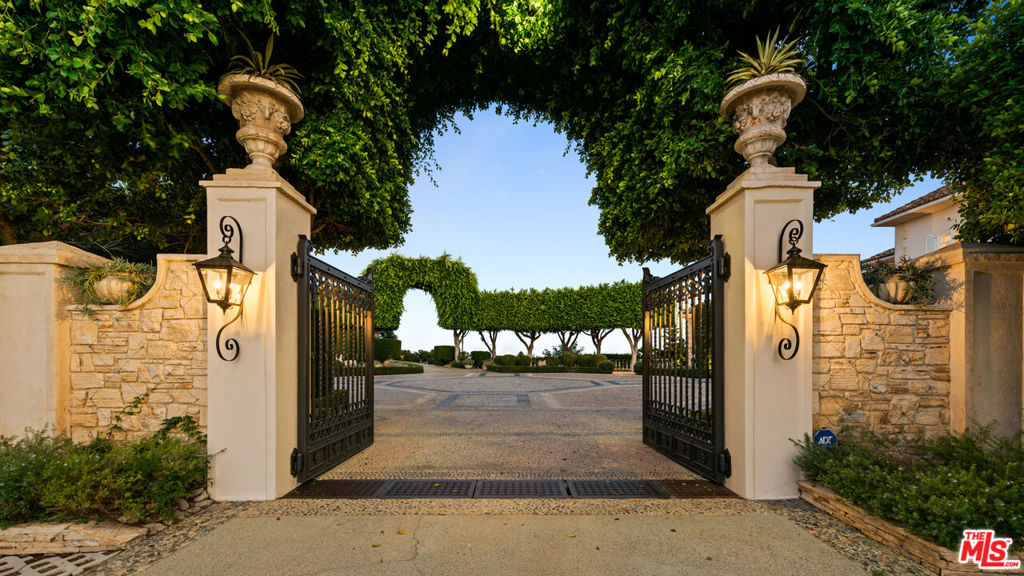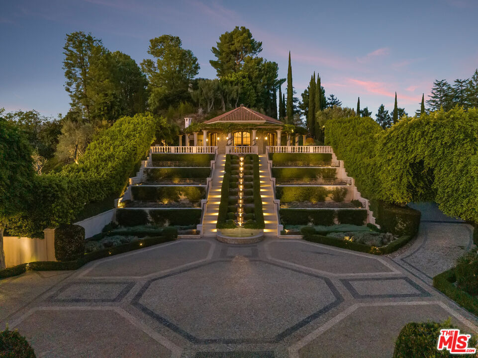 The Antelo View Estate stands as one of Los Angeles' most distinguished and irreplaceable residences, tucked away at the end of a secluded private road in Bel-Air. With nearly unmatched scale, privacy, and design pedigree, this exceptional compound encompasses two APNs and is secured behind double gates, unveiling a world entirely its own. A sweeping motor court welcomes guests with commanding views stretching from the glittering city skyline to the serene mountains and the Pacific Ocean beyond. Graceful fountains accent the arrival, their gentle flow enhancing the sense of tranquility and grandeur that defines the estate. Completely reimagined through an extensive, design-driven remodel, the estate masterfully fuses timeless sophistication with modern innovation. The 6-bedroom, 9-bath main residence is defined by grand-scale interiors, filled with abundant natural light and breathtaking views from nearly every room. Stately fireplaces throughout the home offer warmth, dramatic presence, and intimate gathering spaces, anchoring living areas with a sense of refined elegance. The lower level is a retreat for both leisure and entertainment, featuring a state-of-the-art theater with bar, a private gym with steam shower, wine storage, and flexible staff or wellness quarters. At the heart of the home lies a spectacular new chef's kitchen, curated with bespoke white oak cabinetry, hand-selected marble countertops, dual oversized sinks, and an array of Miele and Gaggenau appliances. An exquisite brass wine display, inviting fireplace, walk-in pantry, and breakfast nook with unobstructed views further elevate the space, transforming everyday living into an art form. The second floor reveals four gracious bedrooms, crowned by a primary suite of rare distinction. The suite features dual spa-inspired baths, expansive walk-in dressing rooms, a fireplace for quiet evenings, a private office, and a vast terrace that embraces the horizon. Beyond the main residence, two guest homes extend the estate's legacy of luxury. The upper two-story guest house presents nearly 3,000 square feet, complete with two bedrooms, three baths, a full kitchen, and a great room anchored by a dramatic fireplace. French doors open to garden terraces accompanied by gentle fountains and rolling lawns, crafting an atmosphere of serenity. The lower guest home, nestled under the tennis court, offers two bedrooms, two baths, a full kitchen, laundry, and wrap-around terraces immersed in tranquil treetop views perfect for long-stay guests or staff. Outdoors, the grounds unfold in true resort style: a dramatic swimming pool with cabana, a tennis court with viewing pavilions, manicured gardens, and a romantic loggia designed for alfresco dining or intimate wine tastings. Fountain features dot the landscape, blending the soothing sound of flowing water with the natural beauty of the gardens. Interwoven pathways and a private golf cart circuit encircle the entire estate, underscoring its rare sense of scale and seclusion. The Antelo View Estate is more than a home it is a private sanctuary of architectural beauty and natural majesty. With its many fireplaces, enchanting fountains, unrivaled vistas, world-class amenities, and a level of craftsmanship seldom seen, this legacy compound represents one of the most important and prestigious offerings to ever arrive on the market in Bel-Air.