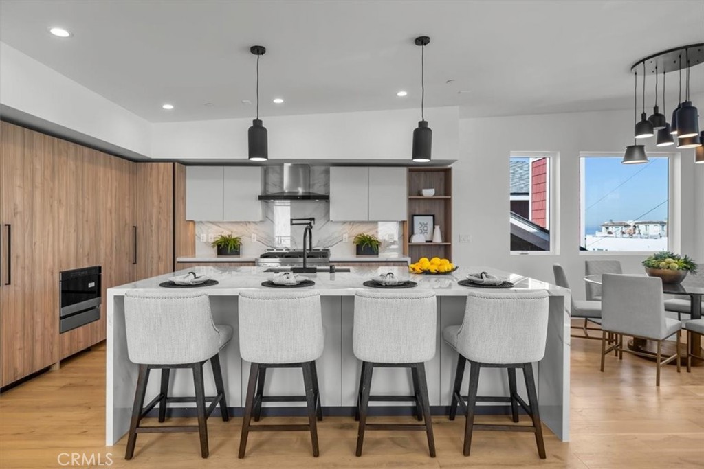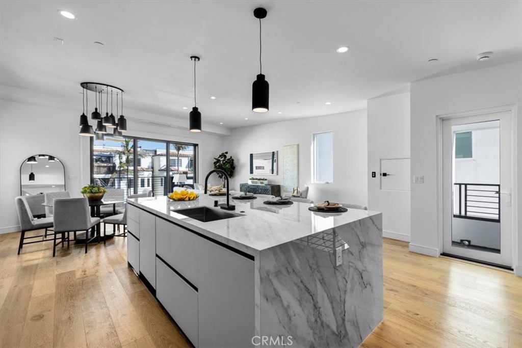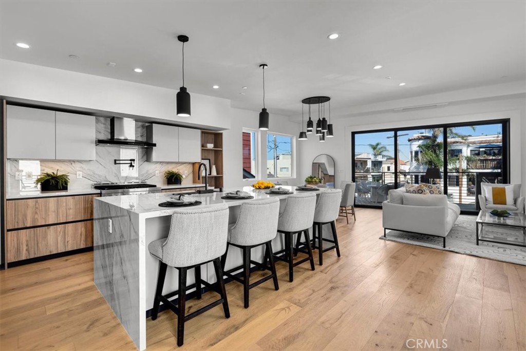 It’s like staying in a fine hotel only better because it’s your new home. Designed by rising star Alex Ioda, this newly-built townhome has an elegant but casual feel and the attention-to-detail that Ioda Construction is known for. Enter the home and immediately notice the high ceilings and abundance of light. Wide-plank, light oak floors extend throughout. From the living and dining areas, step outside through the retractable sliding doors to an adjacent deck. This ocean-view space provides an additional gathering spot and outdoor dining area. The gorgeous kitchen, with an immense center island, anchors the space. Porcelain slab countertops and book-matched backsplash accent the Italian cabinetry beautifully. The Jenn-Aire appliances are every cook's dream. A generous walk-in pantry provides ample storage space. This will be the gathering spot during parties and holiday celebrations or just everyday living. Enjoy panoramic views of city, mountains and ocean views from the roof deck that provides the perfect spot for sunbathing or watching the sunset with wine glass in hand. The primary suite has its own deck, a luxurious bath and fully outfitted walk-in closet. Three more bedrooms provide lots of options for over-night guests or home office. A multitude of special features include solar panels, dumb waiter, prewire for all electronic options and solid interior doors with Nordic Oak finish. There is also ductless heating and air conditioning to control the temperature of each room individually. Located just a short walk to the Strand, imagine enjoying the beach lifestyle you've longed for. Biking, running, dining, coffee houses, you deserve it all. This one is special, arrange a private showing today and be home for the holidays.