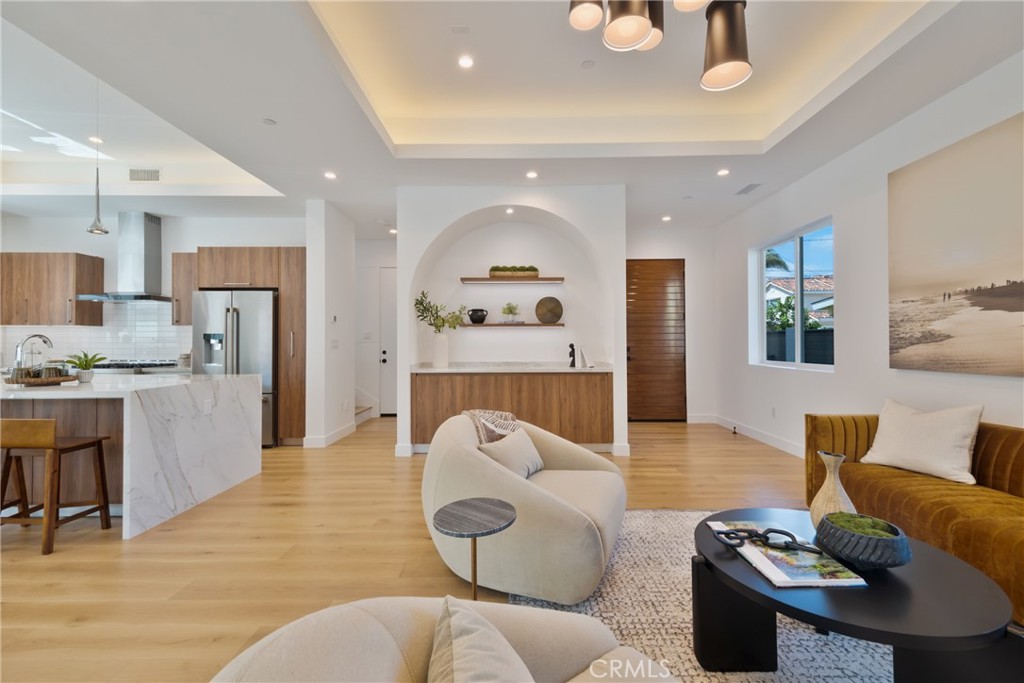 Step into modern luxury with this beautifully crafted 4-bed, 3.5-bath detached townhome, where thoughtful design and high-end finishes come together to create the perfect living space. Wide-plank oak engineered hardwood flooring complements the sleek, custom-built cabinetry and durable porcelain countertops in the kitchen. High-end appliances, including a JennAir range, refrigerator, microwave drawer, and Bosch dishwasher, ensure