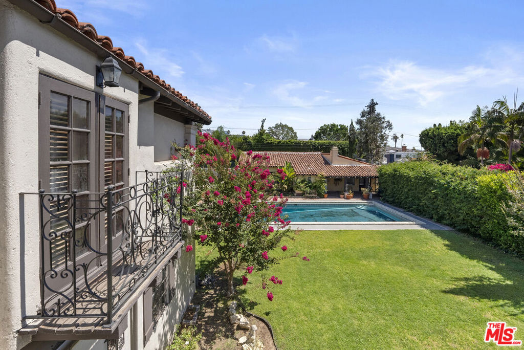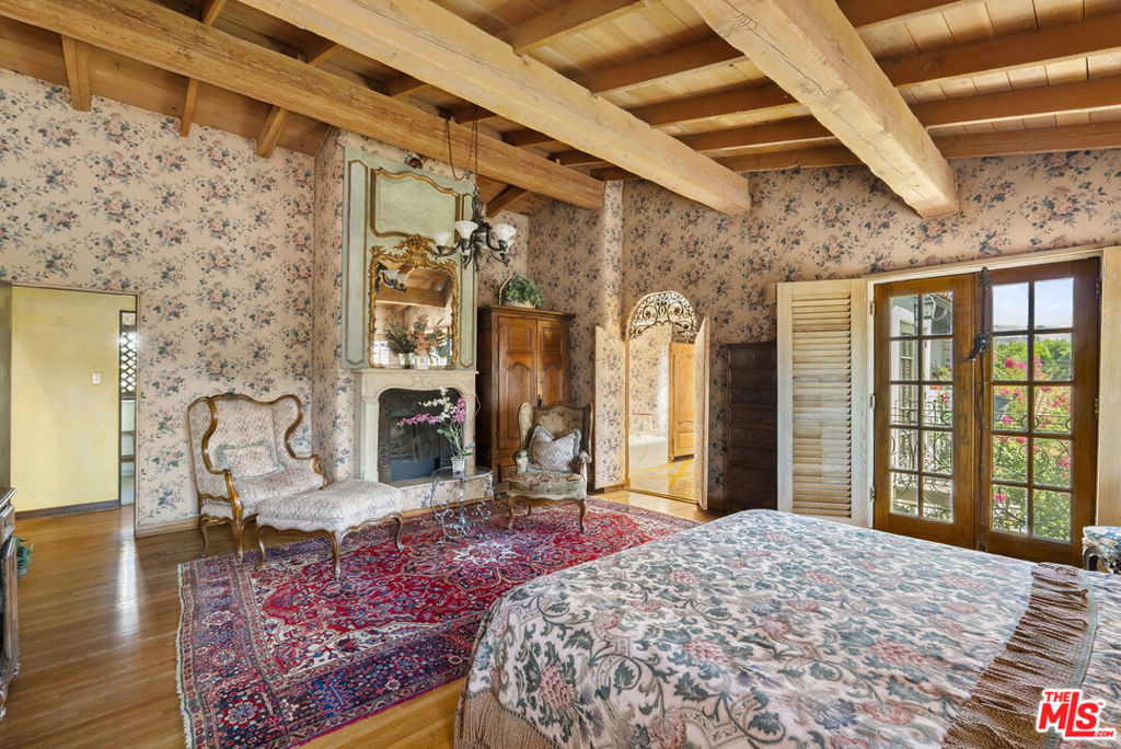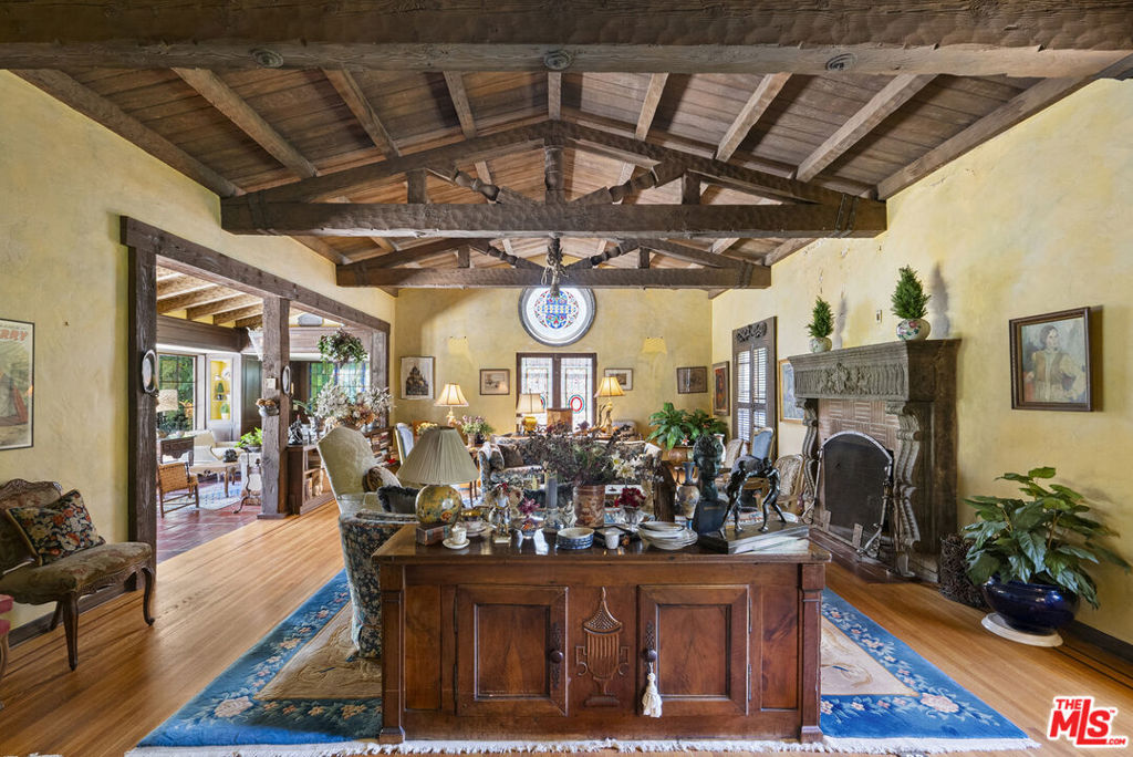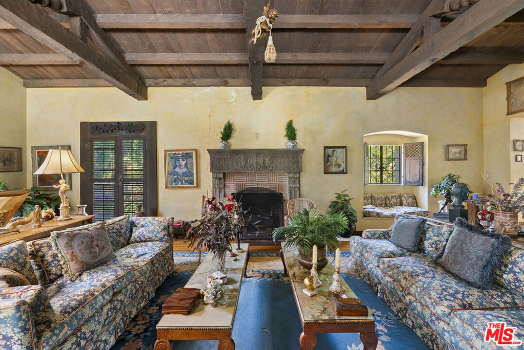 An Unparalleled Piece of Beverly Hills History on North Maple Drive: For the first time in over 55 years, an extraordinary estate on one of Beverly Hills' most prestigious and coveted streets is available. 706 North Maple Drive is not just a home, but a living piece of Hollywood history. This stunning Spanish-style residence, once the private retreat for screen legends Elizabeth Taylor, Debbie Reynolds, Eddie Fisher, and a young Carrie Fisher, offers a once-in-a-lifetime opportunity to own a storied estate where timeless elegance meets Old Hollywood glamour. Nestled on an expansive 21,232 square foot lot on one of the most sought-after blocks in the Beverly Hills flats, this property sits elevated from the street, providing both privacy and prestige. North Maple Drive is renowned for its magnificent homes and quiet, tree-lined streets, offering the ultimate in luxury living. Built in 1929, this architectural Spanish gem spans nearly 6,500 square feet with 5 bedrooms and 4.5 baths in the main house. The classic two-story features elegant stained glass windows with intricate mosaics, setting the tone for the home's Spanish charm. The grand scale living room impresses with exposed wood beam ceilings and a stone fireplace, while high ceilings throughout the home create a feeling of spaciousness. The residence is designed for grand living and entertaining. A large formal dining room and a European-style kitchen with custom stonework are perfect for hosting. The breakfast room and a separate bar area open through French doors to the patios and gardens, showcasing an expansive yard, and a stunning mosaic tile pool with an exterior dedicated three quarters bathroom. The backyard features a large patio and lawn, ideal for gatherings. The property also includes a 2 bed room guest house with a Jack and Jill bathroom, a separate half bath, wood beam ceilings, a three-car garage, and a long driveway for additional on-site parking for comfort and convenience. This is more than just a home; it's a rare chance to own a piece of entertainment royalty on one of Beverly Hills' most sought after streets. Don't miss this opportunity to blend Hollywood's past with your future!