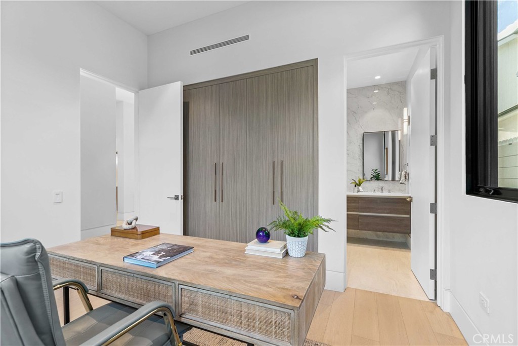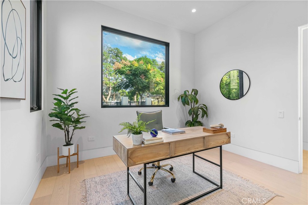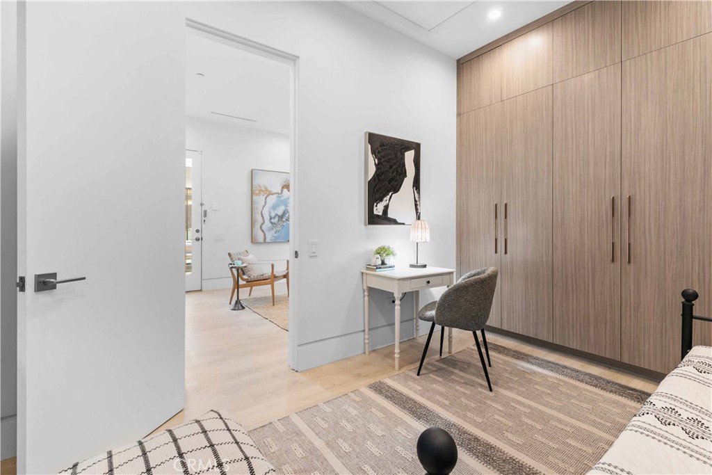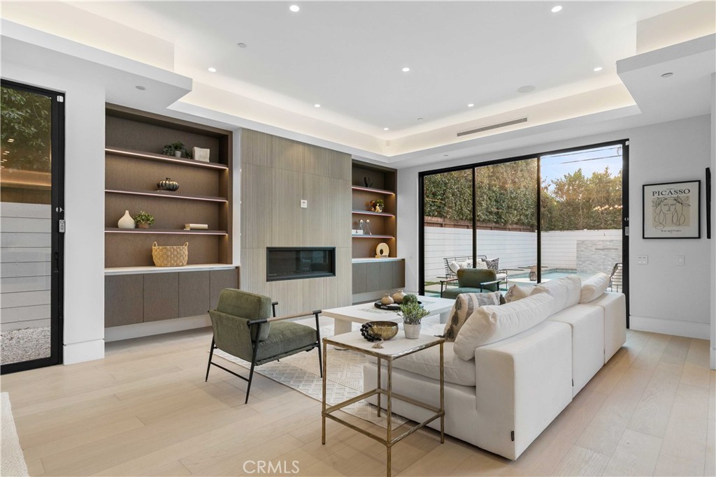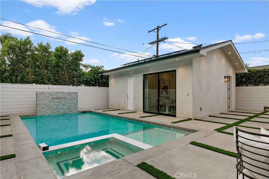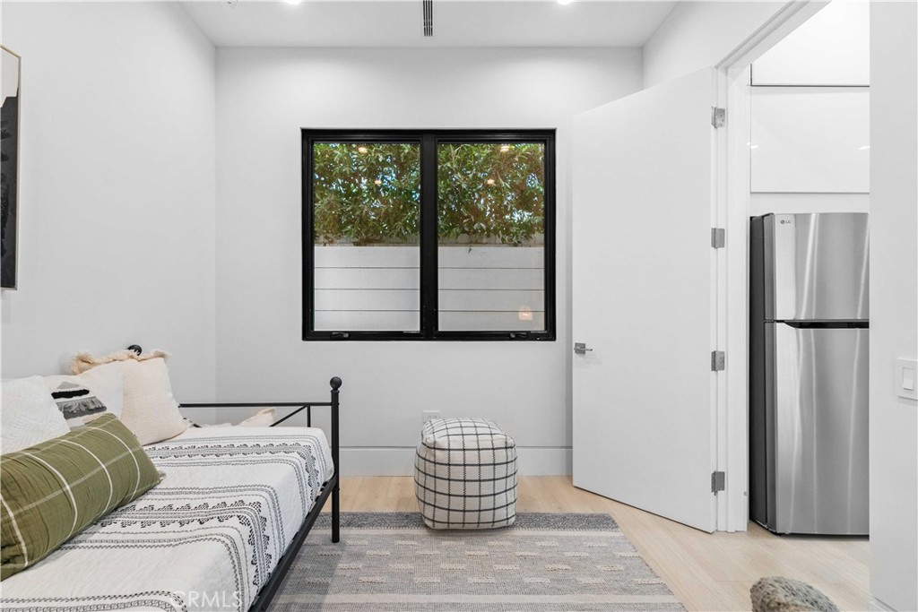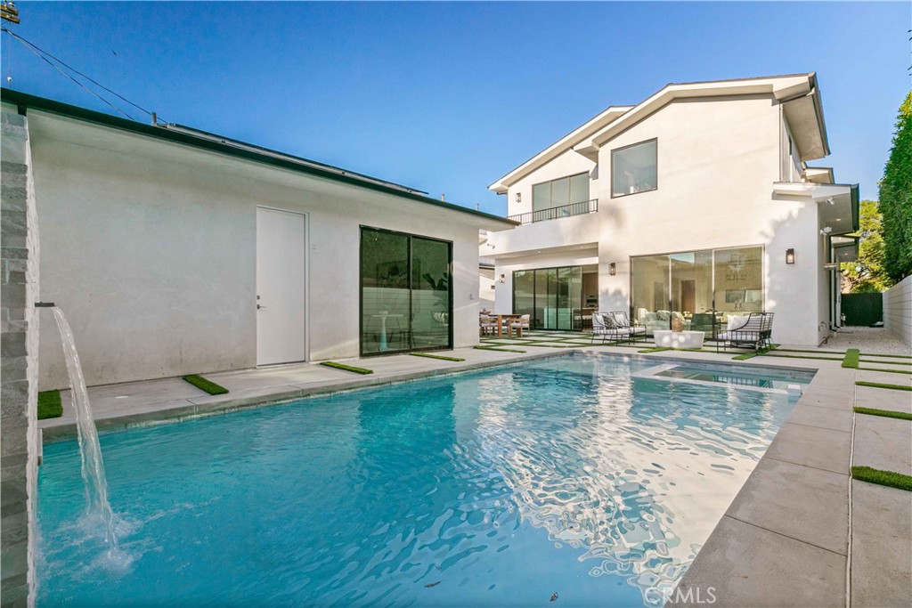 Welcome to 4437 Calhoun Avenue — a brand-new, ground-up construction in the heart of the coveted Library Square neighborhood of Sherman Oaks. This gated modern residence offers 3,161 sq ft of expertly crafted living space with 5 bedrooms and 5.5 bathrooms in the main home, plus a fully finished 515 sq ft ADU complete with its own bedroom and full bath — ideal for guests or extended family. Designed with spaciousness and flow in mind, the home features soaring 11-foot ceilings on the first floor and 9.5-foot ceilings upstairs, creating a bright and open atmosphere. The living room is anchored by a sleek fireplace and floor-to-ceiling sliding doors that open to the backyard, delivering the ultimate indoor/outdoor California living experience. The gourmet kitchen is a true centerpiece, featuring high-end Bertazzoni appliances, custom cabinetry, designer finishes, and a built-in beverage cooler. Upstairs, the primary suite offers a tranquil retreat with a fireplace, built-in sink and beverage cooler, a spa-like en-suite bath, and a walk-in closet with custom shelving. This smart home is equipped with fully integrated technology to control lighting, fireplaces, HVAC, pool speakers, and a Sonos sound system, and it comes complete with a security camera system for peace of mind. Solar panels on both the home and the ADU make this home an energy efficient masterpiece. Additional highlights include Hansgrohe faucets throughout, an attached garage, three separate HVAC systems (for each floor and the ADU), and a dedicated laundry room with Samsung washer and dryer included. Set on a quiet, tree-lined street in Library Square, this gated, camera-secured property blends modern luxury, high-tech convenience, and timeless comfort in one of Sherman Oaks’ most desirable neighborhoods.