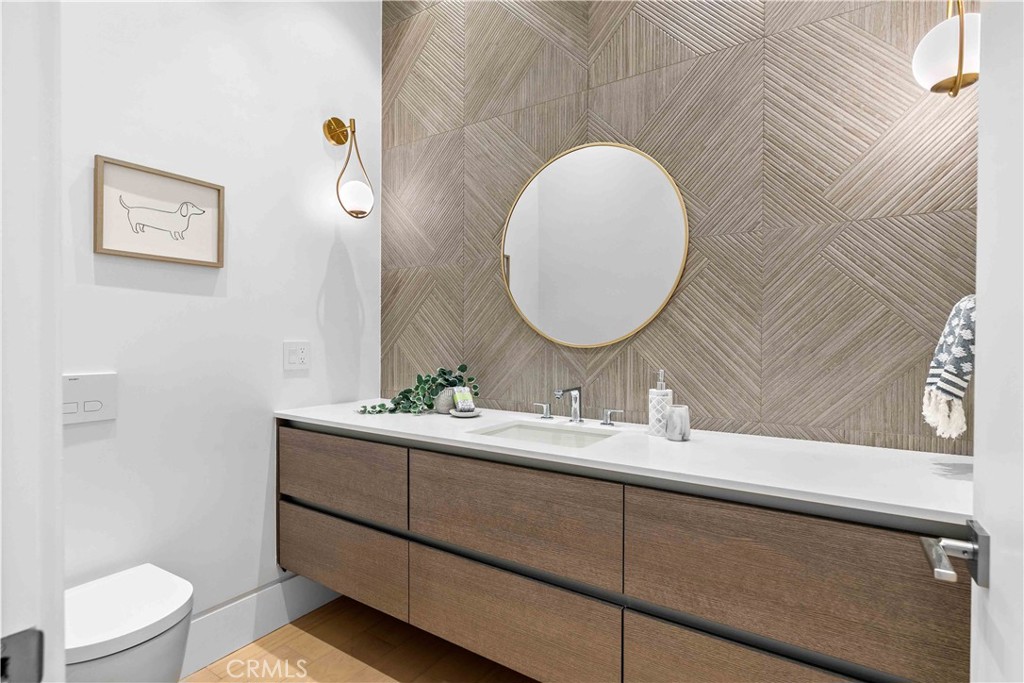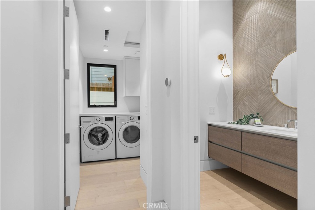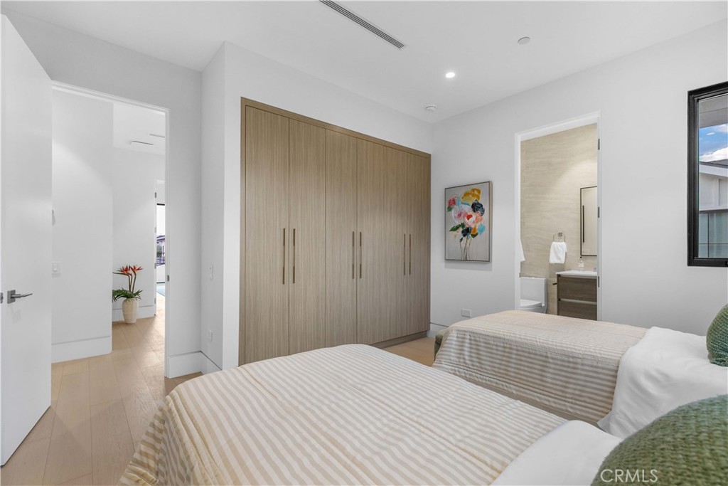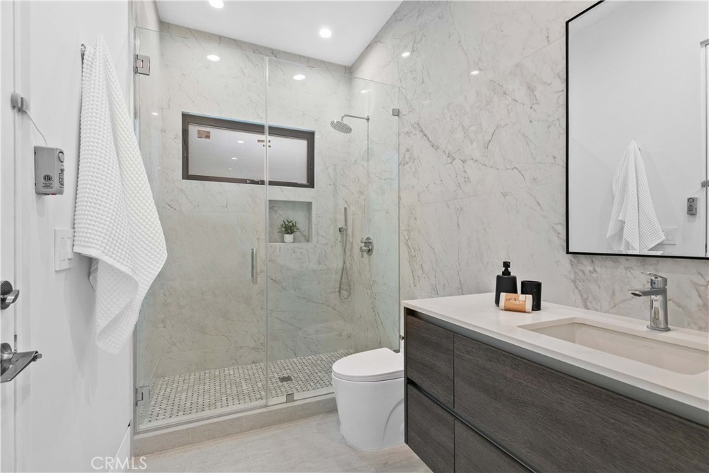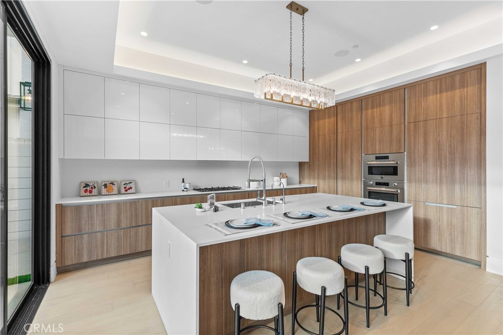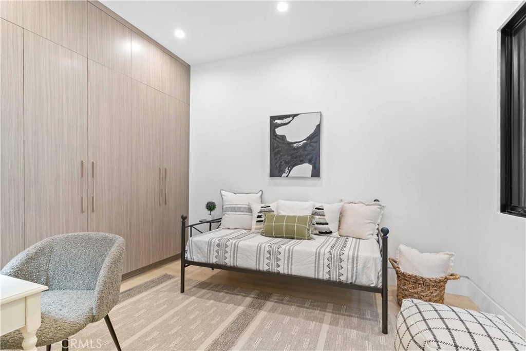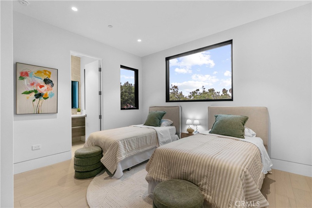 Welcome to 4437 Calhoun Avenue — a brand-new, ground-up construction in the heart of the coveted Library Square neighborhood of Sherman Oaks. This gated modern residence offers 3,161 sq ft of expertly crafted living space with 5 bedrooms and 5.5 bathrooms in the main home, plus a fully finished 515 sq ft ADU complete with its own bedroom and full bath — ideal for guests or extended family. Designed with spaciousness and flow in mind, the home features soaring 11-foot ceilings on the first floor and 9.5-foot ceilings upstairs, creating a bright and open atmosphere. The living room is anchored by a sleek fireplace and floor-to-ceiling sliding doors that open to the backyard, delivering the ultimate indoor/outdoor California living experience. The gourmet kitchen is a true centerpiece, featuring high-end Bertazzoni appliances, custom cabinetry, designer finishes, and a built-in beverage cooler. Upstairs, the primary suite offers a tranquil retreat with a fireplace, built-in sink and beverage cooler, a spa-like en-suite bath, and a walk-in closet with custom shelving. This smart home is equipped with fully integrated technology to control lighting, fireplaces, HVAC, pool speakers, and a Sonos sound system, and it comes complete with a security camera system for peace of mind. Solar panels on both the home and the ADU make this home an energy efficient masterpiece. Additional highlights include Hansgrohe faucets throughout, an attached garage, three separate HVAC systems (for each floor and the ADU), and a dedicated laundry room with Samsung washer and dryer included. Set on a quiet, tree-lined street in Library Square, this gated, camera-secured property blends modern luxury, high-tech convenience, and timeless comfort in one of Sherman Oaks’ most desirable neighborhoods.