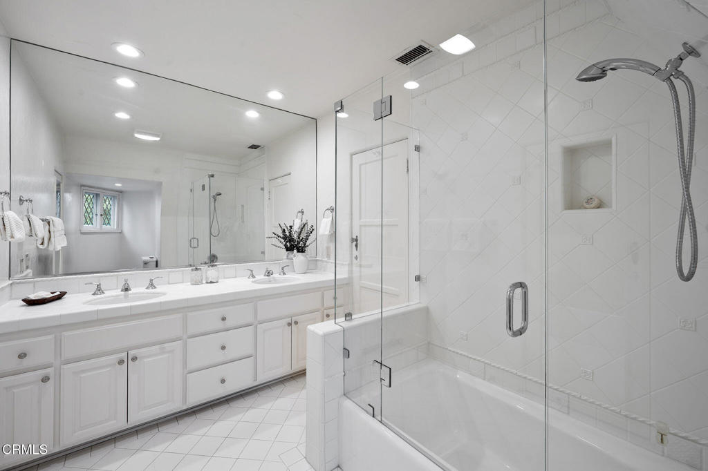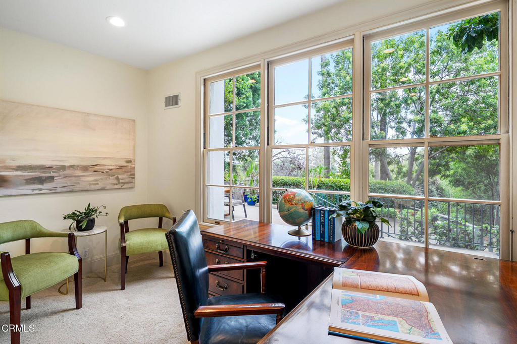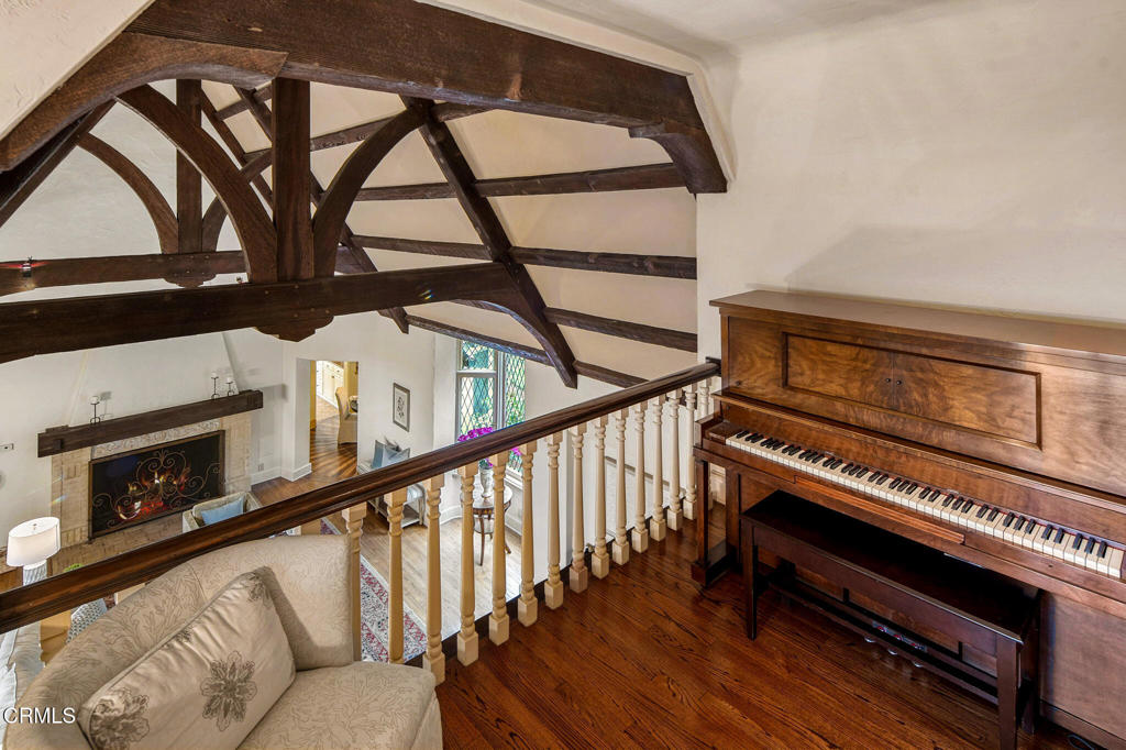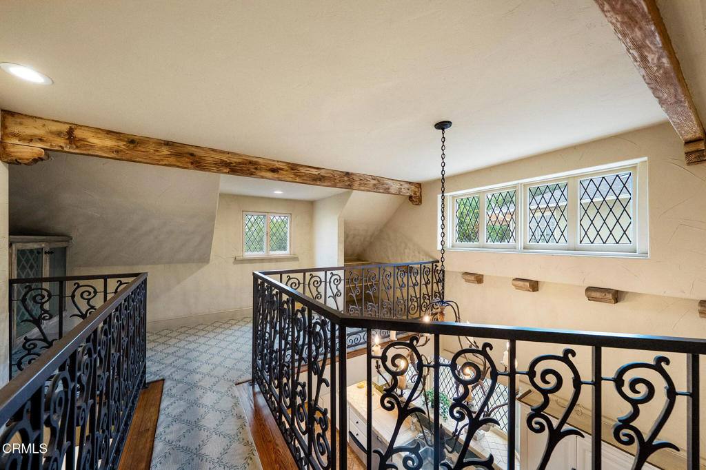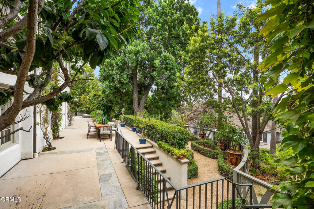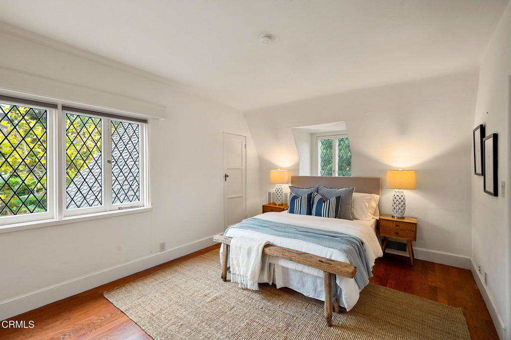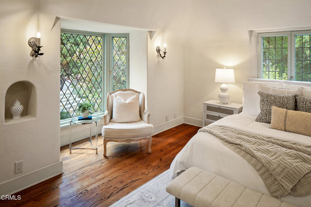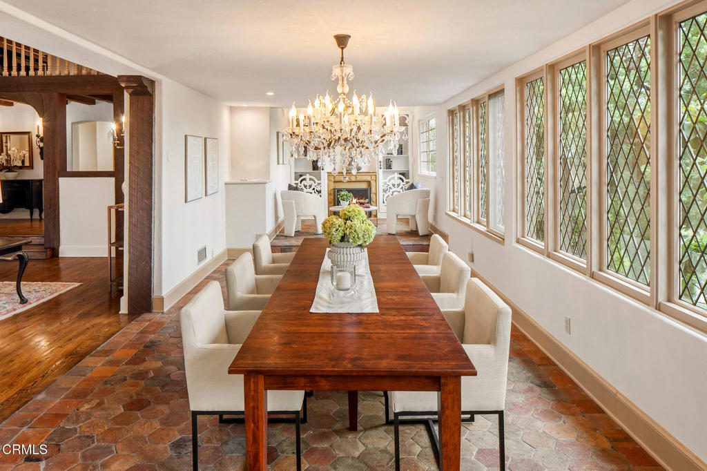 Welcome to Valley View cottage--a treasured piece of Pasadena's architectural heritage designed by Wallace Neff nearly a century ago. One of thirteen beautifully restored cottages on the gated grounds of the historic Huntington Hotel, Valley View was built in 1926 the hotel's long-time owner and manager D.M. Linnard. Rich with timeless character, the residence blends Tudor Revival and storybook cottage styles with hints of a Grimmian fairytale. As you enter, striking interiors and design flourishes echo the home's impressive exterior. In the great room, a nearly 20' ceiling features exposed trusses and beams, creating a grand space for entertaining. The formal dining room glows with natural light from a thirty-foot wall with diamond-shaped mullioned windows while the beautifully updated eat-in kitchen connects to a sunlit breakfast room. Completing the main level, you'll find a guest bedroom / media room, three-quarter bath, and the luxurious primary suite with private balcony and spa bath. Upstairs, two bedrooms share a bathroom, with the southeast bedroom featuring a private balcony and sweeping valley views. The extremely versatile lower level, with its own entrance, offers a bedroom ensuite, two offices, a gym, two kitchens, and flexible living spaces. Outdoors, tiered gardens recall a countryside manor, equally suited for entertaining or a quiet evening under the stars in the Jacuzzi. With four deeded parking spaces plus a three-car garage, guests come and go with ease. As a resident of Huntington Circle, you'll enjoy direct access to the Langham Hotel's world-class amenities--from lush gardens to fine dining. Combining exquisite architecture, modern luxury, and unmatched convenience, Valley View invites you into a timeless storybook setting where your happily-ever-after unfolds.