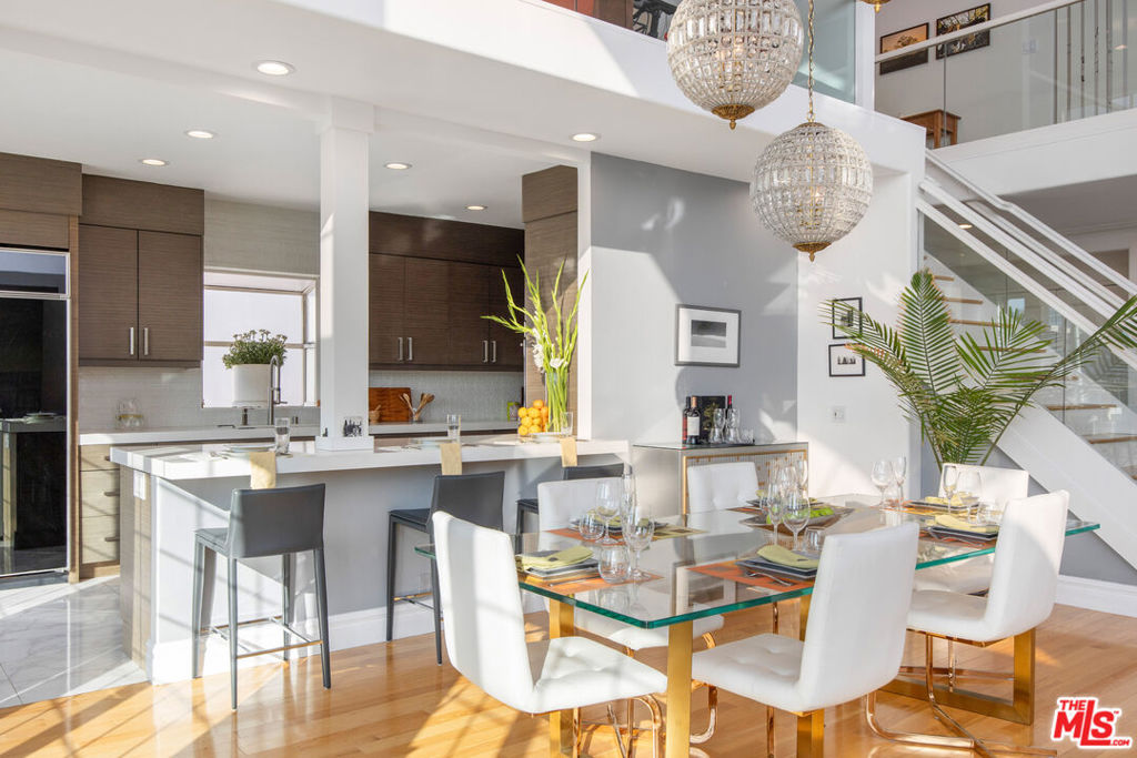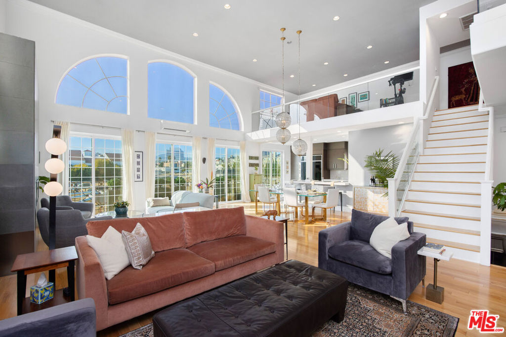 This rare and refined two-story New York style penthouse loft offers an effortless blend of creative space, sophistication, and room for entertaining in the heart of Brentwood. With over 3,100 square feet, this 4-bedroom, 3.5-bathroom residence is a spacious family home and an entertainer's dream. Ideally located blocks from the best of Brentwood - including San Vicente's premier shopping and dining, the Brentwood Country Club, top-tier grocery stores, and the beloved Brentwood Farmers Market, this extraordinary penthouse delivers both convenience and comfort in one of LA's most desirable neighborhoods. Soaring ceilings and expansive north-facing windows flood the space with natural light, city views, and mountain views - offering brightness all day long and unforgettable sunsets. The open-concept floor plan features an expansive living area, a formal dining area, and a chef's kitchen. Overlooking the main living space is a spacious second-story loft, ideal as a home office, lounge, or creative area such as a home gym or art studio. The designer kitchen is open-concept, outfitted with custom cabinetry and top-of-the-line appliances, including a Sub-Zero refrigerator, Wolf gas cooktop, double oven, and microwave drawer, along with a hidden dishwasher. All main-level bathrooms have been thoughtfully renovated with high-end finishes. The primary suite offers a generous walk-in closet and a spa-like en-suite bathroom featuring a soaking tub. Three bedrooms are located on the main level, while the fourth bedroom and loft sit upstairs alongside a laundry area with washer/dryer and direct access to the private rooftop deck. This outdoor space features artificial turf, bistro lighting, a gas fire pit, and panoramic views - perfect for sunset gatherings or peaceful mornings in the sun. This exceptional home must be experienced in person to be fully appreciated.