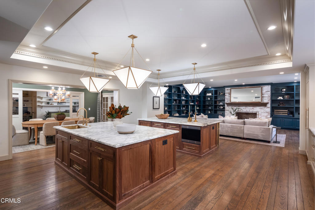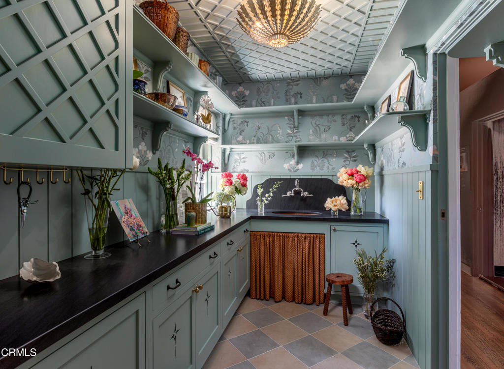 Beamed Ceilings, Wet Bar, Breakfast Bar, Built-in Features, Balcony, Breakfast Area, Crown Molding, Separate/Formal Dining Room, Dumbwaiter, Eat-in Kitchen, High Ceilings, In-Law Floorplan, Multiple Staircases, Pantry, Paneling/Wainscoting, Stone Counters, Recessed Lighting, Storage, Sunken Living Room, Bar, Atrium