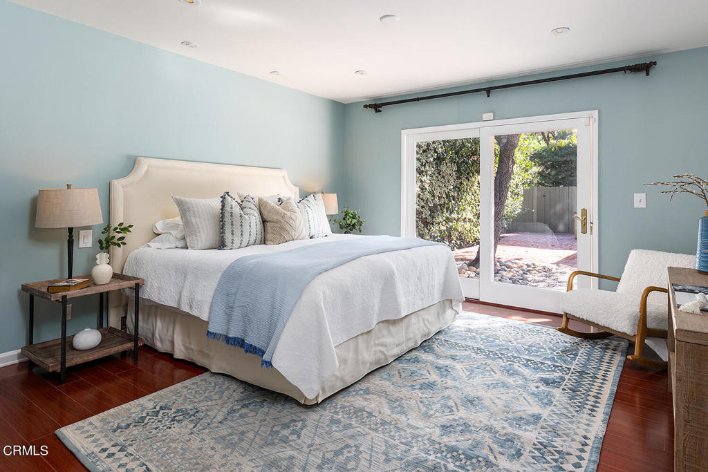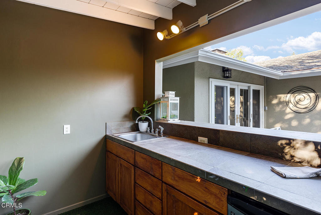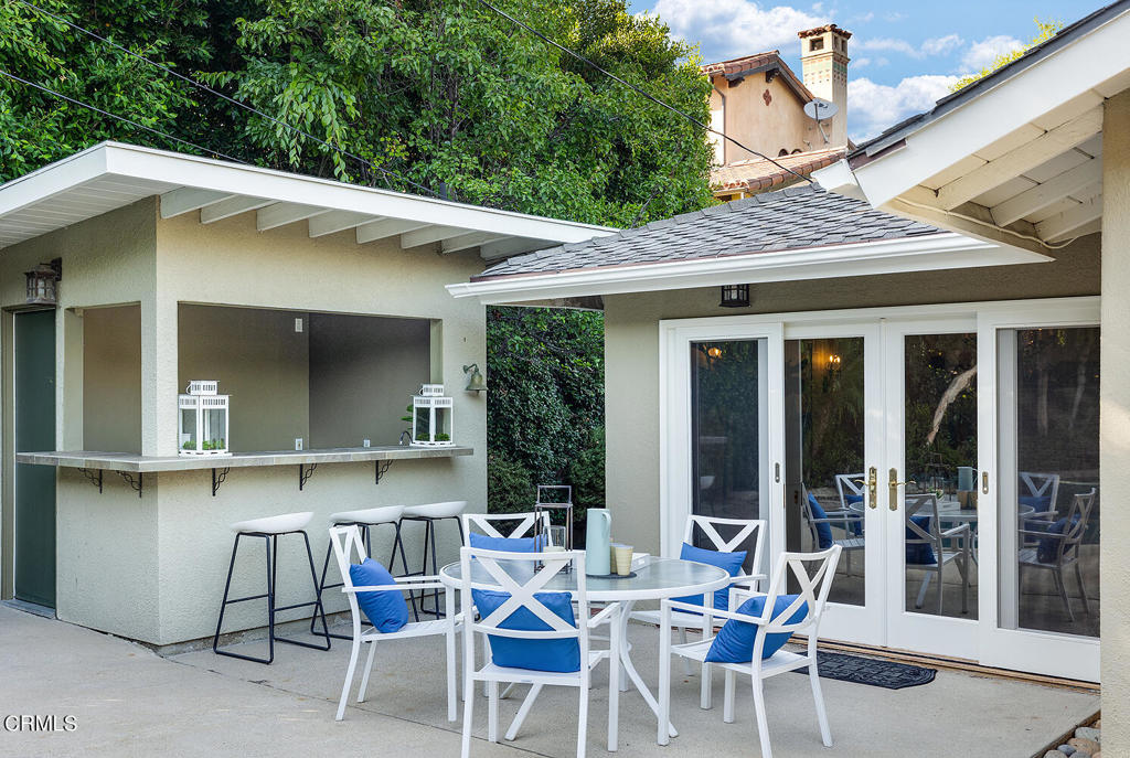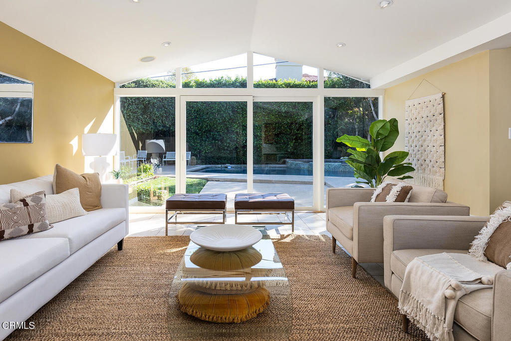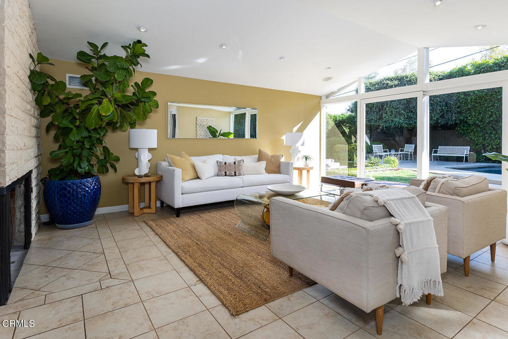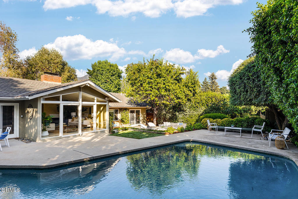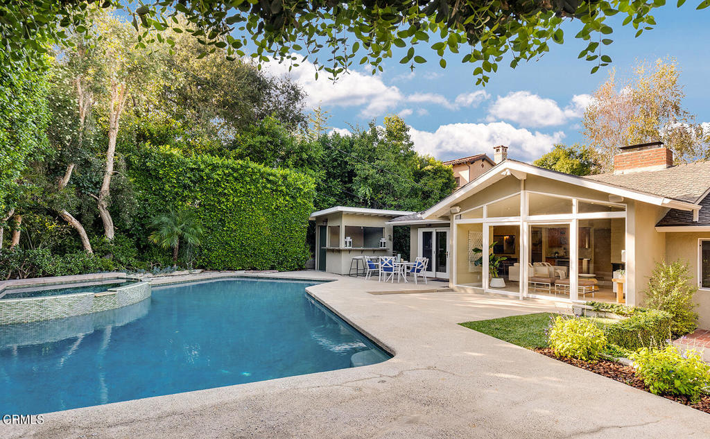 Nestled at the end of a friendly cul-de-sac in the desirable Palm Crest elementary neighborhood, this comfortable single story Mid-Century style home features an open floor plan, architectural windows, and sparkling pool/spa. The picturesque formal living room with fireplace opens to the dining room while integrating a seamless indoor-outdoor living experience. The spacious kitchen and family rooms feature an eat-in island, built-in desk, custom cabinetry, convenient access to the laundry/garage and views of the front yard. Off the common gathering area is a wing of three bedrooms and two bathrooms, including a primary suite with an extensive closet, en-suite 3/4 bathroom and a sliding glass door allowing nature to pour into the master bedroom. The backyard oasis offers an inviting patio with many sitting areas, lush landscaping, mature trees, outdoor cabana bar, pool/spa and patios for al fresco dining. Connected to sewers. Award winning La Canada schools.