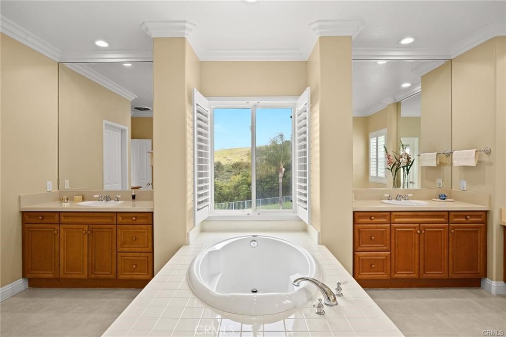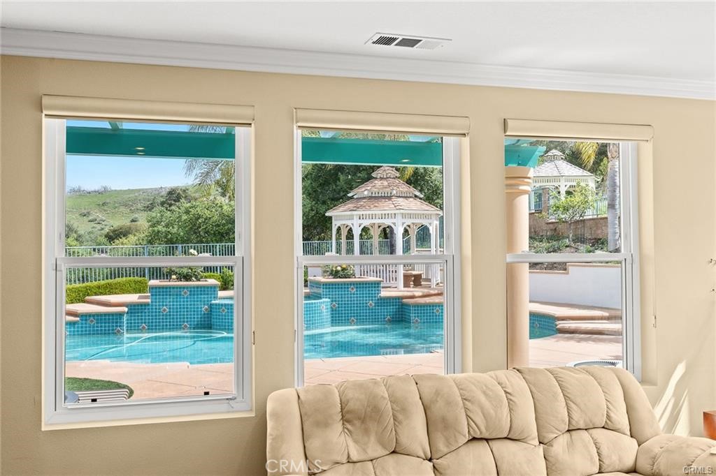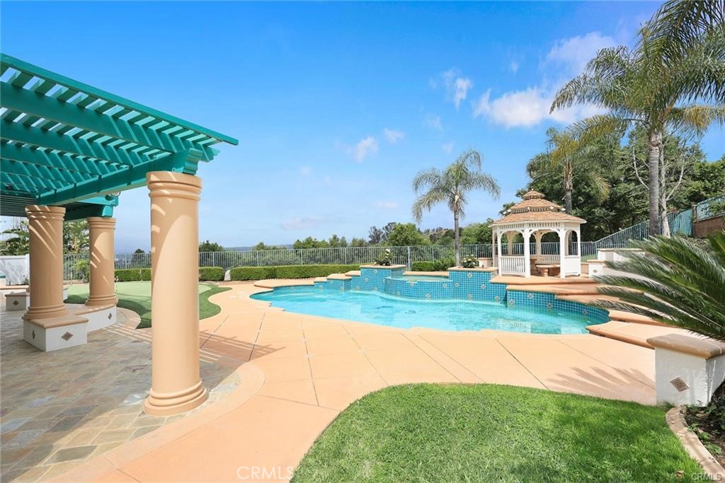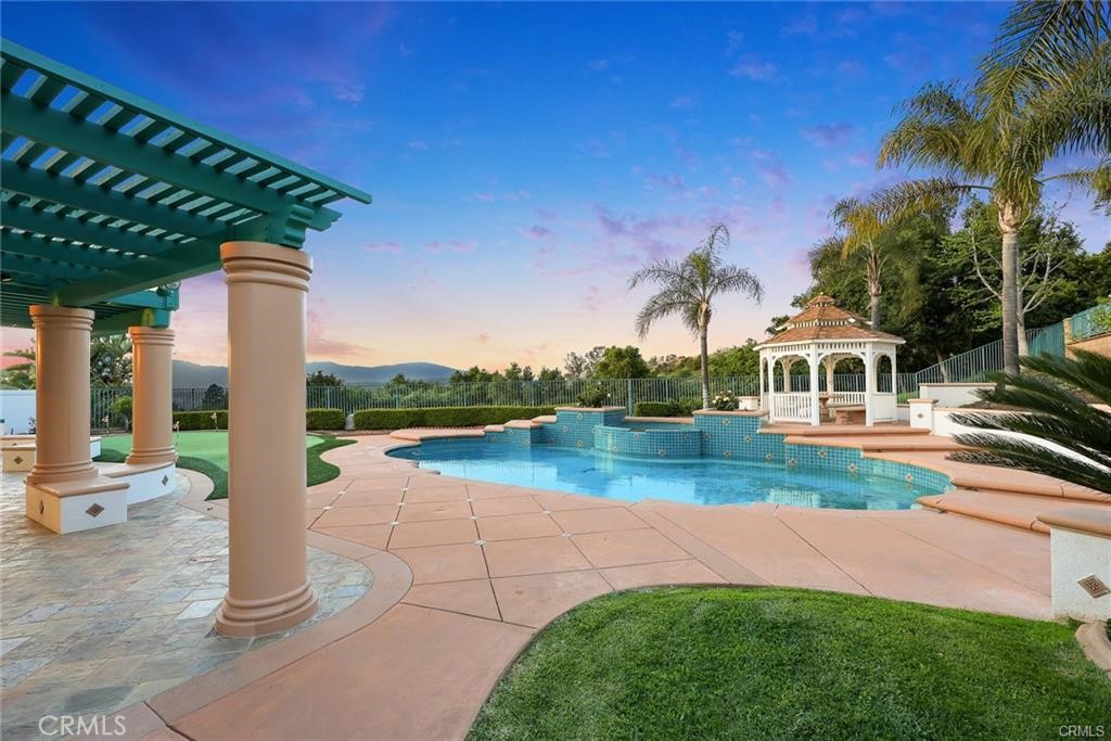 View, view, view. Breathtaking city lights and snow caps in winter, and offer one-of-a-kind viewing points of the sparking city lights by night. Nestled in Rowland Heights primer residential corridor "Ridgemoor" community with 24 hours security guard. Total 7 bedrooms, 5.5 bathrooms (4 suite) An elegant grand foyer entrance with beautiful double doors, and crystal chandelier makes the centerpiece of this home welcoming point. Elegant living room with extremely high ceilings, fireplace, and open to the formal dining room with crystal chandelier. The spacious family room features custom built-in bookshelves. Stunning kitchen space with large island, granite countertops, built-in appliances and separate wok kitchen, two suite and powder room on the main floor. Spacious and luxurious upstairs primary bedroom suite with balcony which can overlook the breeze view and offers two large walk-in closets. Primary bathrooms feature dual vanities, bathtub and separate shower. Other 4 bedrooms and 2 bathrooms on the second floor. One suite is spacious customs tatami floor. Professional landscaping features a sparking swimming pool and spa. Built-in BBQ, patio, Gazebo, and putting green. Rest and relax in an open-concept backyard, perfect for entertaining. Very convenient location close to school, shopping center, bank, restaurant.