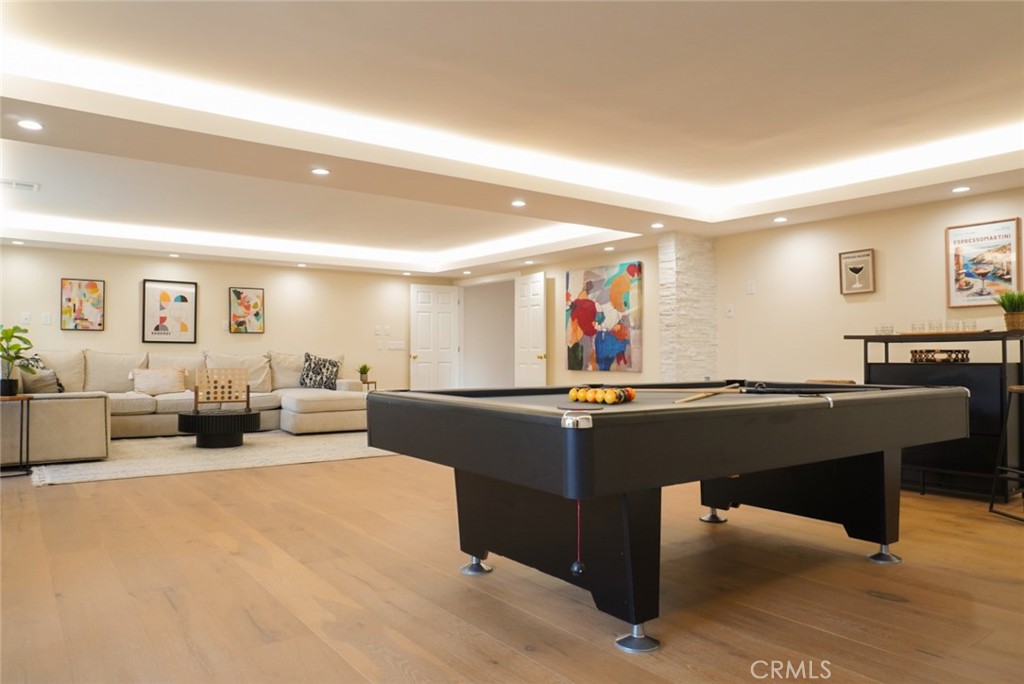 Cascading curved staircase to the second floor with an ornate chandelier. A luxurious master suite (~1,000 sq ft) with private balcony overlooking the pool. sitting area, office nook, fireplace, dual walk-in closets, oversized bath with Roman tub, walk in shower, and dual vanities. Additional bedrooms, each with private bathrooms. A sprawling media/game room over (~700 sq ft), a soundproof recording studio ( a highlight for music lovers). And an office/guesthouse with its own private entrance.