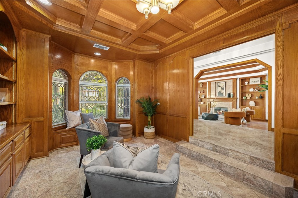 FORMAL LIVING & DINING ROOMS WITH RICH CUSTOM CEILING DETAILS AND TRADITIONAL COZY FIREPLACES