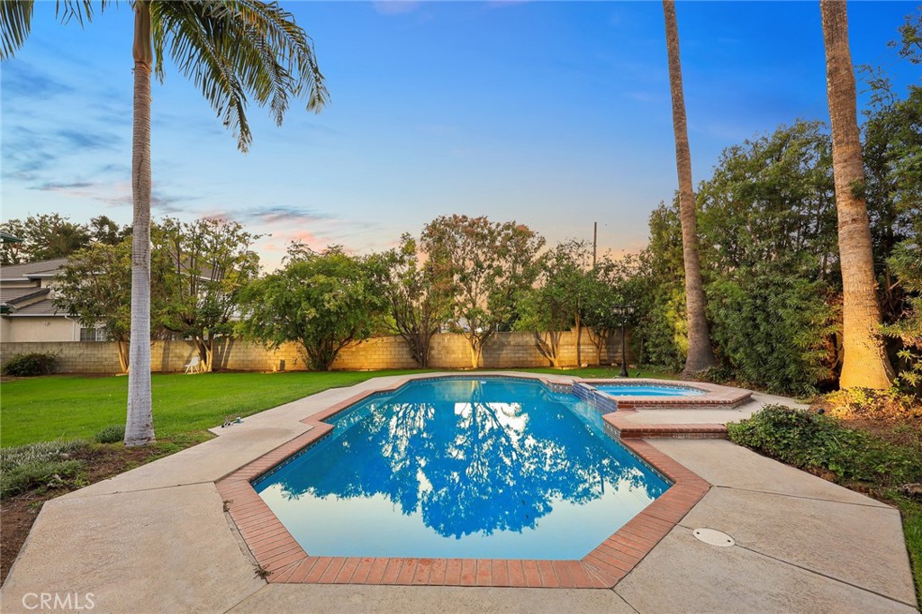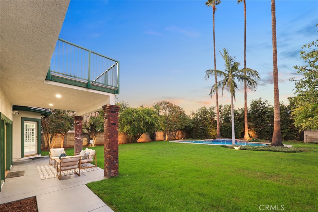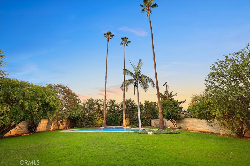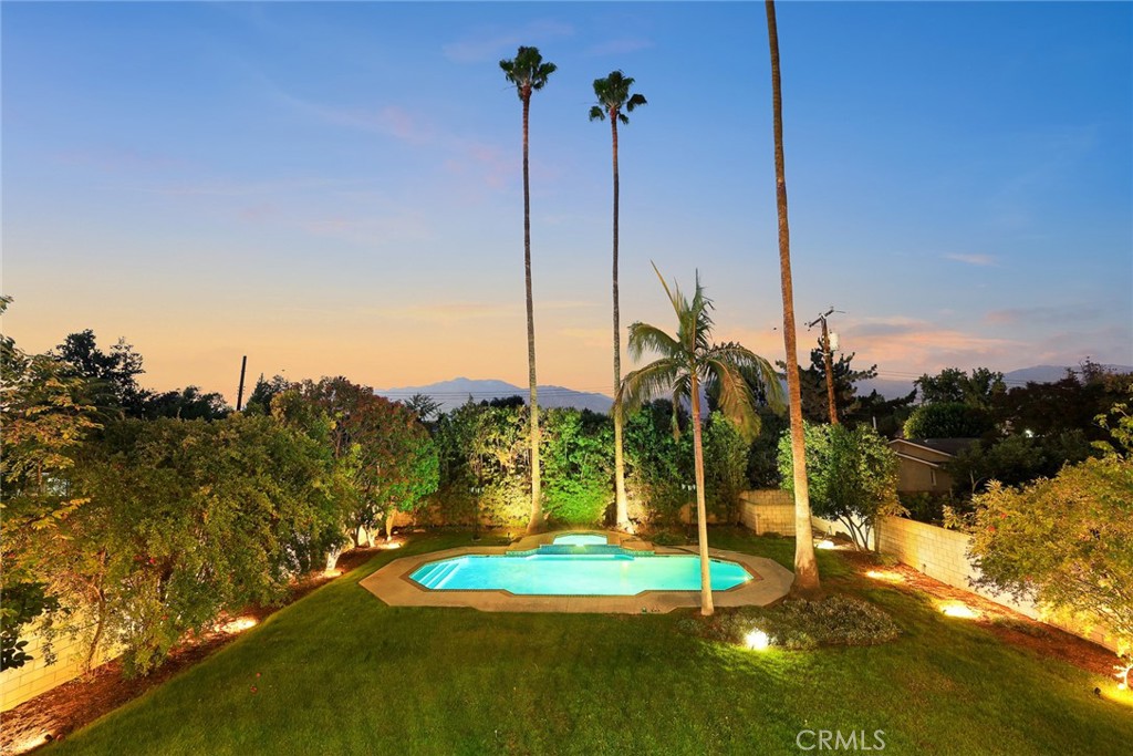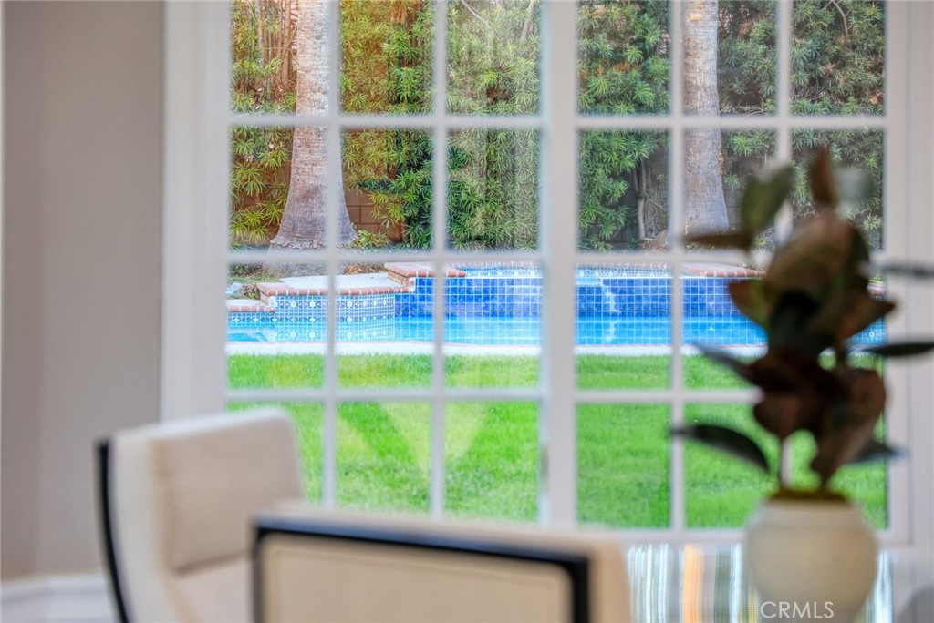 STEP OUTSIDE THROUGH GRAND FRENCH DOORS TO A PROFESSIONALLY LANDSCAPED BACKYARD OASIS FEATURING A SPARKLING POOL, MATURE GREENERY, AND AMPLE SPACE FOR ENTERTAINING GUESTS.