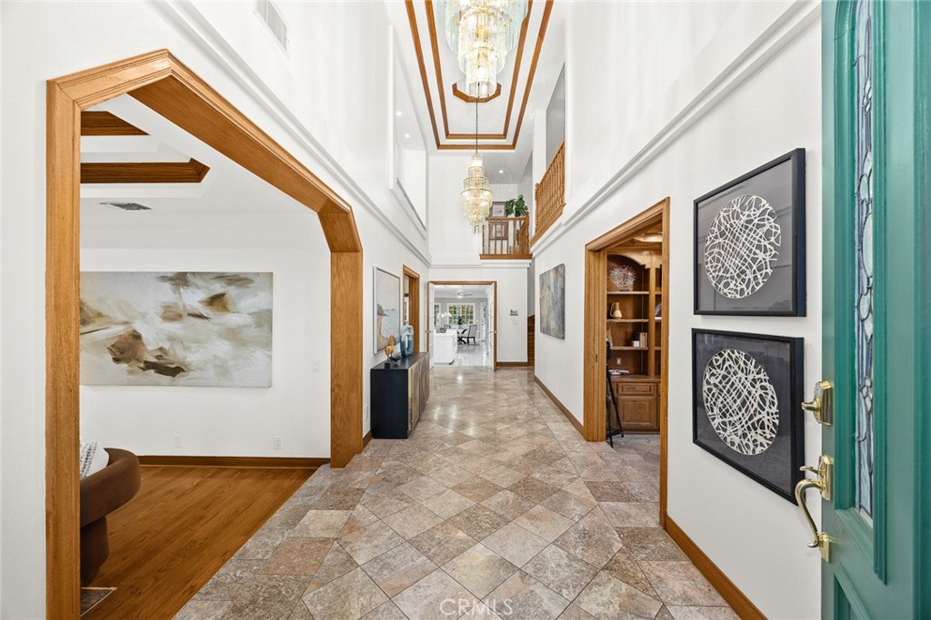 6,186 SQUARE FEET OF LIGHT-FILLED LIVING SPACE, SHOWCASING GLEAMING HARDWOOD AND MARBLE FLOORS, SOARING CATHEDRAL CEILINGS, A GRAND SPIRAL STAIRCASE, AND CRYSTAL CHANDELIERS. WALLS OF CRYSTAL-EDGED GLASS AT THE FRONT OF THE HOME CAPTURE AND REFLECT SUNLIGHT, CREATING A BRIGHT, AIRY ATMOSPHERE THROUGHOUT. COMPLETELY REMODELED FROM THE GROUND UP, INCLUDING ROOF, FLOORS, KITCHEN & BATHROOMS, GARAGE DOORS, APPLIANCES, DECKS, AND ON.