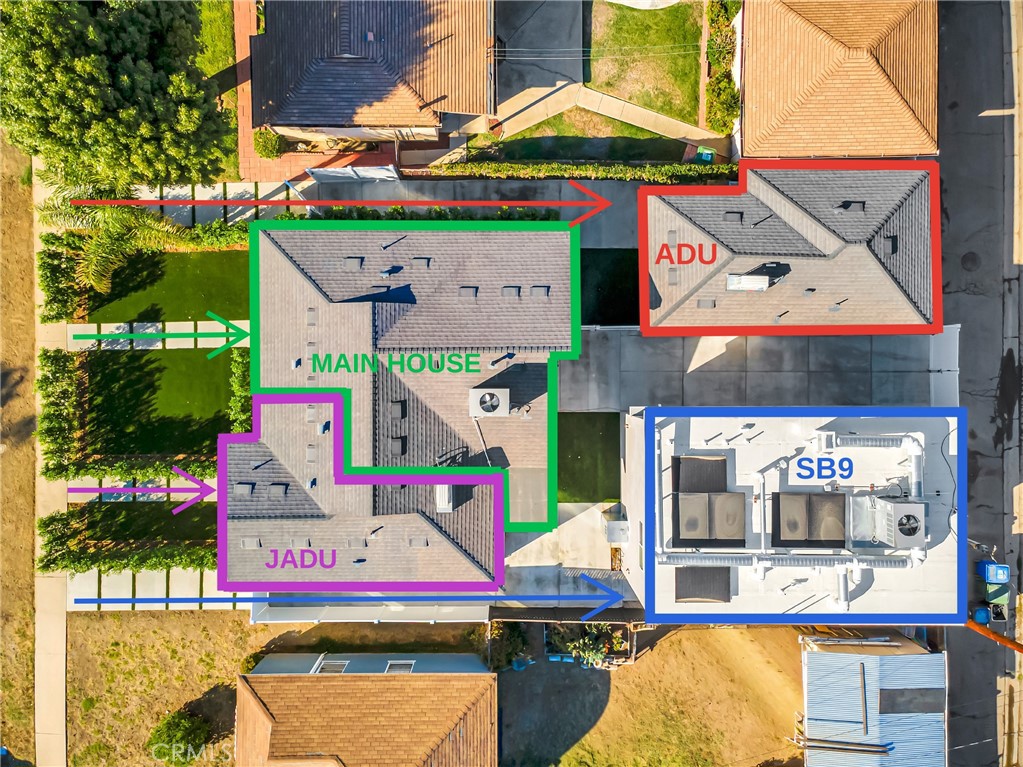 Four Houses on One Lot in Prime Reseda! You read that right!! Welcome to 6858, 6858 ½, 6860 & 6860 ½ Aura Ave! A truly unique property offering endless possibilities for large families seeking space & privacy and for investors looking for an excellent Real Estate Investment with great cash flow. $11,500+ monthly rental income potential makes this property an incredible investment opportunity. This four unit property features a total of 7 bedrooms and 6 bathrooms with a total of approximately 3121 sqft of living space, each unit with its own front yard and private entry. 6858 Aura (Main House): 818 Sqft, 2 beds & 1 bath. 6858 ½ Aura (Junior ADU): 474 Sqft, 1 bed & 1 bath. 6860 Aura (SB9): 1,279 Sqft, 3 beds & 3 baths. 6860 ½ Aura (ADU): 550 Sqft, 1 bed & 1 bath. This property showcases modern exteriors, paid-off solar panels, high ceilings, brand-new plumbing, electrical, sewer lines, HVAC systems, roof, smooth stucco and landscaping. Interiors feature stainless steel appliances, durable new doors, double-pane windows, and open floor plans. Each unit features its own separate electric meter, separate washer & dryer hook ups, private entries, front yard and more. Top of the line Navien gas water heaters for Main House & JADU. while the SB9 and ADU are equipped with top-of-the-line Rheem electric water heaters. SB9 & ADU have both front and back alley access. Don’t miss your chance to own this exceptional four-plex in one of Reseda’s most desirable pockets!