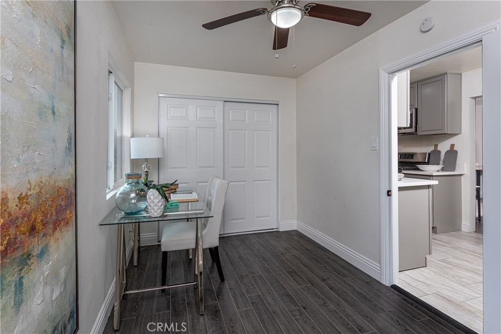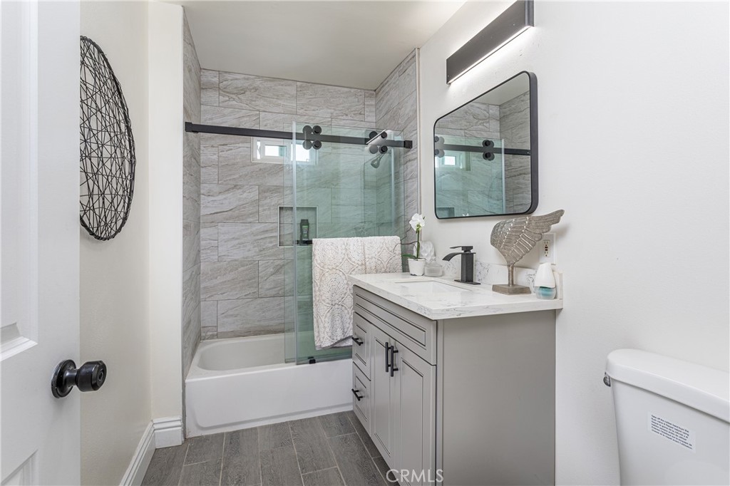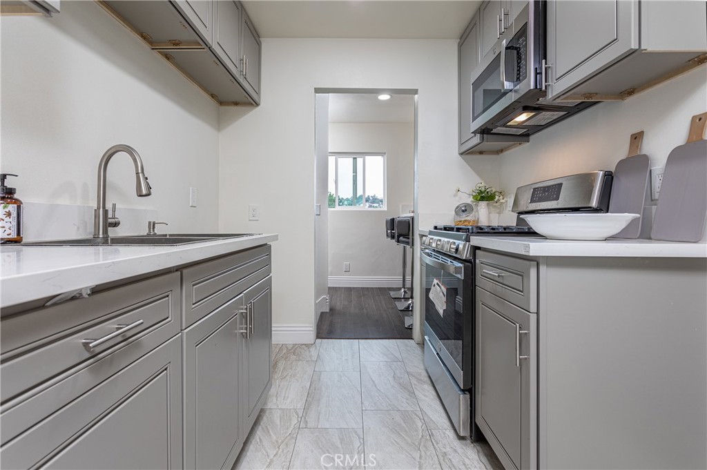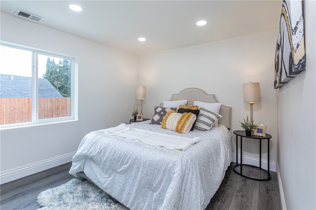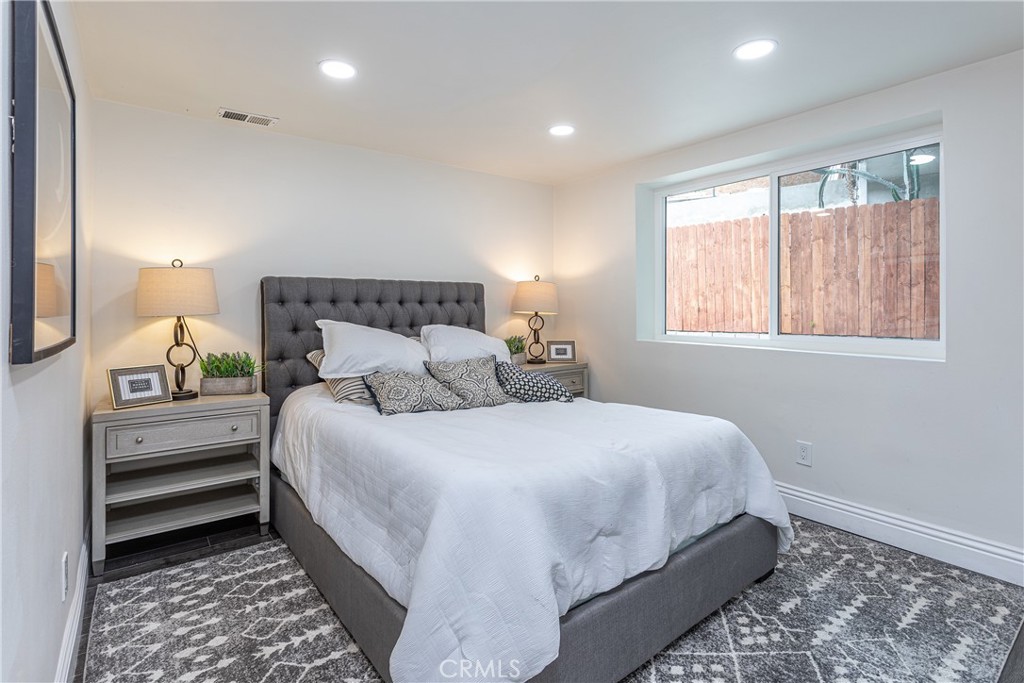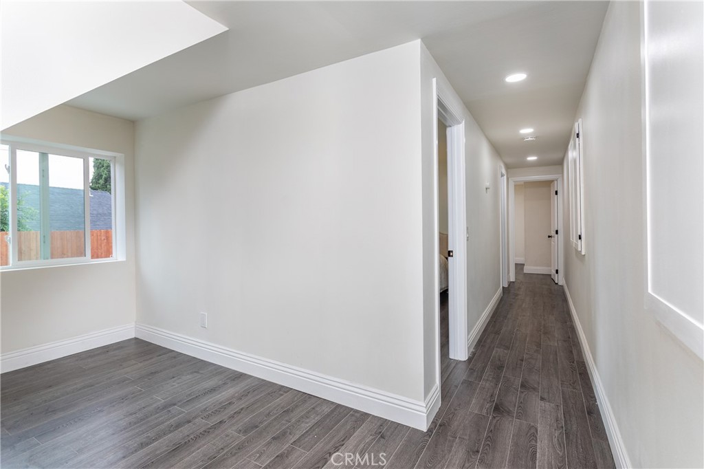 Move in Ready! Nestled on a peaceful hillside in the University Hills neighborhood of Los Angeles is this freshly updated gorgeous home with a generous amount of living space. The living room, a great space to relax with family and friends, has freshly painted walls and beautiful laminated flooring that extends into the dining area, kitchen, and bedrooms. The galley kitchen has new stainless-steel appliances and trendy vinyl plank flooring. The adjacent bonus area has bar seating with an added storage area. Rounding out the main floor are three light and bright bedrooms with ceiling fans, and a fully updated bathroom with a gorgeous, tiled shower tub and quartz topped vanity. Downstairs are two additional bedrooms, a full bathroom complete with a tiled shower tub, and a single sink vanity along with additional storage space. There is also a door leading to the private backyard, a perfect space to make your own outdoor oasis. This incredible home is located near Cal State Los Angeles University, coffee shops, restaurants, shopping, Ascot Hills Park, and more. Do not miss this amazing opportunity to own this expansive home!