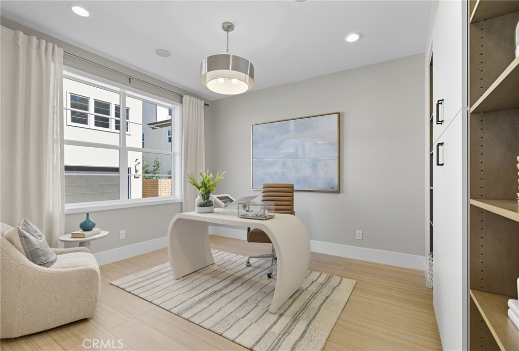 Welcome to Silverstone at Metro Heights, a new community located in Montebello, which is close to downtown Los Angeles and conveniently located next to the 60 freeway. Homesite 17 is a new construction home that is situated on a low maintenance home site with an uncovered roof top deck on the 4th floor. The Melrose Elite floor plan features 5 bedrooms, with 4 bathrooms, and is 3,205 sq. ft, with a 2-car garage. Upon entering the home, there is optional office space and a practical in-suite bedroom with a full bathroom that features a walk-in shower on the first floor. On the second floor, the kitchen features a large island with integrated sink, kitchen appliances are provided by Kitchen-Aid. The primary bedroom provides a generous space with large windows and an amazing walk-in closet. Highlights of the home include an upgraded indoor conservatory in lieu of a balcony on the second floor, with 10 foot high ceilings on your second floor, and upgraded interior insulation package throughout the home. The community amenities include multiple pocket parks, a walking trail, and a 10,000 square foot community center with two pools, cabanas, office space, multiple BBQs and a gym. Homesite 17 has an estimated closing of Spring 2026. Photos provided are renderings, actual home is under construction.