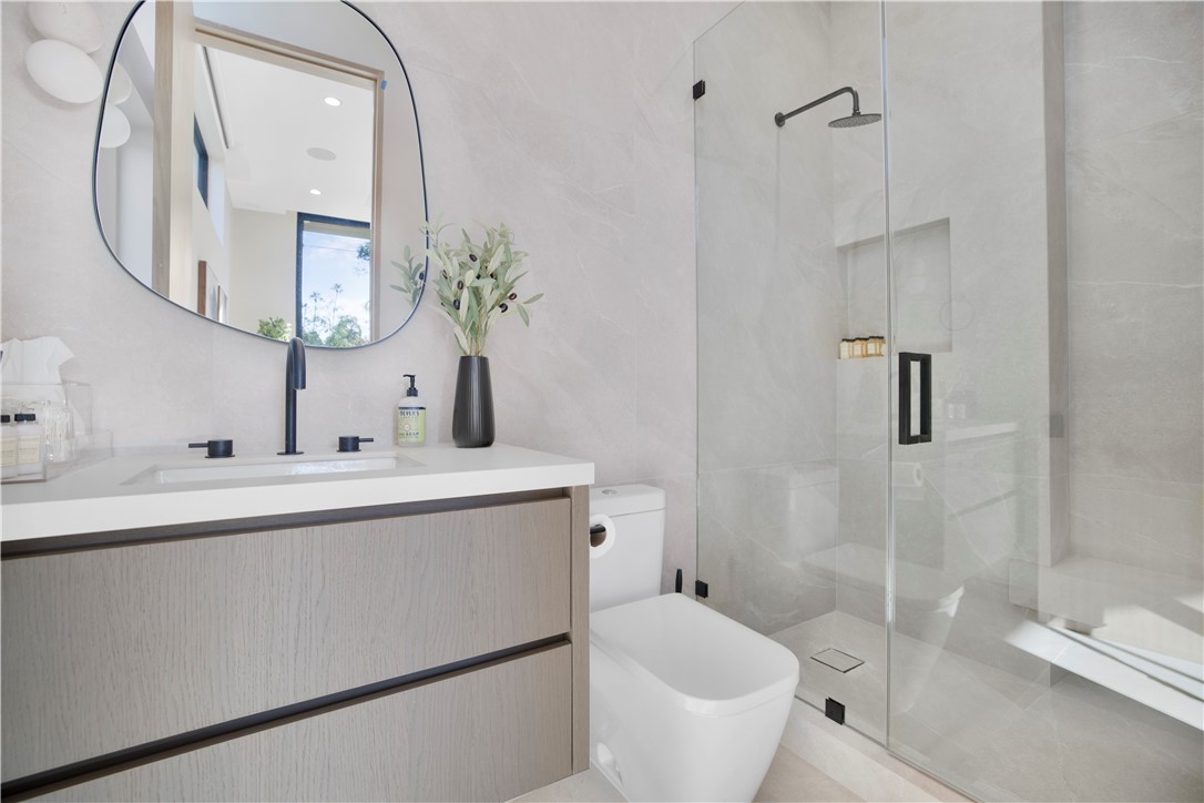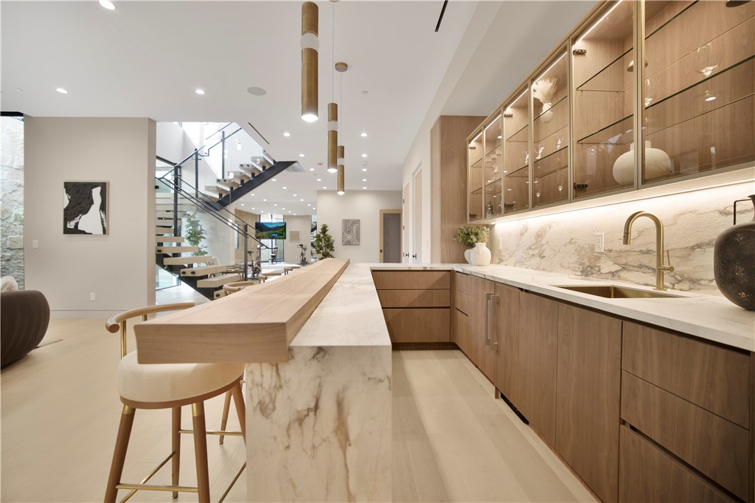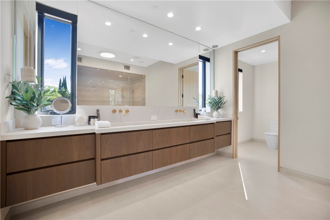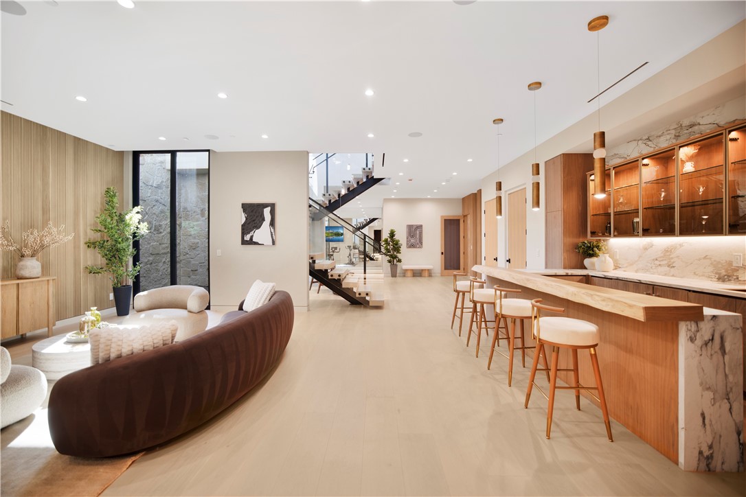 A MAJESTIC MODERN MASTERPIECE LOCATED IN THE AMESTOY ESTATES NEIGHBORHOOD OF ENCINO! STUNNING BRAND-NEW CONSTRUCTION THAT SPANS OVER 8,100 SQ. FT. OF OPEN CONCEPT LIVING. DRAMATIC ENTRY WELCOMES YOU TO SOARING CEILINGS AND A LIGHT-FILLED FLOORPLAN THAT IS DESIGNED FOR LUXURY AND ENTERTAINING. ONE OF A KIND GOURMET KITCHEN WITH CHEF'S ISLAND AND ALL STATE-OF-THE-ART APPLIANCES INCLUDING MEILE REFRIGERATION CENTER, DOUBLE OVENS, MICROWAVE, BUILT-IN COFFEE MAKER, BUTLER'S PANTRY, AND LARGE WALK-IN PANTRY. LIVING ROOM WITH FIREPLACE WITH POCKET DOORS OPENS TO INVITING OUTDOOR OASIS INCLUDING SALT WATER POOL/SPA, BBQ CENTER, AND CABANA WITH FIREPLACE. DRAMATIC STAIRCASE LEADS YOU TO THE UPPER LEVEL, WHICH HAS 3 BEDROOMS (ALL ENSUITES) WITH BALCONIES. THE MAGNIFICENT PRIMARY SUITE OFFERS A FIREPLACE, PRIVATE BALCONY, AND A DRESSING ROOM/ WALK IN CLOSET. THE PRIMARY BATH WITH A UNIQUE DUAL VANITY, A LARGE STEP-IN SHOWER, AND A SOAKING TUB. LOWER LEVEL IS THE ULTIMATE ENTERTAINING CENTER THAT OFFERS A THEATRE ROOM, WET BAR, LOUNGE AREA, GYM/DANCE STUDIO, MASSAGE RM, BEDROOM SUITE, LAUNDRY RM, BATH WITH STEAM SHOWER, AND OUTDOOR COURTYARD. OTHER FEATURES INCLUDE CONTROL 4 SMART HOUSE SYSTEM, SOLAR PANELS, SECURITY CAMERAS, AND MULTI-SPLIT A/C AND HEATING SYSTEM. THIS PROPERTY OFFERS A VARIETY OF CUSTOM HIGH-END FINISHES, MATERIALS, AND WARM WOOD ACCENTS. BUILT BY LA'S FINEST BUILDERS! A CHANCE OF A LIFETIME!