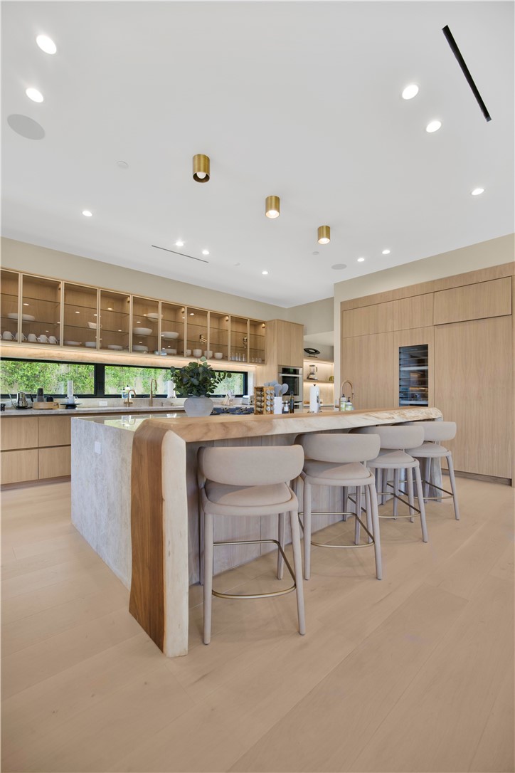 Beamed Ceilings, Wet Bar, Breakfast Bar, Built-in Features, Balcony, Cathedral Ceiling(s), Separate/Formal Dining Room, Granite Counters, High Ceilings, Open Floorplan, Pantry, Stone Counters, Recessed Lighting, Smart Home, Wired for Data, Bar, Wood Product Walls, Wired for Sound, Bedroom on Main Level, Primary Suite, Walk-In Pantry