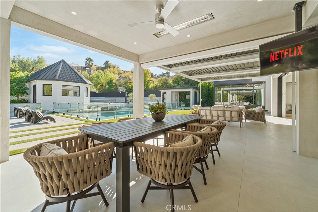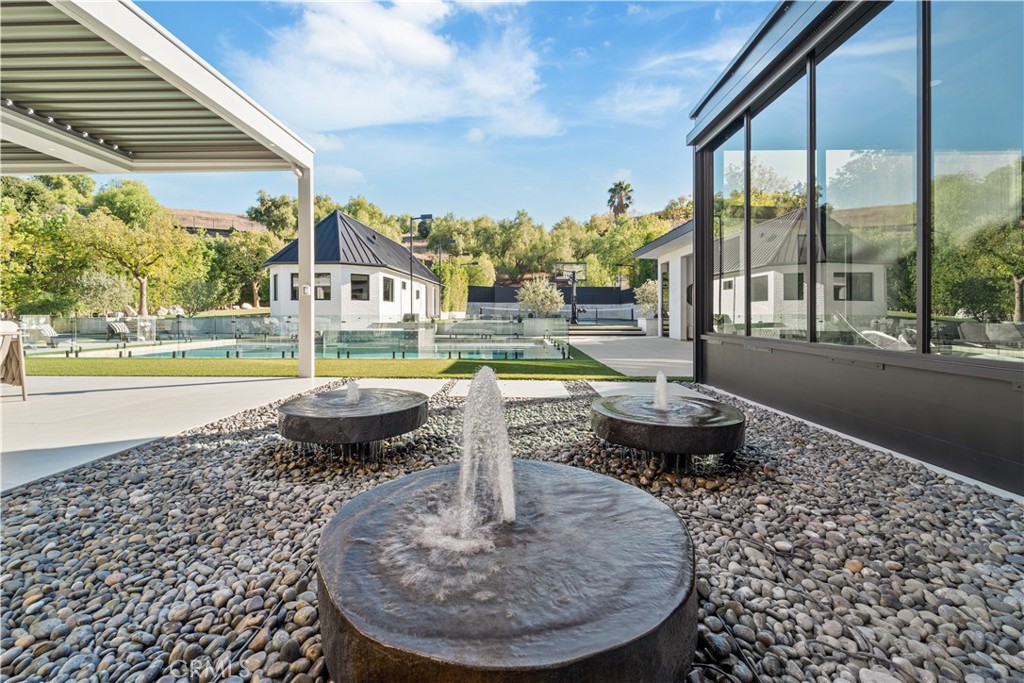 STUNNING LUXURY MANSION SOUTH OF VENTURA (24 HOUR ARMED GUARD GATED COMMUNITY), WESTCHESTER COUNTY home to just 160 residences, this showcase estate redefines modern luxury. Set on nearly one acre and completely reimagined down to the studs in 2023 with over $2 million in recent upgrades, this 10,000+ sq. ft. masterpiece offers an unmatched level of privacy, sophistication, and cutting-edge design. Step inside to soaring cathedral ceilings, Custom Designer Chandeliers, dramatic floor-to-ceiling marble fireplaces, and seamless indoor-outdoor living with automatic pocket doors and Lutron smart home automation controlling lights, shades, TV’s and premium sound (interior/Exterior) throughout. The residence boasts a state-of-the-art security system with interior/exterior cameras, a Control4 system, and a fully soundproof oversized home theater with, Premium Sound Package, massive Upgraded Projector Screen, and a walkout enclosed patio. The chef’s dream kitchen showcases Two 12-foot waterfall islands, a walk-in pantry, 2 Dishwashers, full-size refrigerator & freezer, high-end appliances, and a custom wine display. Upstairs, you’ll find 5 en-suite bedrooms, each with custom cabinetry and walk-in closets. The primary suite impresses with Custom Fireplace, Sitting Area, 2 oversize walk-in Closets 1 that has its own ELEVATOR an Oversize Spa like bathroom with Huge Rainfall Shower, Separate Tub, Vanity Area, and Walk-out balcony overlooking park like grounds. The amenities continue with two laundry rooms, a three-car garage with metallic epoxy floors, and a massive lOFT space ideal for a gym, office, or playroom. Outdoor living rivals a resort with designer Lighting, landscaping, multiple entertaining patios, outdoor grill, cabana, custom glass pool fence, GLASS SPA, putting green, and full-size NCAA basketball court /Tennis Court. Outdoor Shower, A detached guest house provides additional flexibility. A Main Level En-Suite Bedroom perfect for guests. The Ideal Floorplan. This estate offers the perfect blend of modern technology, refined elegance, and resort-style luxury in one of the most coveted gated communities south of Ventura WESTCHESTER ESTATES A TRULY REMARKABLE NEIGHBORHOOD. Like no other, Patrolling armed Guard, Street Surveillance. A true forever dream home and one of the Safest Neighborhoods in LA for the most discerning buyer. UPGRADES SHEET AVAILABLE UPON REQUnutes to the 101, Target, Costco, Topanga Village, Fine Dining, Shops and Restaurants.