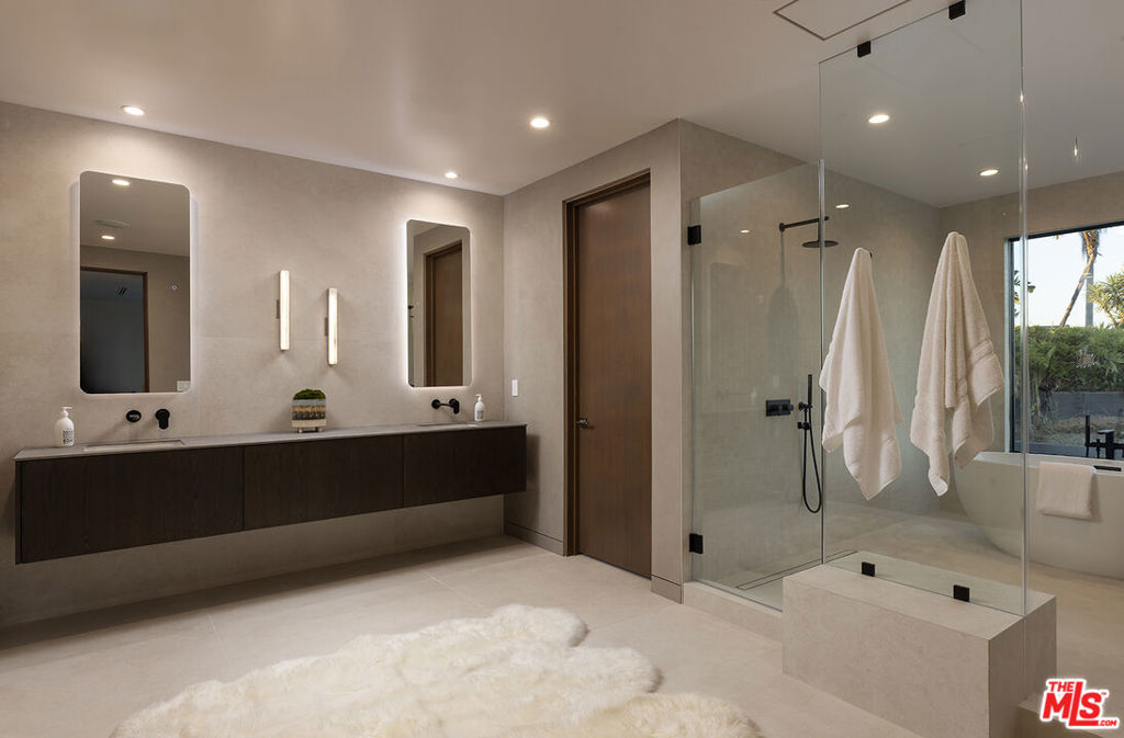 Perched atop one of the highest points in Cheviot Hills, this brand-new contemporary estate, designed and built by Arzuman Brothers, showcases sweeping 270-degree views and architectural sophistication throughout. Set on a 9,779 sq ft lot, this 7-bedroom, 9-bathroom home spans three stories of thoughtfully designed living space. The chef's kitchen features Miele and Thermador appliances, double islands with a breakfast nook, and custom Italian cabinetry all set against the stunning backdrop of the Los Angeles skyline. A butler's pantry completes this elegant, functional space. Upstairs, the spacious primary suite offers a serene daily retreat complete with a private balcony, cozy fireplace, and an enormous walk-in closet. The luxurious ensuite bath features bespoke tilework, a glass-enclosed shower with bench, and a freestanding soaking tub. There are 6 additional bedrooms, all ensuite with high ceilings and generous closets. The lower level offers the ultimate entertainment experience, with natural light cascading through the staircase window onto a spacious recreation area, lounge with seated wet bar, gym with dry sauna and steam room, theater with tiered seating, and two baths. Fully integrated smart-home technology allows effortless control of security cameras, lighting, climate, music, and more. Moments-away access to the Rancho Park Golf Course, Westfield Century City, and just a few miles to the coast.