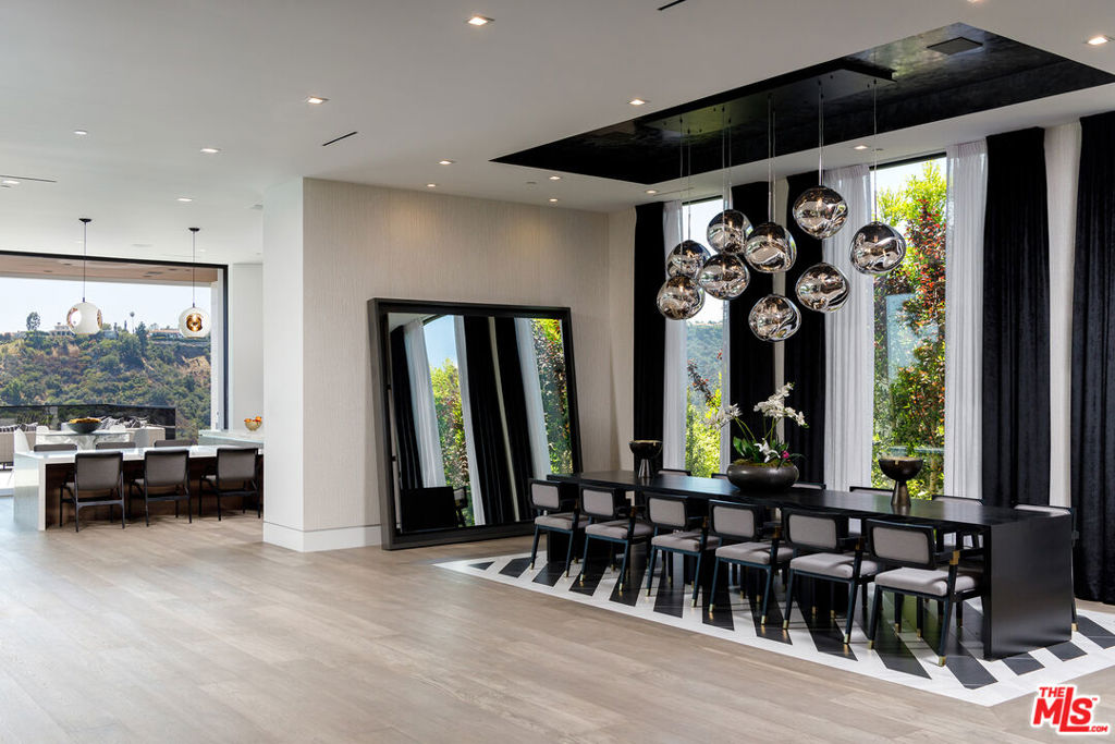 In a premier Bel Air enclave, this warm modern masterpiece by Ramtin Ray Nosrati commands sweeping city, ocean, and canyon views. A grand open floor plan unfolds with bespoke flooring, sculptural lighting, and expansive Fleetwood walls of glass that dissolve into the horizon for seamless indoor-outdoor living. The gourmet kitchen is a study in refinement clad in wood and marble, with top-tier appliances, dual ovens, wine refrigeration, and a generous island with breakfast bar. Just beyond, a glass-bottom infinity pool cascades into a lower-level waterfall, creating a tranquil visual centerpiece. Five-star amenities include a sumptuous primary suite with private terrace, beautifully appointed guest suites, a dual-sided tropical fish aquarium, indoor waterfall, formal dining room, and multiple fireplaces throughout. Gated grounds, lush landscaping, and layered outdoor living spaces ensure privacy and serenity. Designed for the consummate entertainer, the lower level dazzles with a luminous onyx bar, theatre with fiber-optic star ceiling, video wall, fitness studio, and temperature-controlled wine cellar. A rare opportunity to own a true work of art in one of Bel Air's most coveted settings.