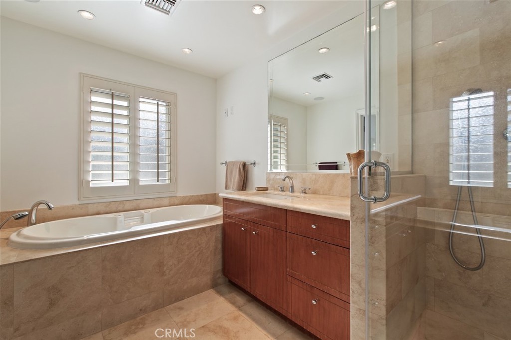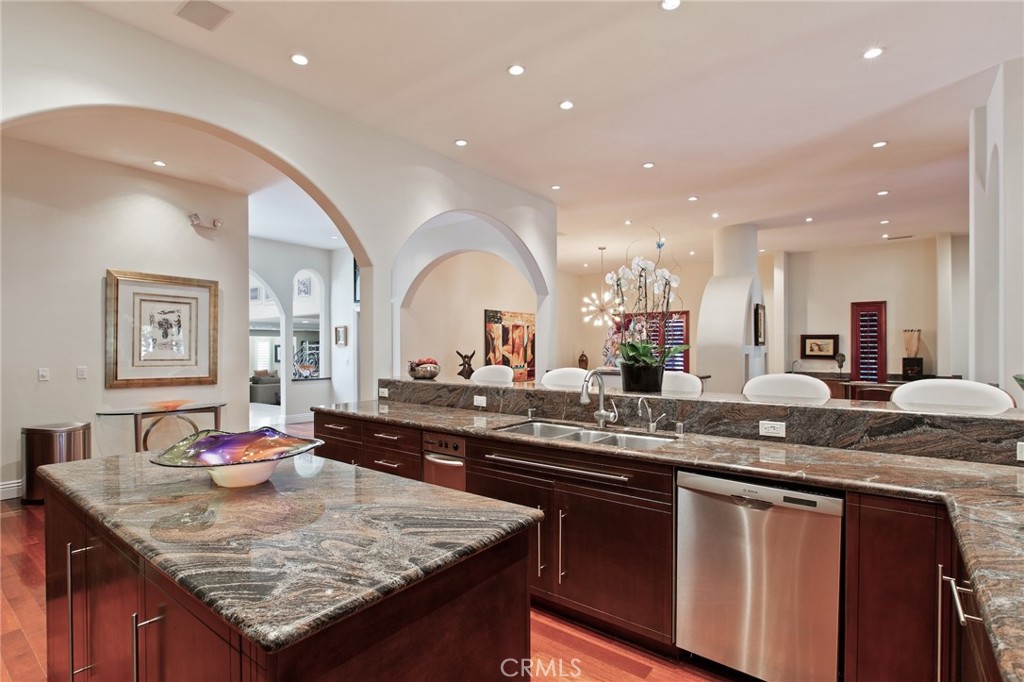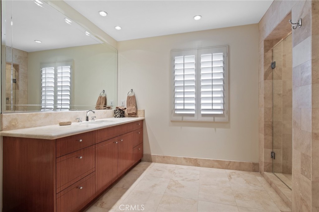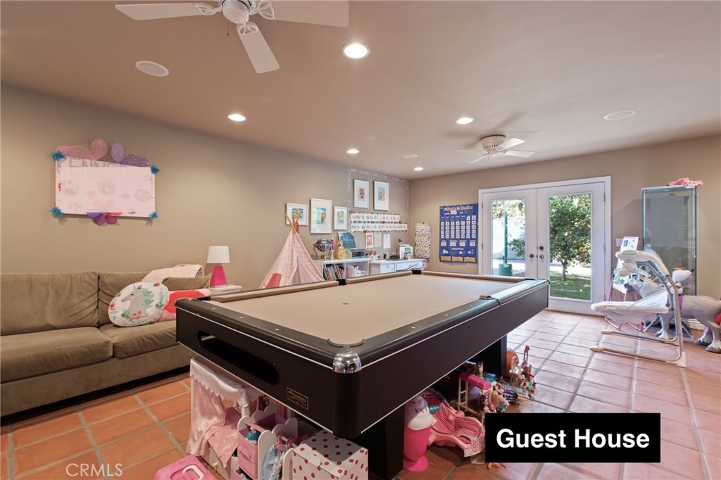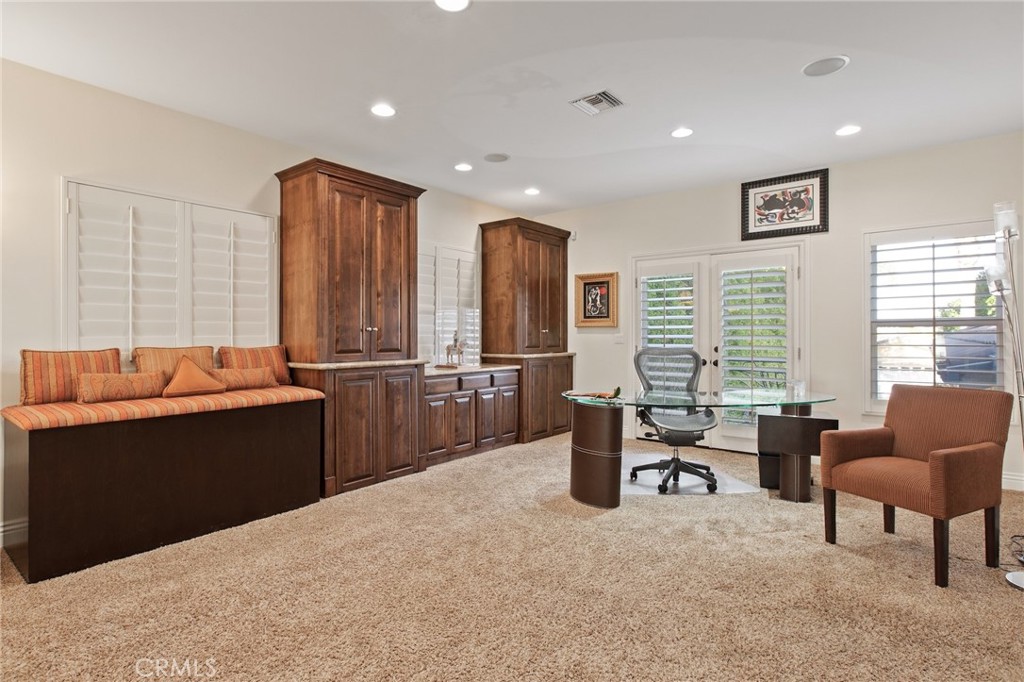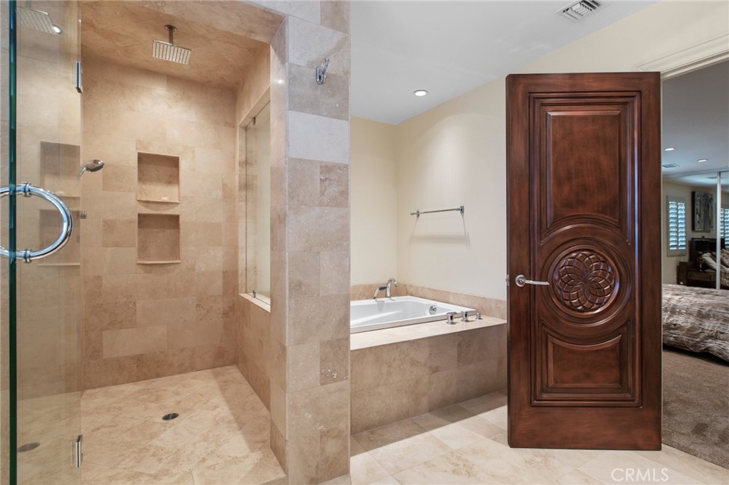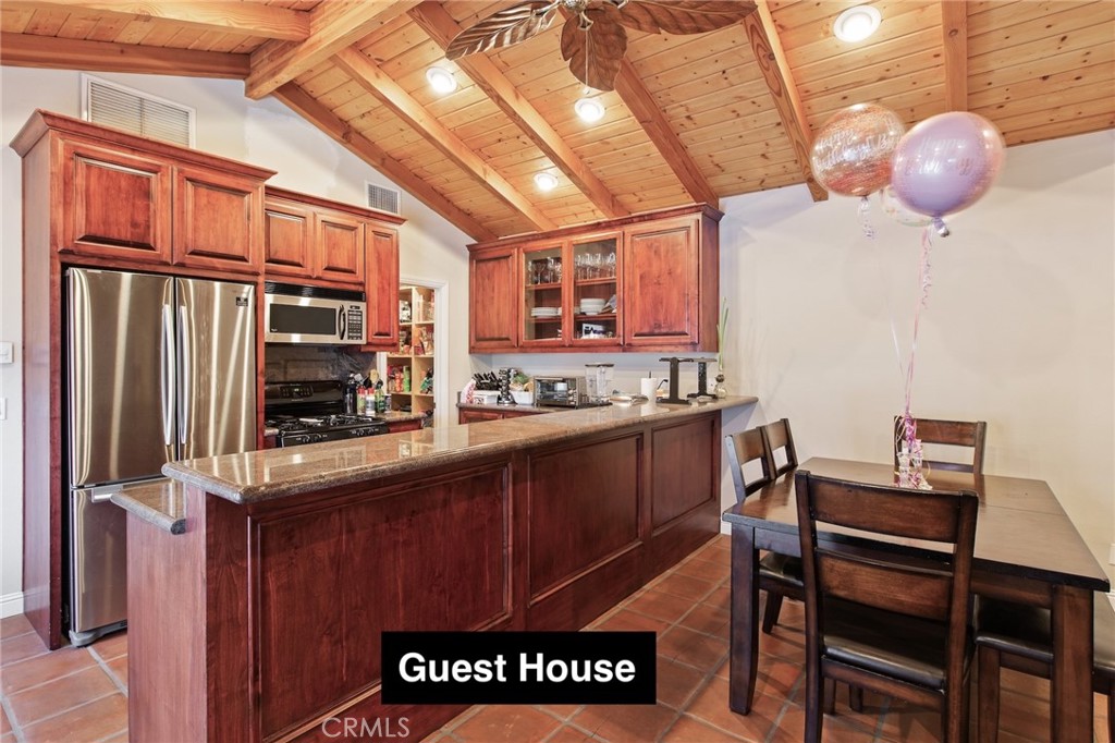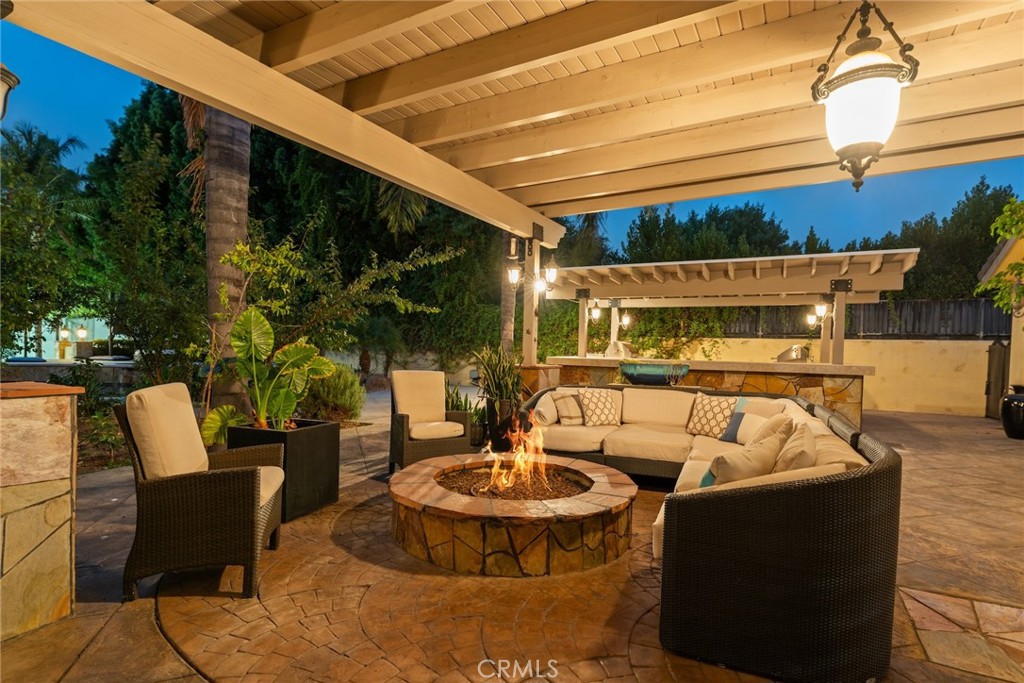 Custom gated Walnut Acres Italian Villa featuring a primarily one level main residence plus a detached oversized guest house situated on an expansive 26,000 SF flat lot. The private estate is secured behind an automatic security gate with separate pedestrian access and lush landscaping including full growth hedging and towering mature palms. The front yard features a sprawling driveway that can accommodate parking for large scale events and RVs/boats with a separate additional long gated driveway that leads to a covered carport and 2-car garage. Step inside to find a completely open concept floor plan with architectural design elements and designer finishes. A massive grand entry foyer with soaring ceiling and skylight basks the space with wonderful natural light. The foyer opens to a large great room with French doors that open to the backyard. Separate sitting and family rooms share a double-sided fireplace and wet bar. The vast chef’s kitchen is highlighted by a “sushi bar” inspired wraparound countertop peninsula and boasts Sub Zero 36” column fridge & freezer and Viking range with double ovens & 6-burner grill + griddle. The formal dining room has built-in storage cabinetry and French doors that open to the yard. A separate living room off the entry features fireplace, built-ins, and a second wet bar. The entire second level is dedicated to a luxurious primary suite featuring an enormous bedroom with sitting room/office, wet bar, fireplace, front & back balconies, large walk-in closet, storage room with laundry hookups, and spa-like bathroom with dual sinks, steam shower, spa tub, & toilet room. The home truly lives like a one story featuring 4 well appointed bedrooms downstairs including a first level primary suite with en-suite bathroom with walk-in shower and separate spa tub. First floor also has a guest powder bath and second laundry room. The entertainer’s backyard is a true oasis featuring beach entry pebble pool & spa, large covered patio with fire pit, separate outdoor kitchen with two BBQ grills, lighted sports court with two basketball hoops, and lushly landscaped grounds with lawns, fruit trees, & mature palms. The 1 bed, 1 bath guest house features living room with vaulted wood beamed ceiling and fireplace, full kitchen, and separate gym/bonus/game room. Total SF includes guest house. Paid off Solar panels! Adjacent to Westfield Mall/Village, Calabasas Commons, Warner Center & zoned for award-winning El Camino & Hale charter schools.