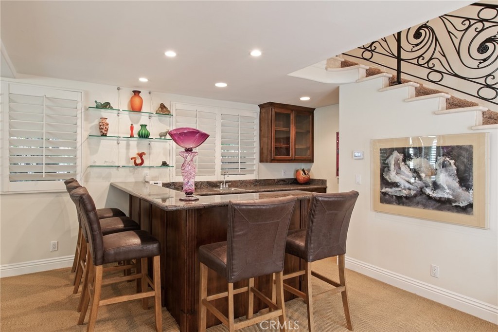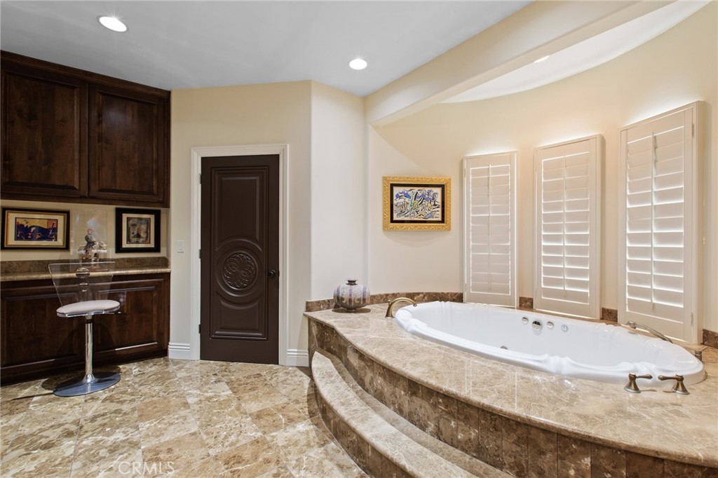 Wet Bar, Breakfast Bar, Built-in Features, Balcony, Breakfast Area, Separate/Formal Dining Room, High Ceilings, Open Floorplan, Pantry, Stone Counters, Recessed Lighting, Storage, Bar, Bedroom on Main Level, Entrance Foyer, Main Level Primary, Multiple Primary Suites, Walk-In Closet(s)