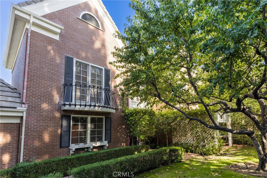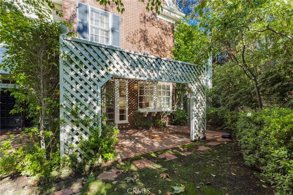 This exceptional 3-bedroom, 4-bathroom 4,018 square foot corner townhome delivers resort-style living in the highly desirable guard-gated Ridge area of Mountain Gate in Brentwood Hills. Located in a very secluded area with 24 hr. security and unmatched serenity. Stanley Kramer, American Film Director, was the original owner of this property set behind a private iron gate with a beautiful courtyard offering complete privacy with only one common wall. This lavish home boasts a formal entry, dramatic staircase, expansive living room with fireplace, wet bar, soaring vaulted ceilings, floor-to-ceiling luminous windows, and elegant French doors displaying a well-manicured wrap-around yard and patios that are perfect for entertaining or quiet relaxation in a zen-like atmosphere with mature trees and koi pond. Spacious eat-in kitchen featuring Miele refrigerator, Wolf dual-convection ovens, Bosch dishwasher, two walk-in pantries and center island. The kitchen has easy access to the formal dining and living areas. One bedroom with ensuite bathroom is conveniently located on the first floor. Additional highlights include a library with fireplace and its own private patio, a dedicated laundry room and a double-attached garage with direct access to the home. Upstairs, retreat to an over-sized luxurious primary suite with a sitting area and a private Juliet balcony with tree-lined views. A huge spa-like bath offers a soaking tub, dual vanities, and a separate shower and bidet. Separately located upstairs is a private 2nd bedroom that has easy access to a full bath. The HOA includes community Pool/Spa, Trash Valet, exterior EQ and Fire Insurance as well as roof coverage. You will have the option to join Mountain Gate Country Club that offers golf, tennis, spa and dining. Easy 405 Freeway access, shopping, dining & spectacular hiking trails. Enjoy the tranquil, resort-like lifestyle and make this stunning colonial-style home yours. Call for a private showing.