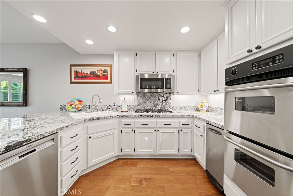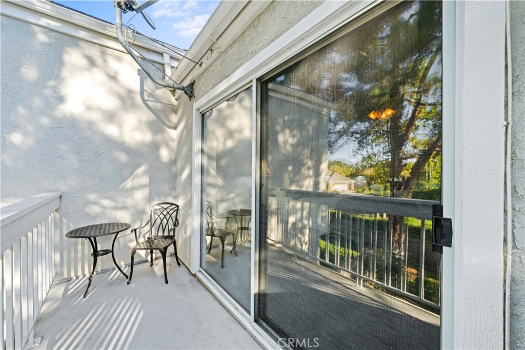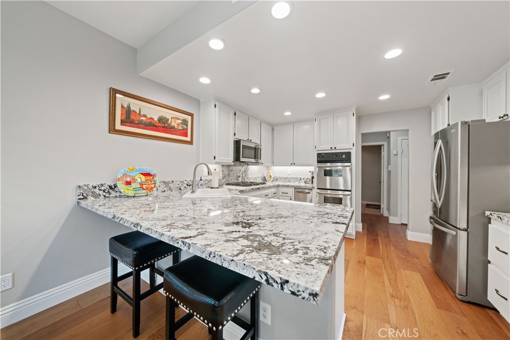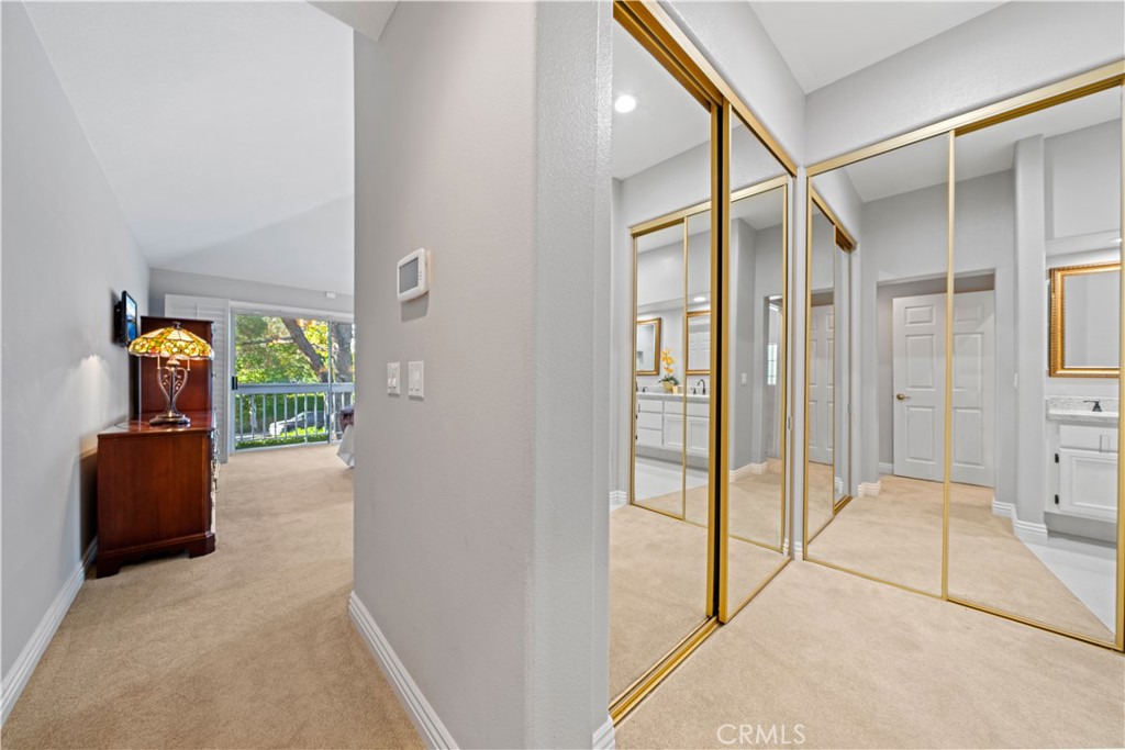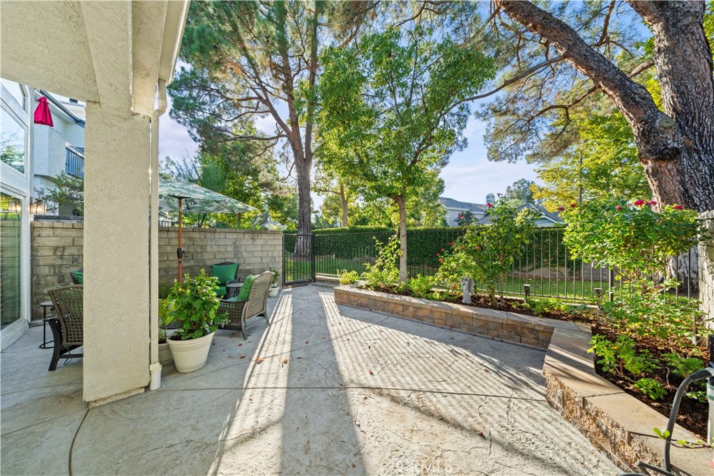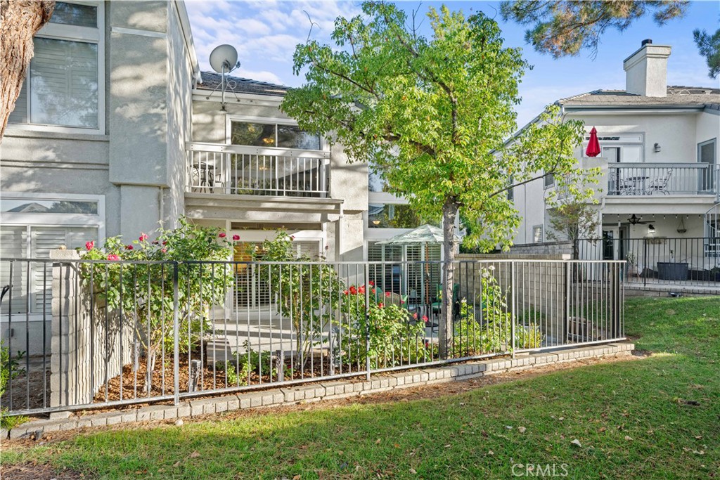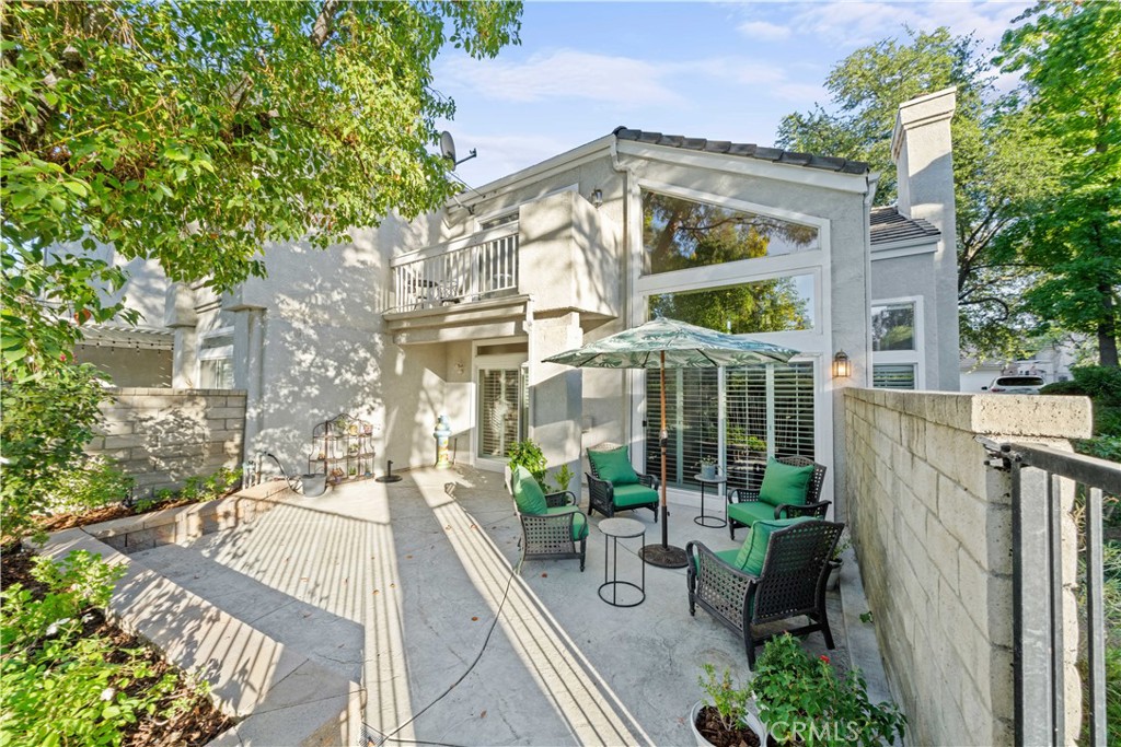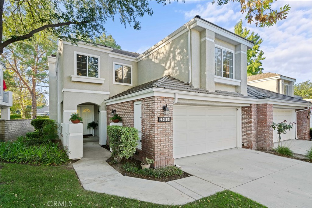 Welcome to luxury living in the prestigious Stratford gated community within the exquisite Valencia Summit. This stunning townhome is a haven of elegance and comfort, boasting upscale features and finishes that truly set it apart. Upon arrival, you are greeted by a double entry door that beckons you into a world of refined living. Step into the foyer, and from there, descend gracefully into the expansive living room. Sunlight pours in, filling the room with warmth and radiance, accentuating the French oak wide plank wood floors that seamlessly flow throughout the lower level. The heart of the home is a culinary enthusiast's dream. The upgraded kitchen showcases gleaming granite countertops, paired with an oversized bar counter, perfect for entertaining guests or enjoying a casual breakfast. LED lighting accents the space, and top-of-the line appliances include a GE Profile double oven, a six burner Viking range, Bosch dishwasher and a Cafe Venting microwave. Just beyond the kitchen is a cozy eating area that provides a delightful backdrop for your daily meals. Venturing upstairs, you'll discover an expansive floor plan offering two spacious bedrooms, each radiating a sense of serenity. There is also an option to transform the loft which graciously overlooks the living room into the third bedroom. The primary bedroom is a true retreat, featuring a private balcony where you can unwind and relish-in the idyllic California weather. The updated primary bathroom exudes luxury with its separate tub and shower, offering a spa-like experience right at home. The recent addition of Shaw carpet upstairs ensures a plush and comfortable atmosphere throughout. Elegance is further reflected in the details, with Plantation shutters adorning the windows and six-inch baseboards encasing the floors. The entire home has been freshly painted, bathrooms received tasteful updates, LED lighting installed in the kitchen and the loft which keeps the ambiance modern, while mirrored wardrobe doors in the bedrooms add a touch of sophistication. Outside, a stamped concrete patio and stone planter provide the perfect back drop creating a charming space to savor the Valencia evening. HOA amenities include several private pools, spas, tennis courts, clubhouses, BBQ areas, playground, and common grounds maintenance. The paseo accesses the parks, and the Santa Clarita trail network so you can walk or bike for miles. Nearby shopping, restaurants, schools, and just minutes from the freeway.
