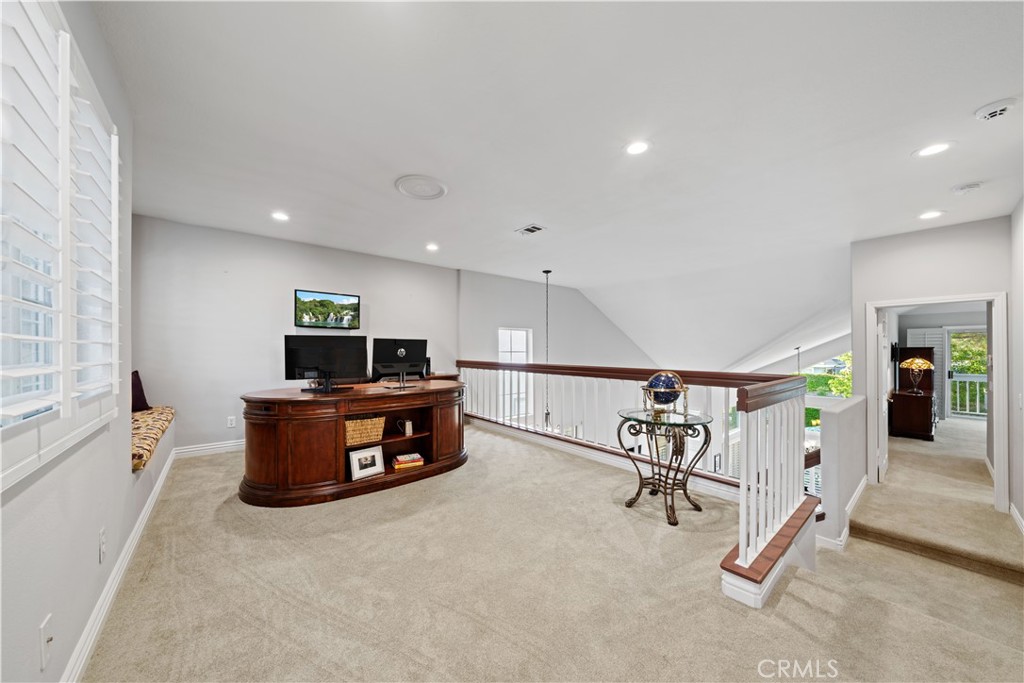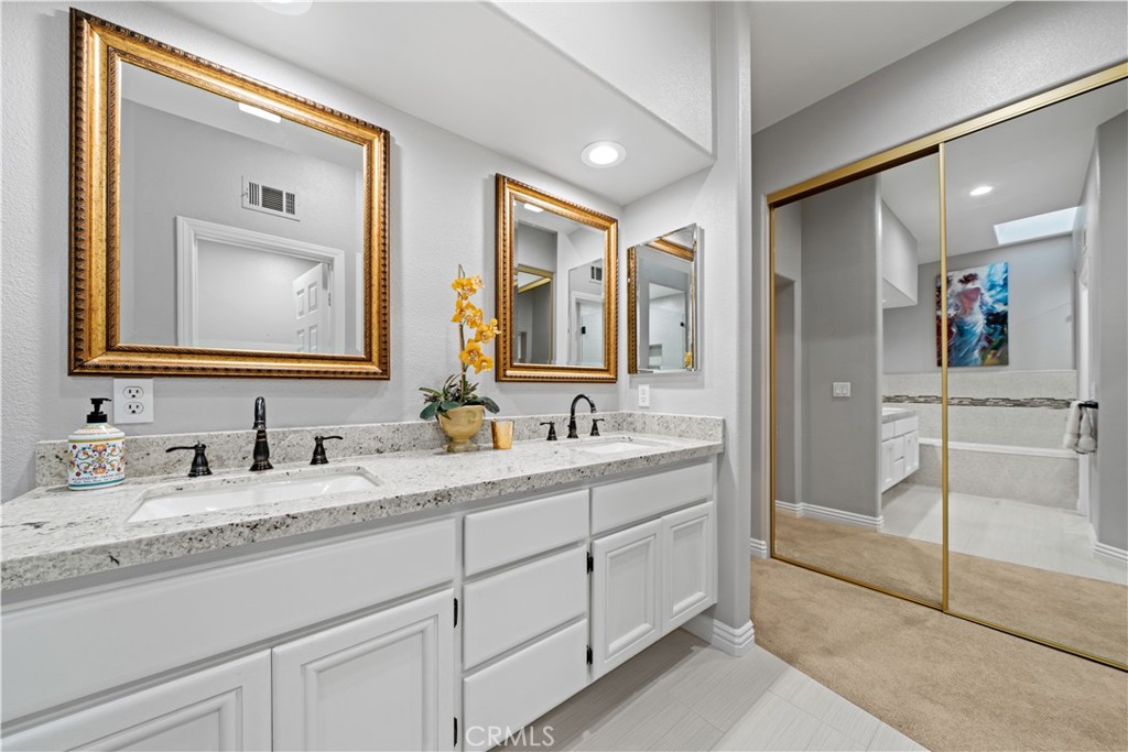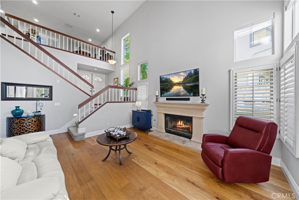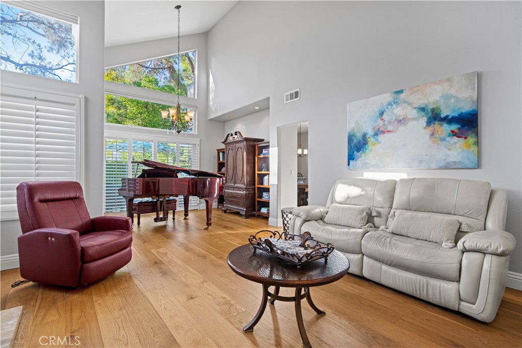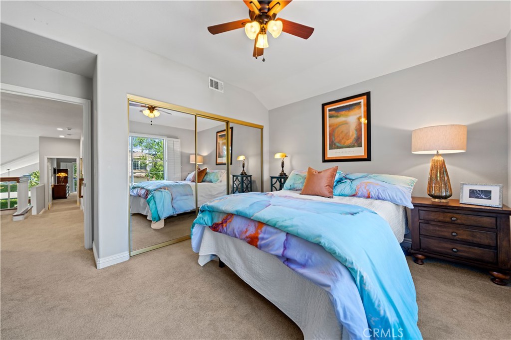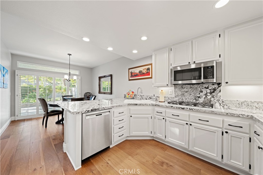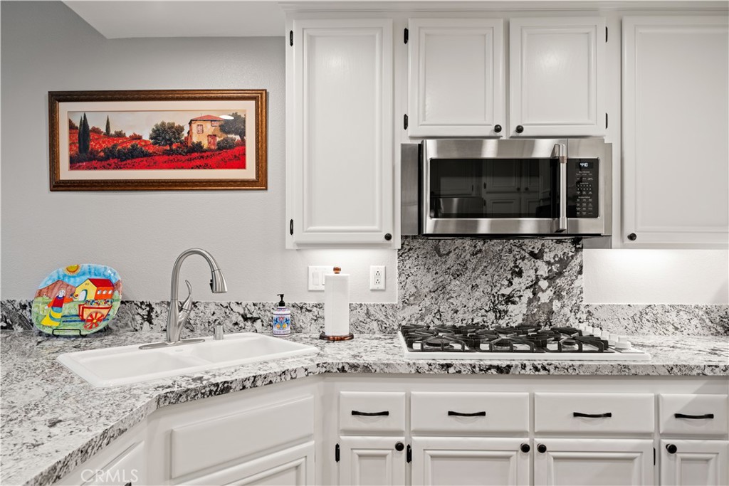 Welcome to luxury living in the prestigious Stratford gated community within the exquisite Valencia Summit. This stunning townhome is a haven of elegance and comfort, boasting upscale features and finishes that truly set it apart. Upon arrival, you are greeted by a double entry door that beckons you into a world of refined living. Step into the foyer, and from there, descend gracefully into the expansive living room. Sunlight pours in, filling the room with warmth and radiance, accentuating the French oak wide plank wood floors that seamlessly flow throughout the lower level. The heart of the home is a culinary enthusiast's dream. The upgraded kitchen showcases gleaming granite countertops, paired with an oversized bar counter, perfect for entertaining guests or enjoying a casual breakfast. LED lighting accents the space, and top-of-the line appliances include a GE Profile double oven, a six burner Viking range, Bosch dishwasher and a Cafe Venting microwave. Just beyond the kitchen is a cozy eating area that provides a delightful backdrop for your daily meals. Venturing upstairs, you'll discover an expansive floor plan offering two spacious bedrooms, each radiating a sense of serenity. There is also an option to transform the loft which graciously overlooks the living room into the third bedroom. The primary bedroom is a true retreat, featuring a private balcony where you can unwind and relish-in the idyllic California weather. The updated primary bathroom exudes luxury with its separate tub and shower, offering a spa-like experience right at home. The recent addition of Shaw carpet upstairs ensures a plush and comfortable atmosphere throughout. Elegance is further reflected in the details, with Plantation shutters adorning the windows and six-inch baseboards encasing the floors. The entire home has been freshly painted, bathrooms received tasteful updates, LED lighting installed in the kitchen and the loft which keeps the ambiance modern, while mirrored wardrobe doors in the bedrooms add a touch of sophistication. Outside, a stamped concrete patio and stone planter provide the perfect back drop creating a charming space to savor the Valencia evening. HOA amenities include several private pools, spas, tennis courts, clubhouses, BBQ areas, playground, and common grounds maintenance. The paseo accesses the parks, and the Santa Clarita trail network so you can walk or bike for miles. Nearby shopping, restaurants, schools, and just minutes from the freeway.