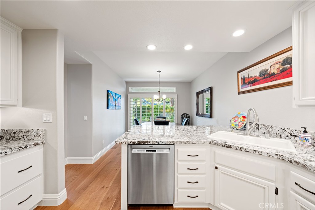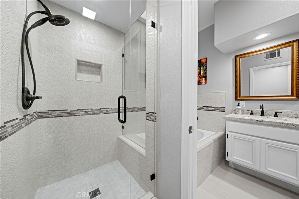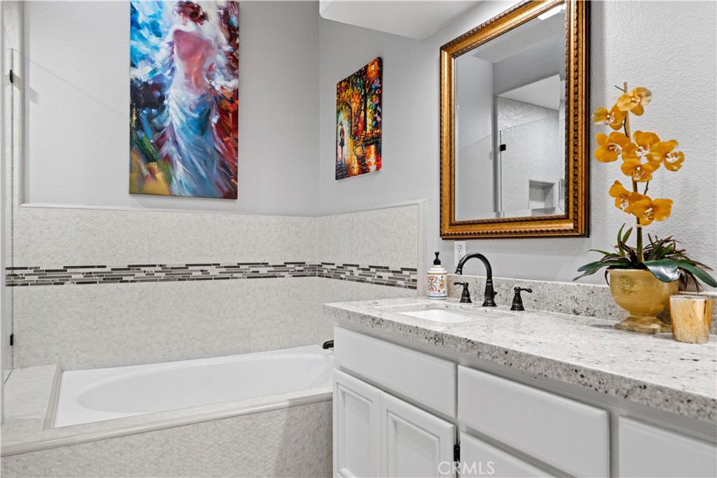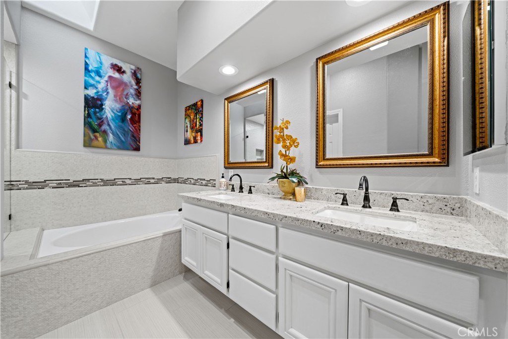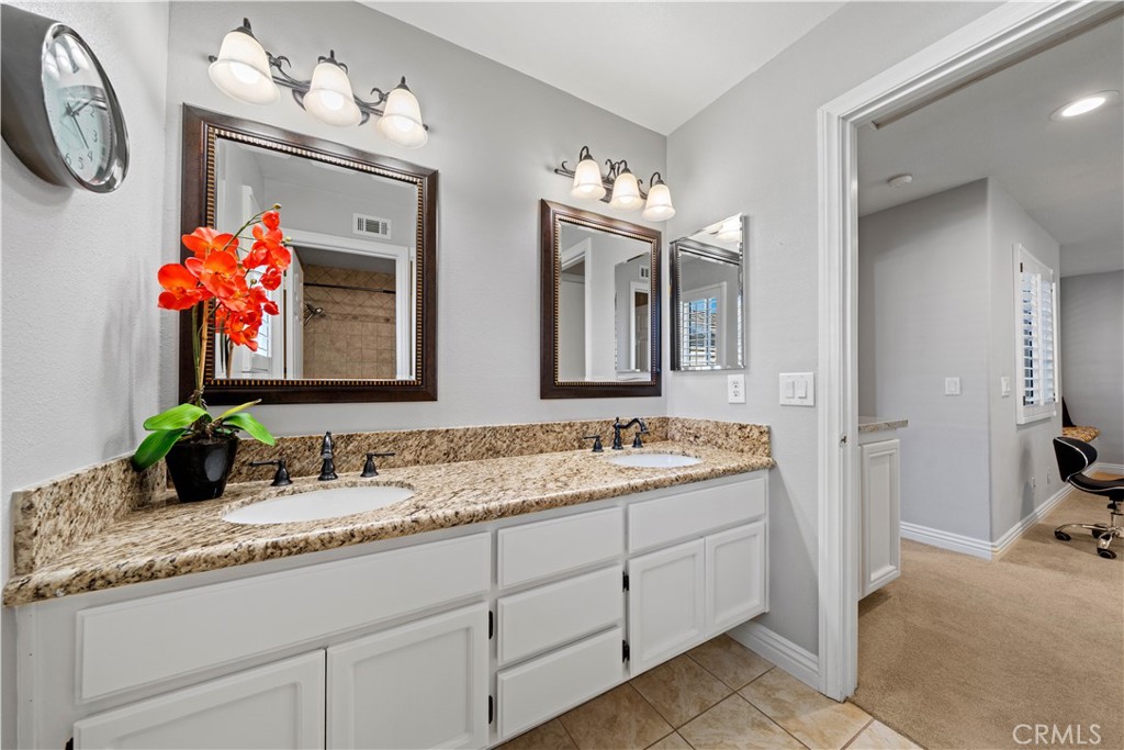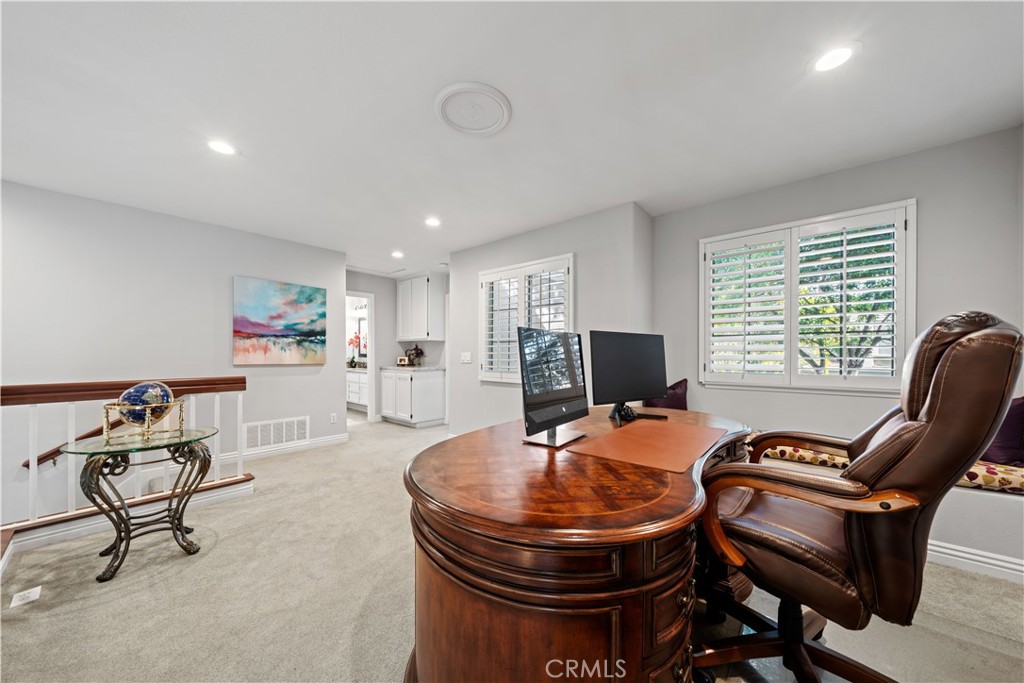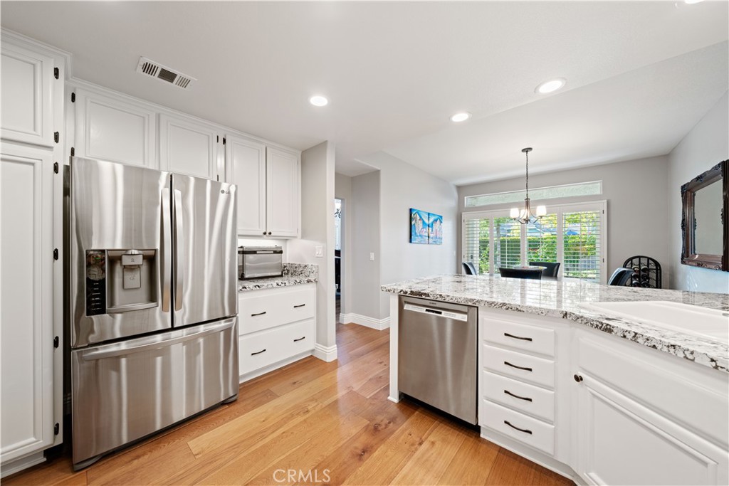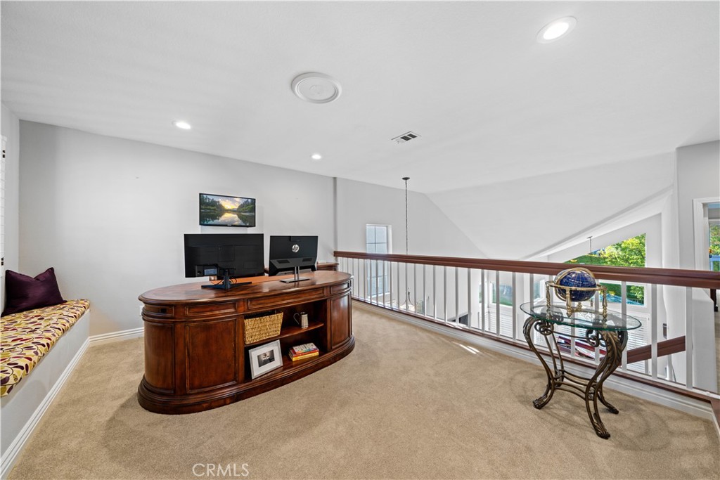 Welcome to luxury living in the prestigious Stratford gated community within the exquisite Valencia Summit. This stunning townhome is a haven of elegance and comfort, boasting upscale features and finishes that truly set it apart. Upon arrival, you are greeted by a double entry door that beckons you into a world of refined living. Step into the foyer, and from there, descend gracefully into the expansive living room. Sunlight pours in, filling the room with warmth and radiance, accentuating the French oak wide plank wood floors that seamlessly flow throughout the lower level. The heart of the home is a culinary enthusiast's dream. The upgraded kitchen showcases gleaming granite countertops, paired with an oversized bar counter, perfect for entertaining guests or enjoying a casual breakfast. LED lighting accents the space, and top-of-the line appliances include a GE Profile double oven, a six burner Viking range, Bosch dishwasher and a Cafe Venting microwave. Just beyond the kitchen is a cozy eating area that provides a delightful backdrop for your daily meals. Venturing upstairs, you'll discover an expansive floor plan offering two spacious bedrooms, each radiating a sense of serenity. There is also an option to transform the loft which graciously overlooks the living room into the third bedroom. The primary bedroom is a true retreat, featuring a private balcony where you can unwind and relish-in the idyllic California weather. The updated primary bathroom exudes luxury with its separate tub and shower, offering a spa-like experience right at home. The recent addition of Shaw carpet upstairs ensures a plush and comfortable atmosphere throughout. Elegance is further reflected in the details, with Plantation shutters adorning the windows and six-inch baseboards encasing the floors. The entire home has been freshly painted, bathrooms received tasteful updates, LED lighting installed in the kitchen and the loft which keeps the ambiance modern, while mirrored wardrobe doors in the bedrooms add a touch of sophistication. Outside, a stamped concrete patio and stone planter provide the perfect back drop creating a charming space to savor the Valencia evening. HOA amenities include several private pools, spas, tennis courts, clubhouses, BBQ areas, playground, and common grounds maintenance. The paseo accesses the parks, and the Santa Clarita trail network so you can walk or bike for miles. Nearby shopping, restaurants, schools, and just minutes from the freeway.