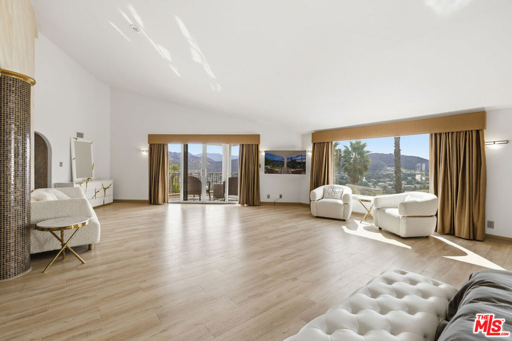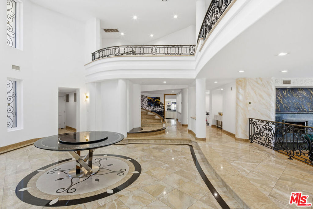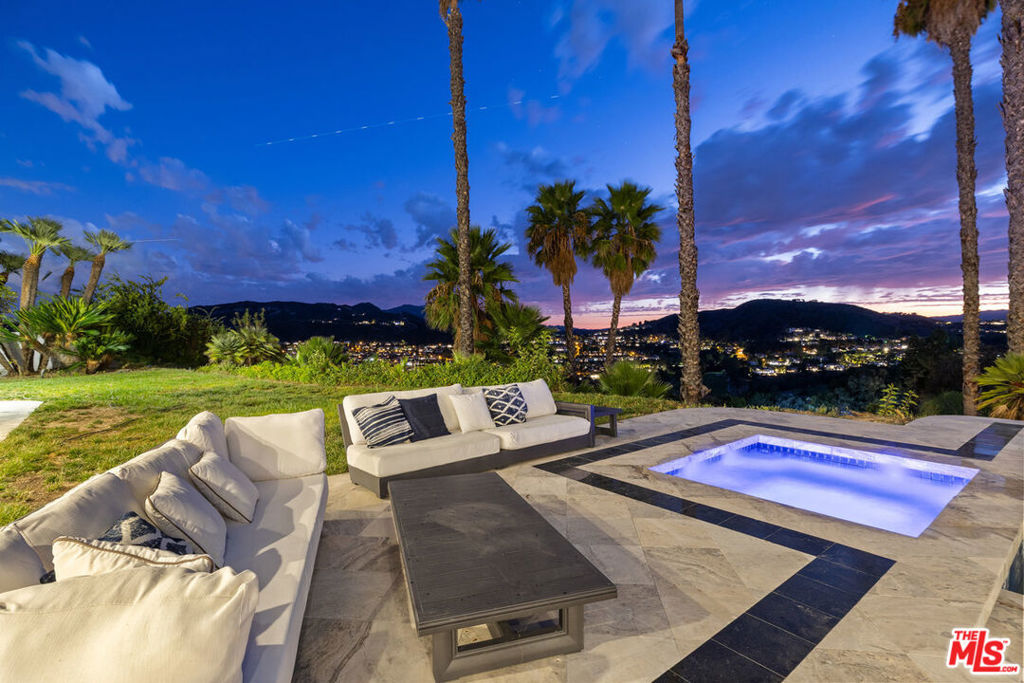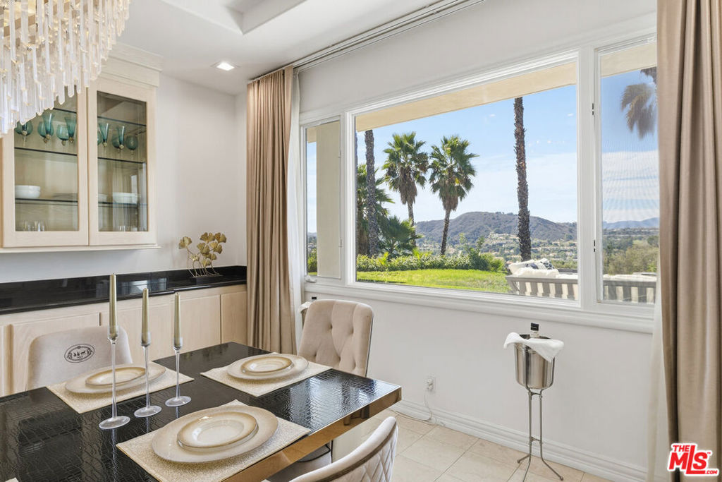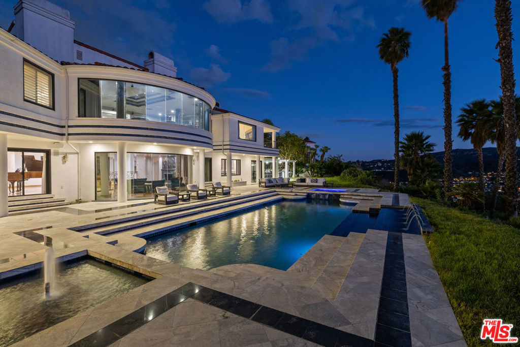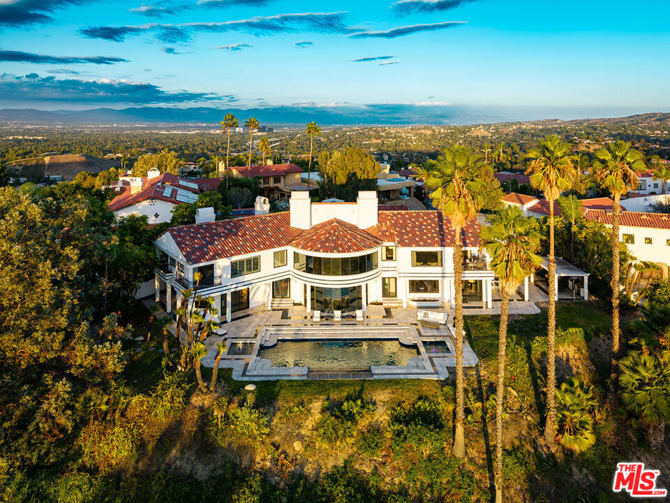 Welcome to the Pinnacle of Calabasas Living. Set high above the Calabasas Country Club in the prestigious guard-gated community of Vista Point, this custom-built showpiece offers a rare combination of scale, design, & presence. Spanning 10,452 square feet of refined living space plus a 1,725-square-foot showroom-style garage, this home is a true entertainer's dream a place where architecture & artistry meet panoramic perfection. From the moment you enter the grand foyer, soaring ceilings & marble floors set a tone of timeless sophistication. Expansive arched windows frame breathtaking, infinite views of sunsets, city lights, & rolling hills, creating a seamless connection between indoor luxury & outdoor beauty. The layout is designed for both grand entertaining and comfortable living, featuring 5 ensuite bedrooms - 3 with private sitting areas & balconies, private office with outdoor access & stunning views, home theater with its own patio, bar, & full bathroom; One of a kind game room with full bar, arched windows that soak in the views, formal dining room, living room, & family room all designed to capture natural light & panoramic vistas, gourmet kitchen with custom cabinetry, stonework, & expansive prep & dining area. The primary suite is a sanctuary unto itself complete with fireplace, private balcony, spa-inspired bath, steam shower, & walk-in closets. Outside, the resort-style grounds feature a sparkling pool with multiple fountains, a tranquil koi/ turtle pond, covered outdoor dining area with BBQ, & multiple spaces perfect for gathering or quiet reflection. Set on an 18,000+ sq. ft. lot at the end of a cul-de-sac, this estate offers privacy, serenity, & truly infinite views a daily front-row seat to the beauty of Calabasas sunsets. Some homes are designed to impress. This one is designed to inspire. Experience what true luxury feels like. Welcome home to Vista Point.