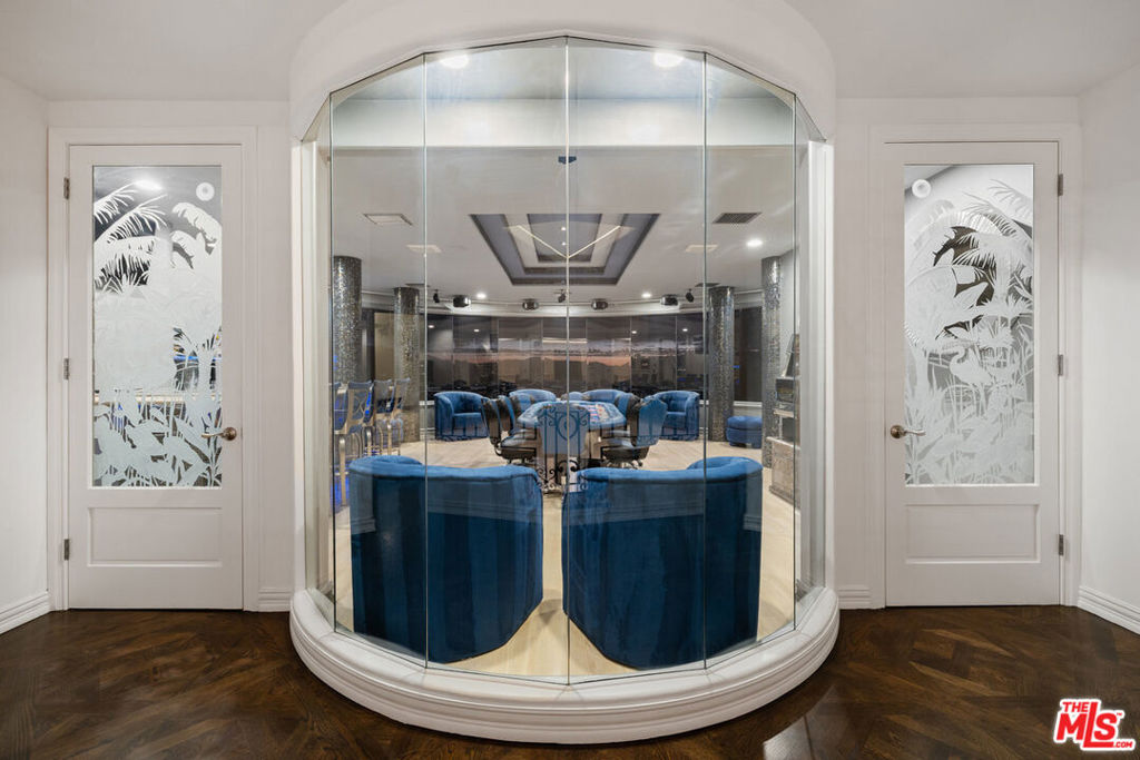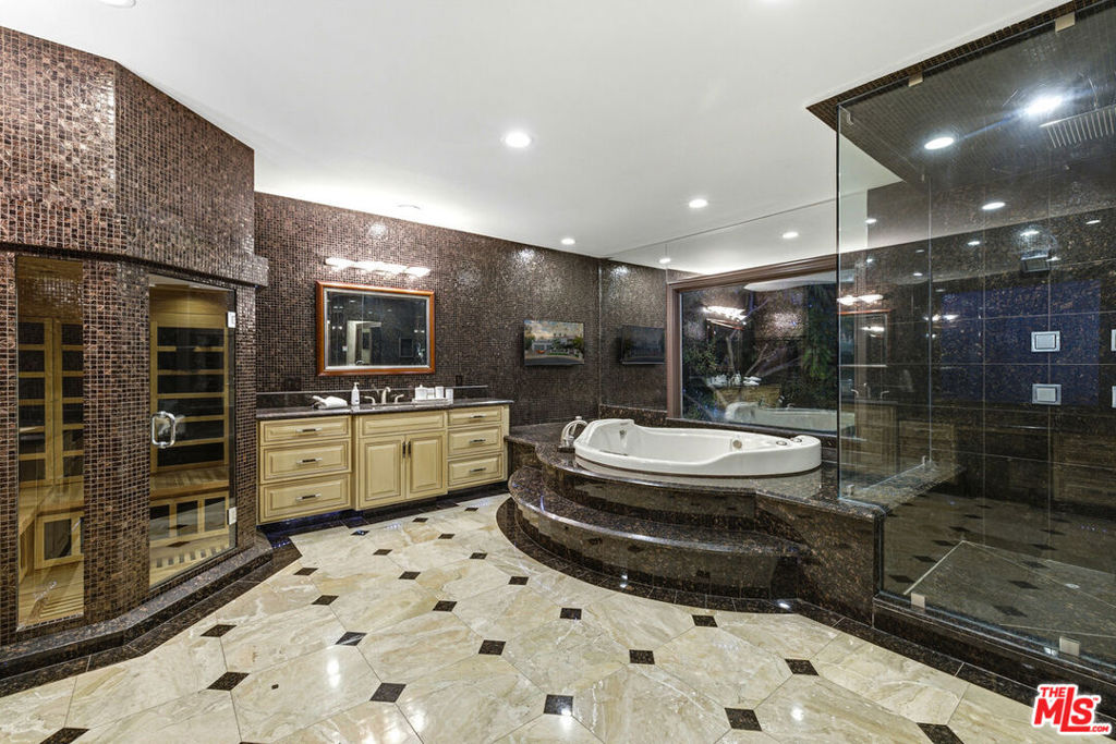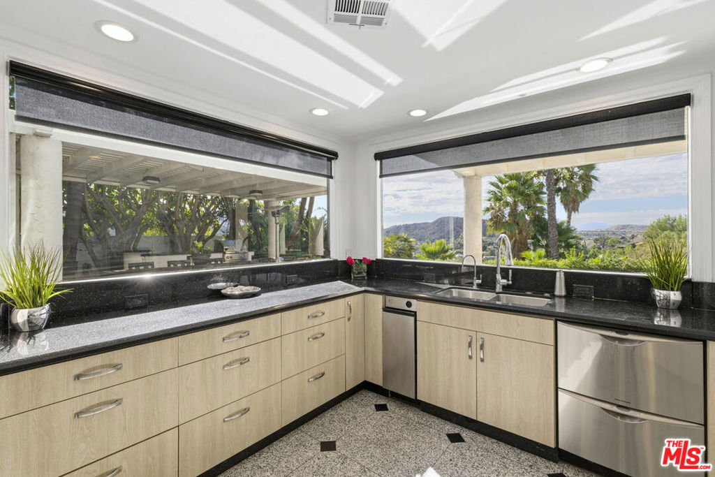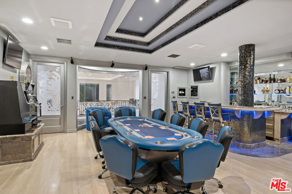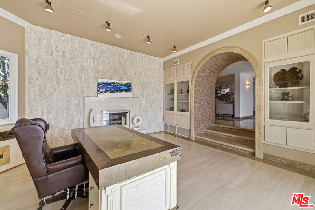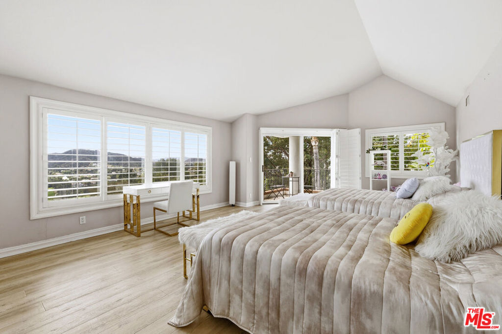 Welcome to the Pinnacle of Calabasas Living. Set high above the Calabasas Country Club in the prestigious guard-gated community of Vista Point, this custom-built showpiece offers a rare combination of scale, design, & presence. Spanning 10,452 square feet of refined living space plus a 1,725-square-foot showroom-style garage, this home is a true entertainer's dream a place where architecture & artistry meet panoramic perfection. From the moment you enter the grand foyer, soaring ceilings & marble floors set a tone of timeless sophistication. Expansive arched windows frame breathtaking, infinite views of sunsets, city lights, & rolling hills, creating a seamless connection between indoor luxury & outdoor beauty. The layout is designed for both grand entertaining and comfortable living, featuring 5 ensuite bedrooms - 3 with private sitting areas & balconies, private office with outdoor access & stunning views, home theater with its own patio, bar, & full bathroom; One of a kind game room with full bar, arched windows that soak in the views, formal dining room, living room, & family room all designed to capture natural light & panoramic vistas, gourmet kitchen with custom cabinetry, stonework, & expansive prep & dining area. The primary suite is a sanctuary unto itself complete with fireplace, private balcony, spa-inspired bath, steam shower, & walk-in closets. Outside, the resort-style grounds feature a sparkling pool with multiple fountains, a tranquil koi/ turtle pond, covered outdoor dining area with BBQ, & multiple spaces perfect for gathering or quiet reflection. Set on an 18,000+ sq. ft. lot at the end of a cul-de-sac, this estate offers privacy, serenity, & truly infinite views a daily front-row seat to the beauty of Calabasas sunsets. Some homes are designed to impress. This one is designed to inspire. Experience what true luxury feels like. Welcome home to Vista Point.