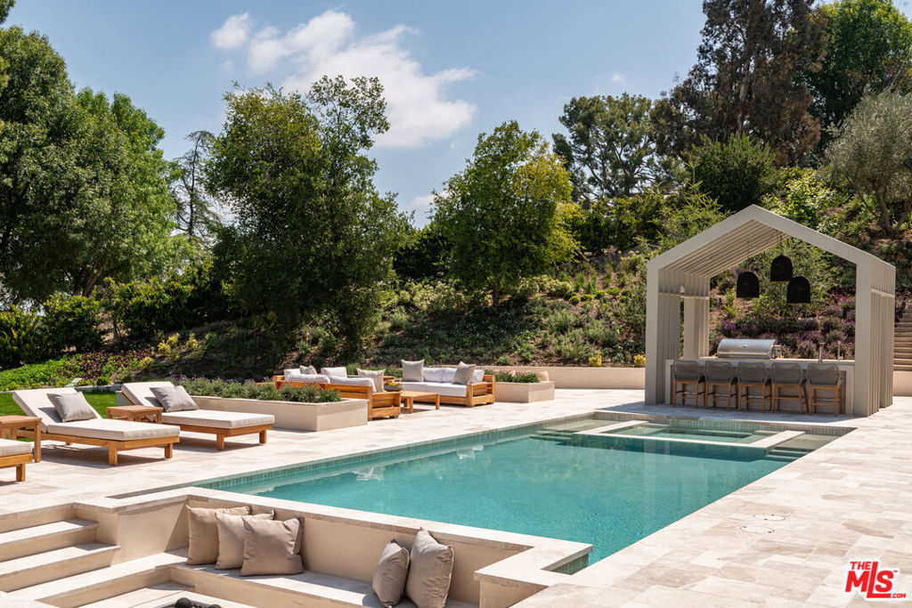 A modern tranquil chalet hidden in the hills of California. Unveiled as a paragon of contemporary architecture and refined design, 24172 Lupin Hill Road emerges as a newly constructed estate nestled within the prestigious, guard-gated community of Hidden Hills. An inspired collaboration of design and craftsmanship, this nearly 11,000-square-foot estate with a 4-car-garage is a rare offering that captures the essence of luxurious interiors and the laid-back beauty of California living. Set behind grand double gates and approached by a long, private driveway framed by majestic landscaping and a roundabout motor court, this architectural tour de force is the epitome of seclusion and elegance. Every inch of the home speaks to intentional design and elevated living. Inside, a vast open floor plan unfolds beneath soaring ceilings, blending form and function with the use of natural stone, organic textures, and exquisite custom finishes throughout. Anchoring the estate is an oversized dedicated dining area, perfect for hosting grand-scale gatherings, and a striking library-office pairing that redefines luxury work-from-home environments. A four-car garage offers ample room for collectors and convenience, while the wellness wing transports residents into a sanctuary of rejuvenation. Here, a spacious wellness and fitness room complemented by a cold plunge stone tub beneath the open sky, inviting daily rituals of health and vitality. The primary suite is a true sanctuary featuring dual walk-in closets of generous scale and a spa-worthy bathroom that rivals the finest hotels, complete with a sculptural stone soaking tub oriented toward sweeping canyon and hillside views. For ultimate functionality and guest privacy, a beautifully appointed poolside guest house expands the estate's living quarters, ideal for hosting in effortless style. Indoor and outdoor boundaries dissolve as walls of glass frame the estate's manicured grounds, where curated landscape design meets breathtaking natural surroundings. Every detail from materiality to flow has been crafted to offer an immersive living experience that is both grounded in nature and boldly luxurious. More than a residence, 24172 Lupin Hill Road is a private sanctuary, a design statement, and a legacy in the making a new benchmark for the traditional-modern living in Hidden Hills. Also offered for Lease, presenting a rare opportunity to experience this exceptional estate.