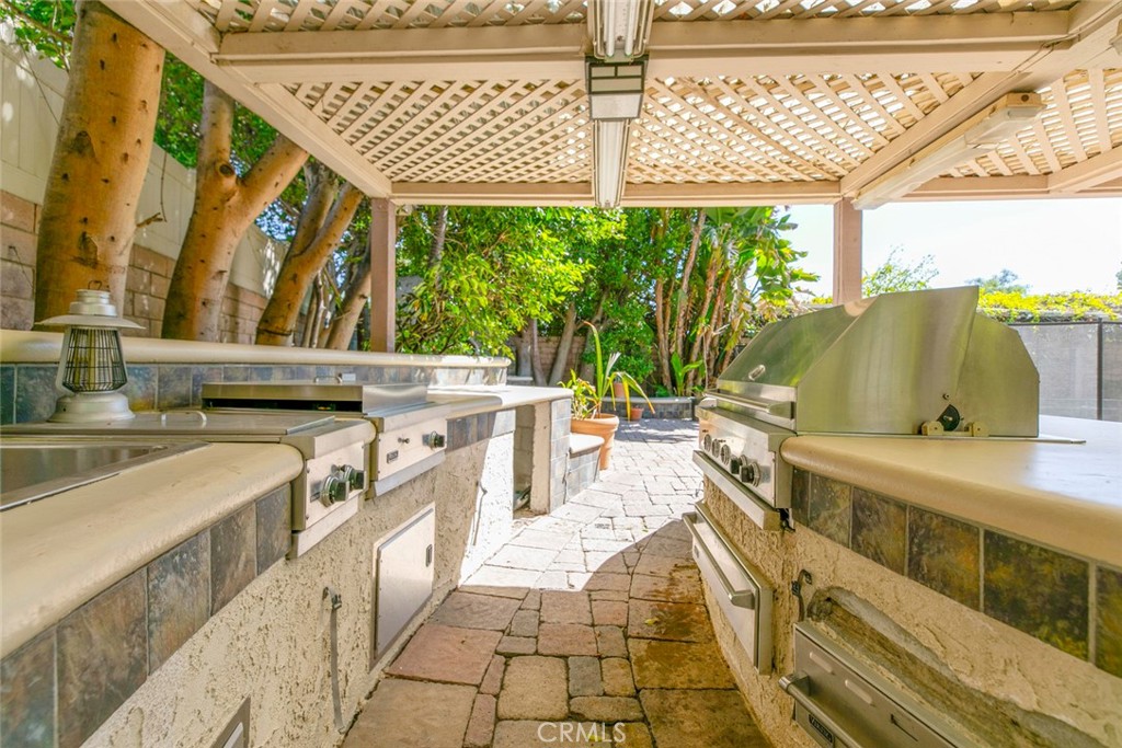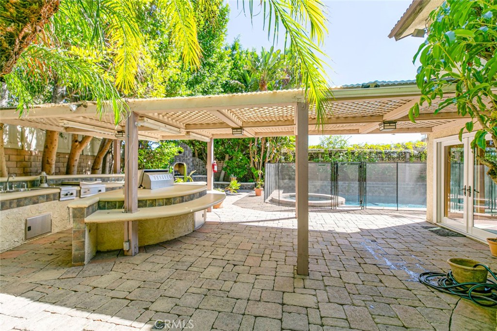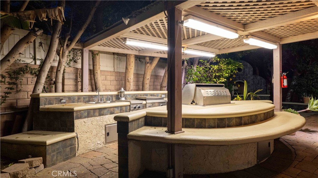 The entertainer’s backyard is pure California living — with a sparkling pool and water fountain, built-in BBQ, outdoor fireplace, paved patio, and vibrant landscaping. A ready-to-build outdoor bath with active permit offers even more potential.