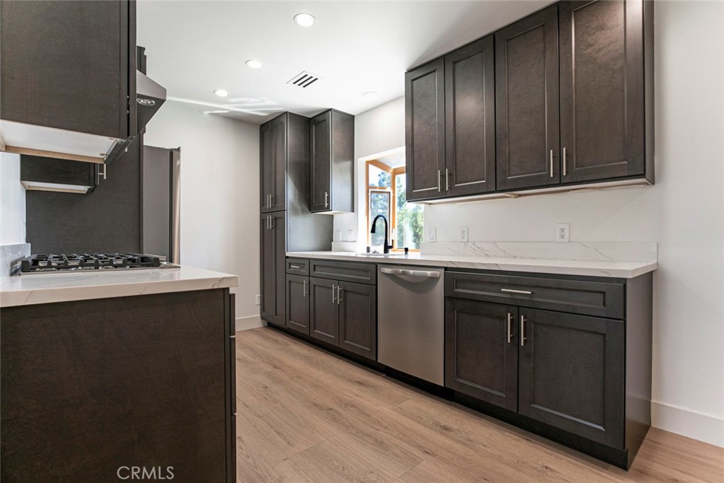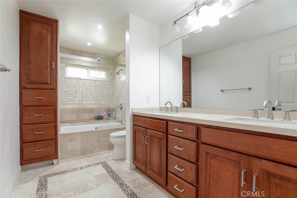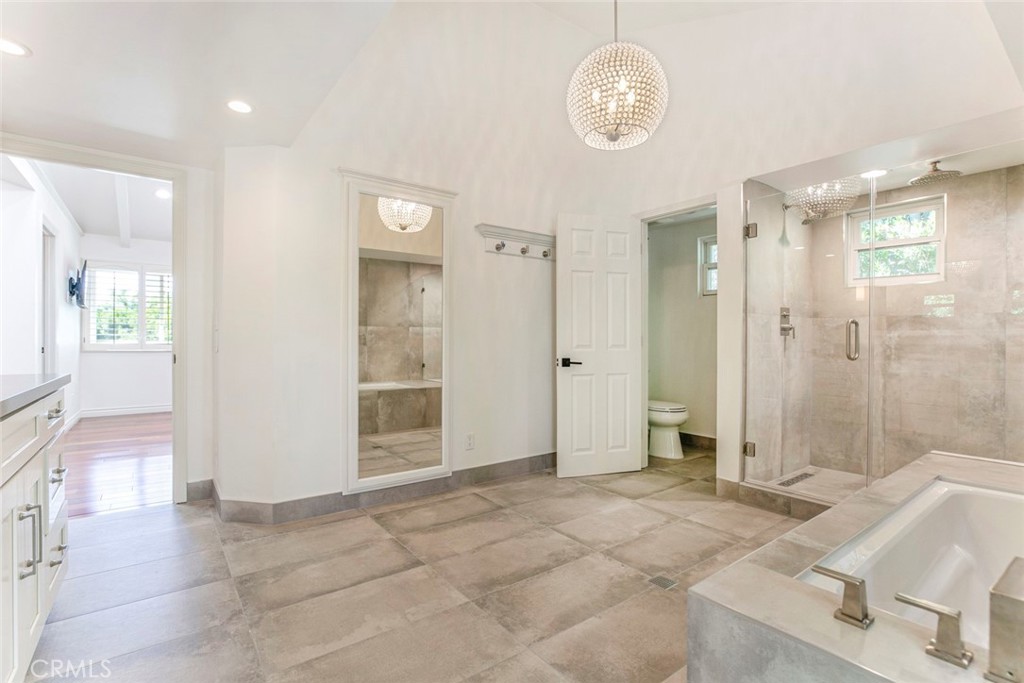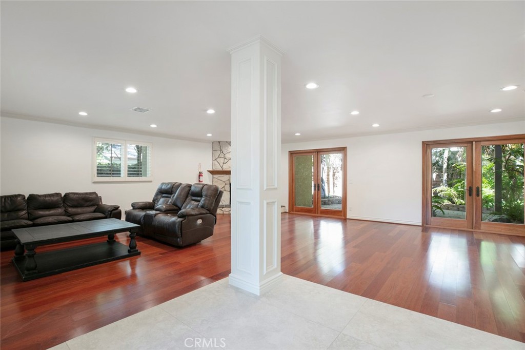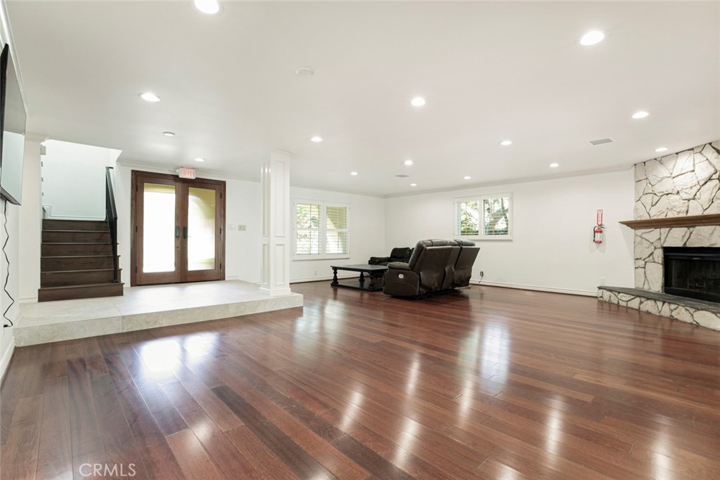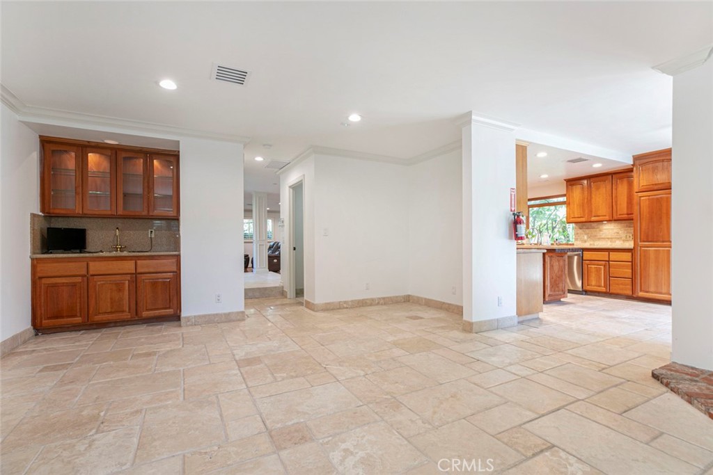 The owner invested over $400,000 transforming this home into a stunning showcase of quality and comfort. The main home welcomes you with a formal living room guest bathroom and French doors opening to the backyard oasis. The family room features a fireplace and wet bar, leading to a gourmet kitchen with travertine flooring, recessed lighting, and a breakfast area overlooking lush landscaping and the sparkling pool.