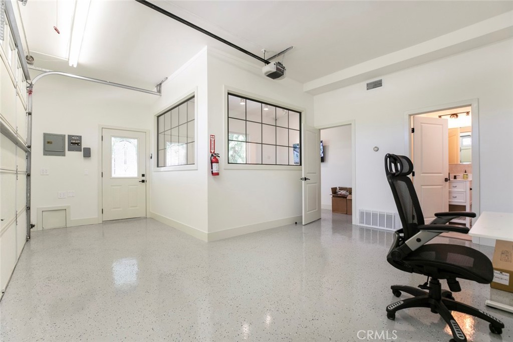 3-car garage, the garage can be used as a gym has ½ a bathroom. Ample gated parking,