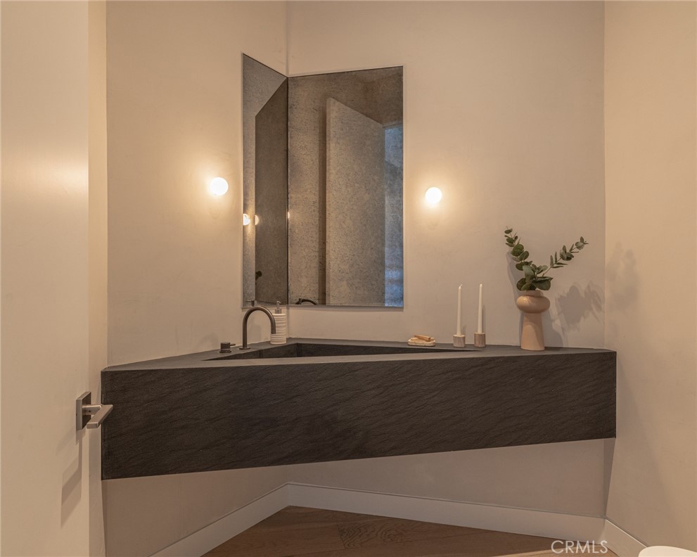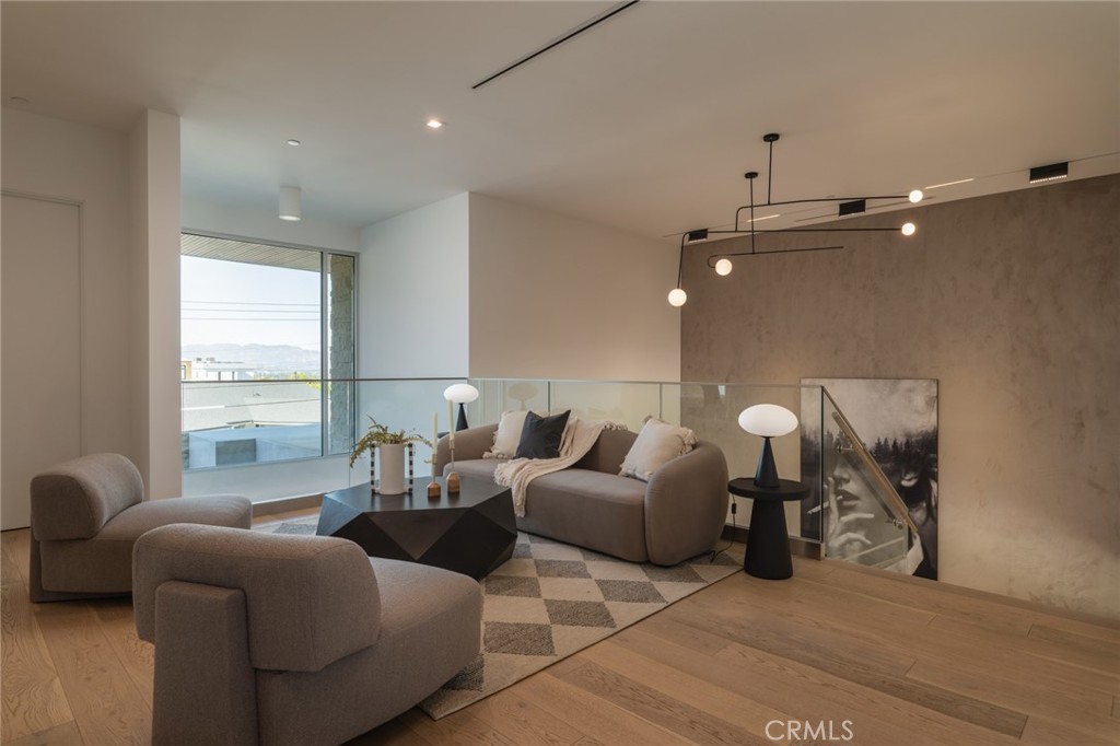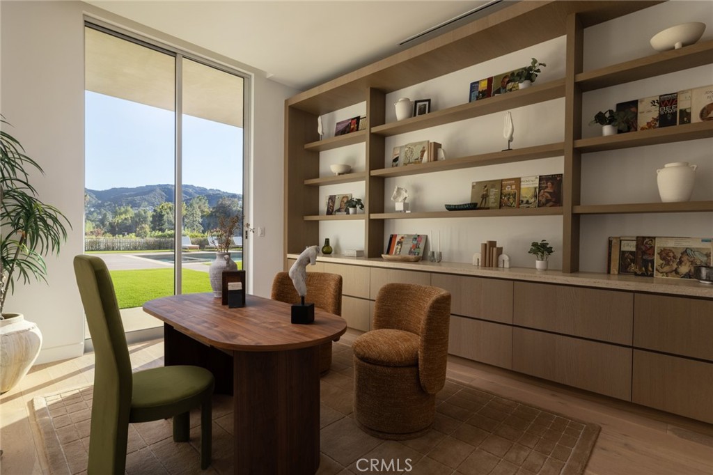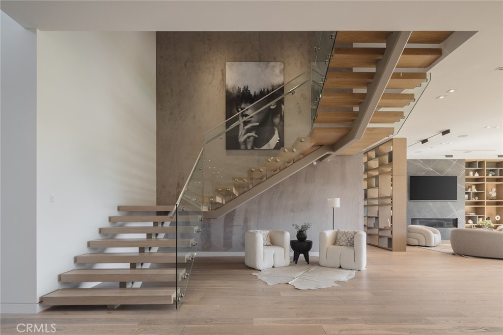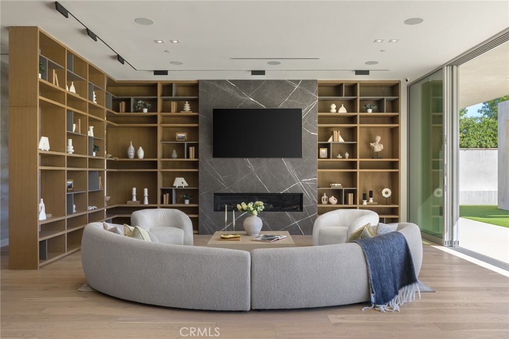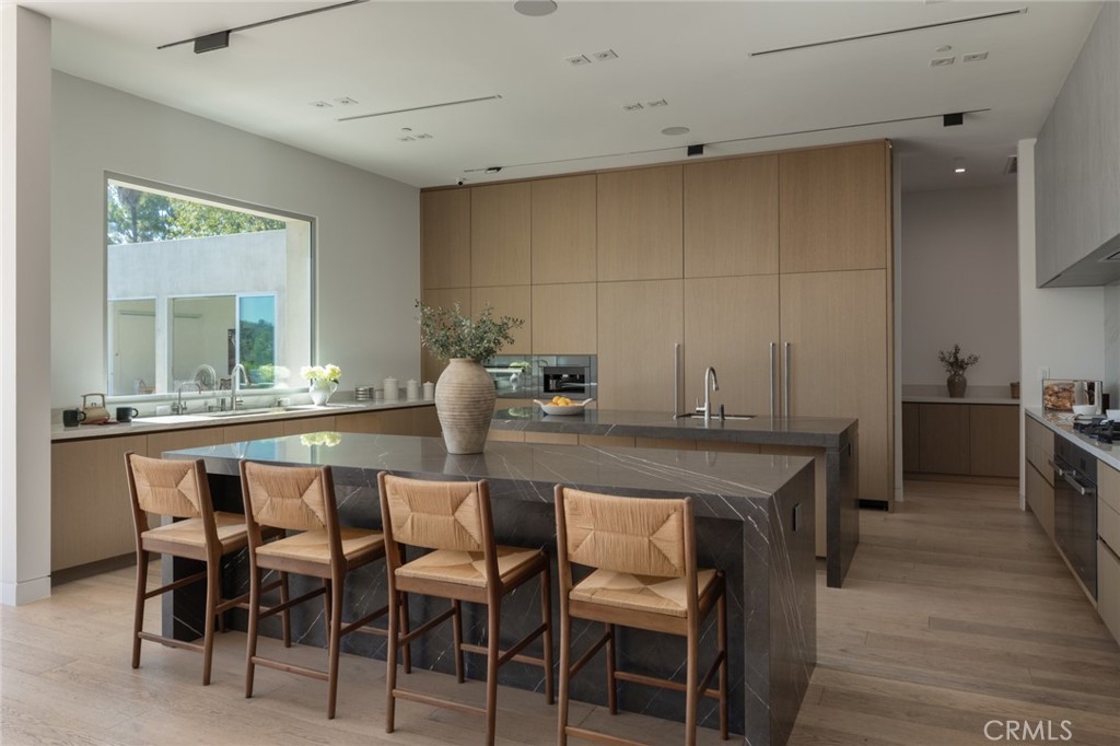 Perched in the coveted Encino Hills, this newly built architectural gem, designed by Dorothy Macik and architect Eran Gispan, blends modern design with organic serenity, framed by sweeping panoramic views. A grand pivoting glass door welcomes you into a world of refined luxury, where wide-plank white oak floors flow seamlessly, complemented by bespoke gray-smoke cabinetry. The gourmet kitchen is a masterpiece, featuring Quartzite countertops, honed marble finishes, Watermark fixtures, and custom cabinetry. Designed for effortless entertaining, the open-concept living spaces are anchored by a dramatic dual-sided fireplace, flanked by hand-forged steel shelving with smoke-tinted mirrors. Velvet wallpaper adds tactile luxury, while Fleetwood sliding doors dissolve indoor-outdoor boundaries. Ascend the floating staircase to four lavish en-suite bedrooms, each a private sanctuary. The primary suite offers a patio balcony with breathtaking views, a cozy fireplace, and a spa-inspired bath clad in travertine stone, complete with dual vanities, a soaking tub, and a glass-enclosed shower. A cinema-worthy movie theater ensures an immersive entertainment experience. The backyard epitomizes California living with a sparkling pool and spa, outdoor BBQ kitchen, and sports court, all set against the stunning unobstructed view of a hillside backdrop. A versatile ADU includes a gym and a bedroom—ideal for guests or extended stays. Additional highlights include a powder room with a handmade stone sink, modern drywall detailing, and Allied Maker light fixtures. Fully equipped with an automated smart home system and state-of-the-art sound, this estate offers unparalleled convenience and ambiance. Moments from Ventura Blvd, it’s a rare fusion of luxury, tranquility, and urban accessibility.
