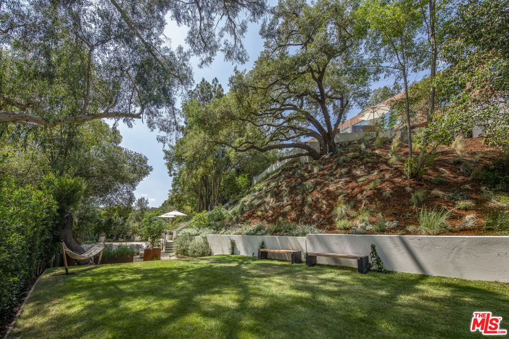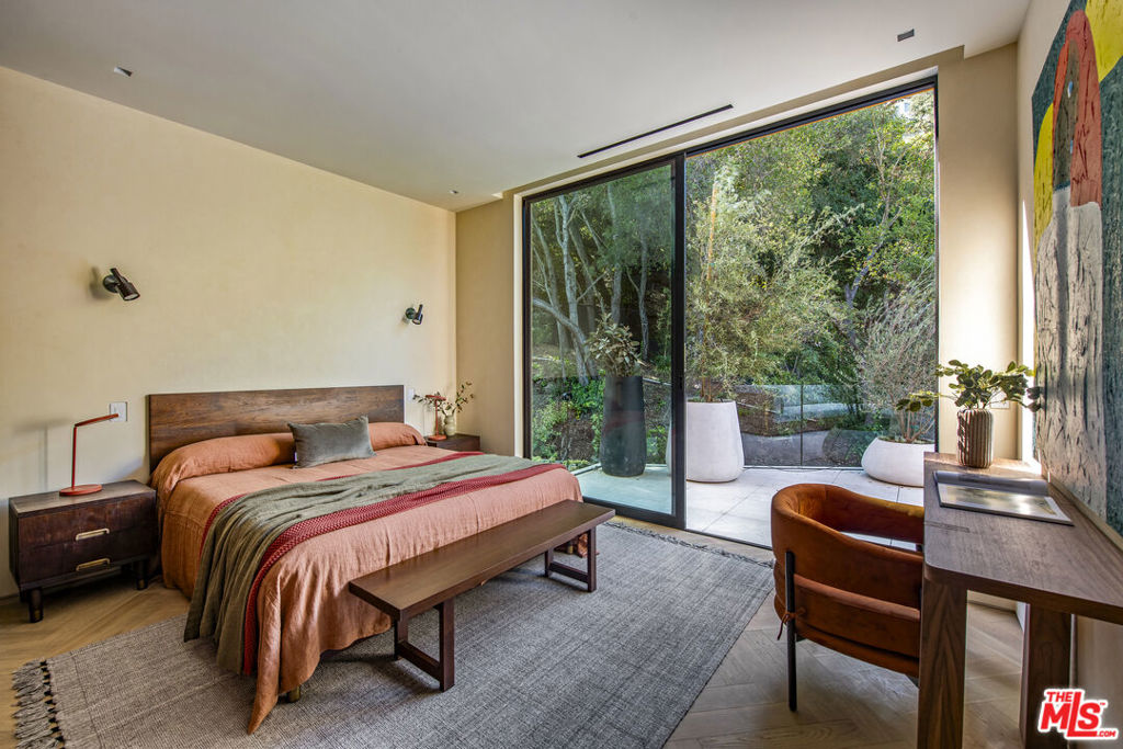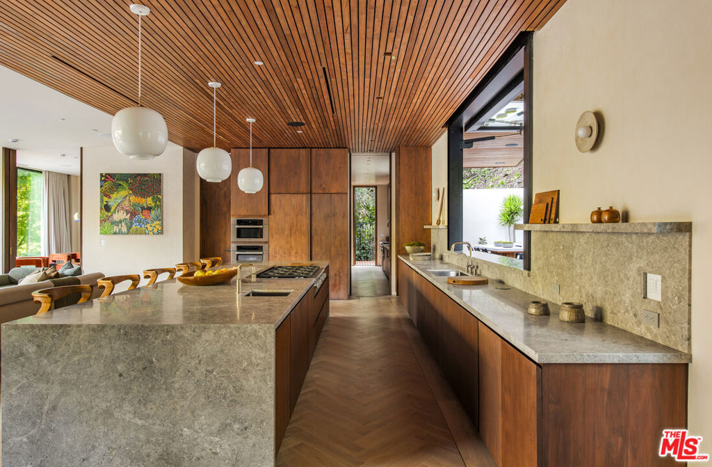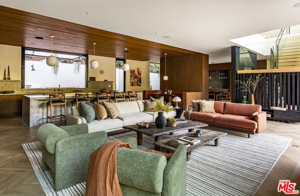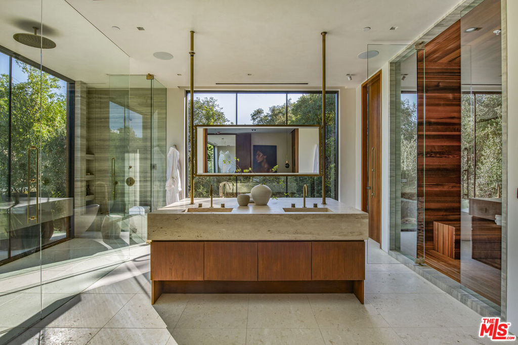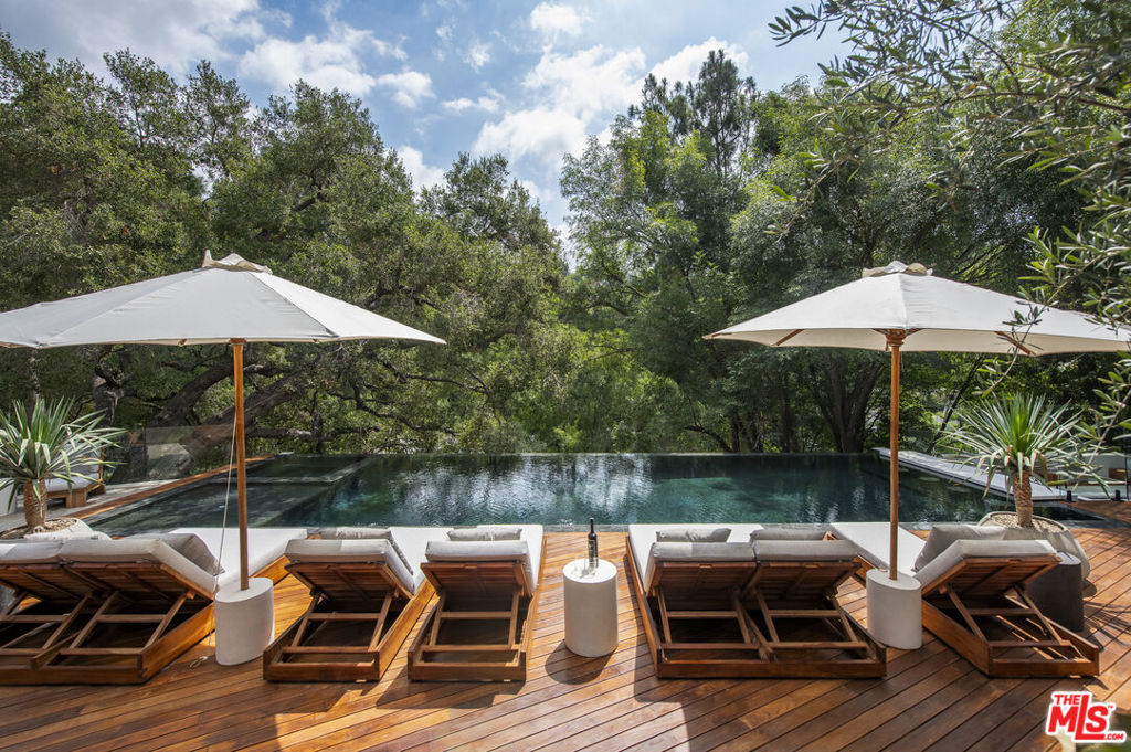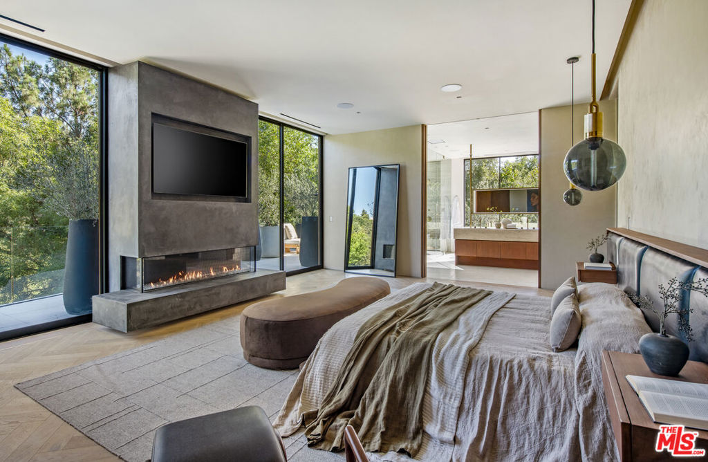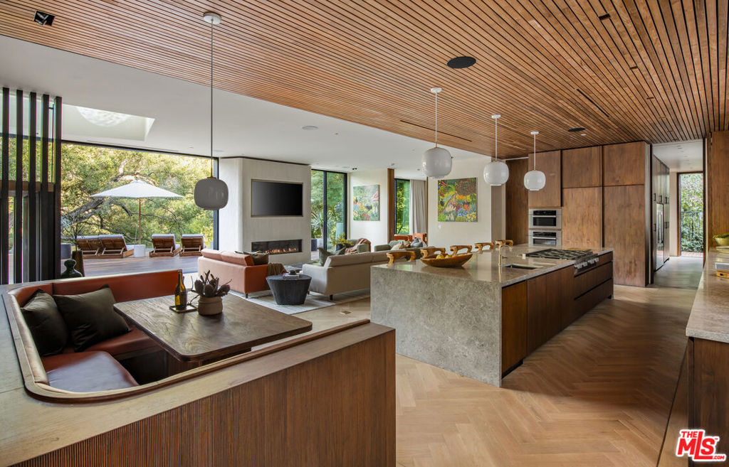 Welcome to a triumph of design and detail; a sanctuary of transitional Scandinavian modern design in the prestigious Beverly Hills neighborhood. This six-bed, nine and a half bath new construction home, with interior design by Abramson Architects, blends unparalleled craftsmanship with contemporary elegance and timeless sophistication. Nestled amidst majestic oak trees and serene canyon views, the estate invites you to immerse yourself in the ultimate luxury living experience.This architectural masterpiece is perched on a gated estate spanning almost an acre. Every detail has been thoughtfully curated, showcasing ultra-high-end materials, and organic bespoke finishes, resulting in a vacation-villa ambiance. The striking exterior, adorned with warm teak wood siding and black basalt stone, is both inviting and architecturally stunning, while mature hedges ensure maximum privacy.Inside, 10+ foot ceilings and expansive Fleetwood pocket doors create a seamless indoor-outdoor flow, flooding the main living spaces with natural light, and a sense of effortless grandeur. A chef's dream, the large professional kitchen features a striking 15-foot custom stone island, top-of-the-line Miele appliances, a charming breakfast nook, and a large automated pop-up window that transforms the space for effortless al fresco entertaining. Transitioning upstairs, the substantial primary suite impresses with a serene ambiance, complete with dual custom closets, a striking plastered floating fireplace, a secluded deck overlooking verdant canyon vistas, and a spa-like bathroom featuring a steam rain shower and a custom birchwood sauna. An expansive 50+ foot skylight floods the upper level with natural light, where four bedrooms extend to private outdoor decks, further enhancing the home's connection to nature. The piece de resistance is the floating staircase, complimented by a one-of-a-kind chandelier art piece that hangs; a true showpiece. The backyard is a seamless extension of the home's main living spaces, and are equally captivating with a zero-edge infinity pool and spa with swim-up bar, multiple fire pit lounges, pergolas, and fully equipped outdoor kitchensperfect for entertaining or peaceful relaxation. The lower level is a haven for recreation and entertainment, and is thoughtfully and artistically curated highlighting a pickleball court with stadium-like seating, pergola, grassy knoll with lush landscaping and hand-made fountains, all framed by the breathtaking beauty of the surrounding nature.Additional amenities include a secondary chef's kitchen, tiered private theatre, state-of-the-art home gym, office with custom cabinetry, temperature-controlled wine storage, showcase 3-car garage, parking up to 10 cars, two well-appointed laundry rooms, and Savant-powered smart home technology for modern convenience. The home is accompanied by custom-made indoor and outdoor furniture specifically deigned to fit within the Mid-Century Scandinavian design.The Hutton House is a private oasis of luxury and serenity where thoughtful design meets understated elegance. Every element reflects a commitment to quality and comfort, offering every conceivable amenity to those who demand nothing less than perfection. A rare opportunity to own a truly exceptional home in one of the world's most coveted locations.