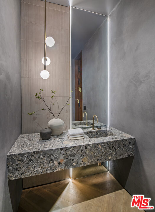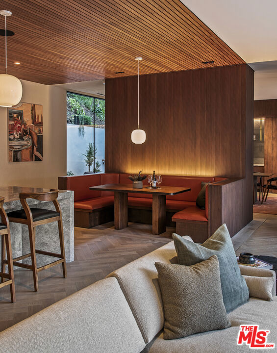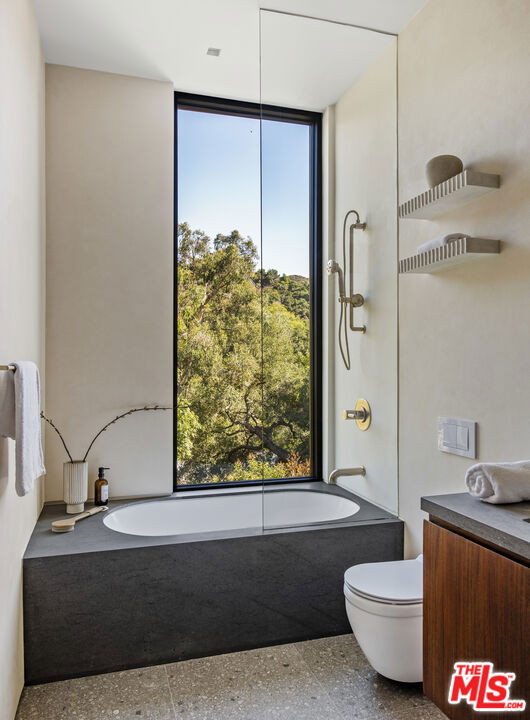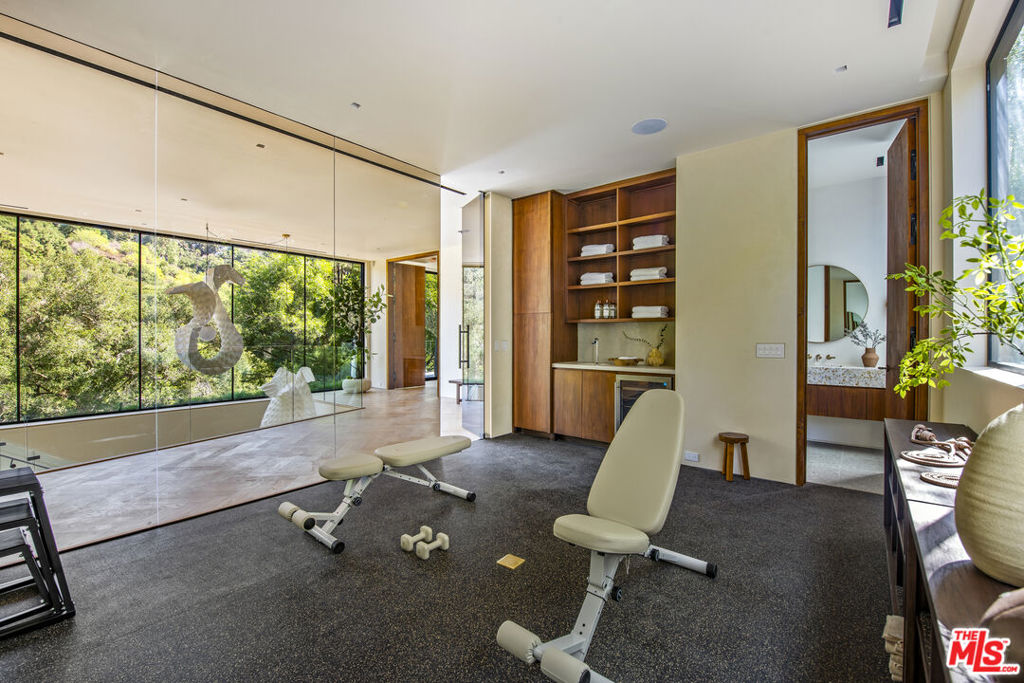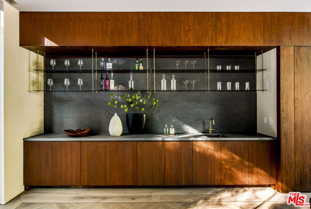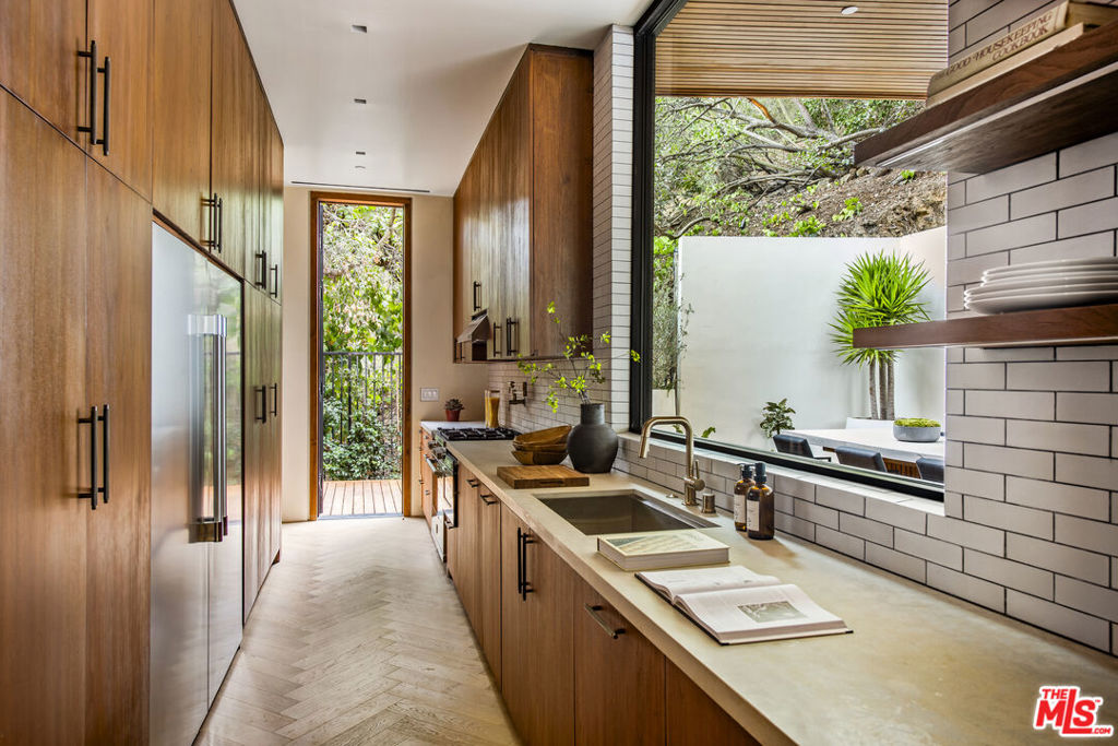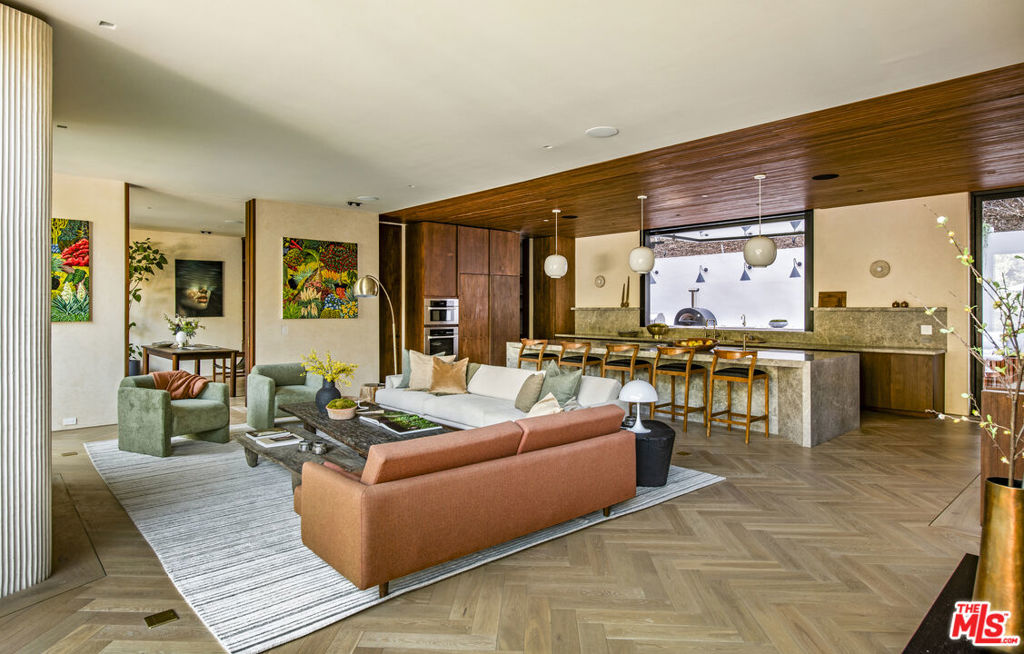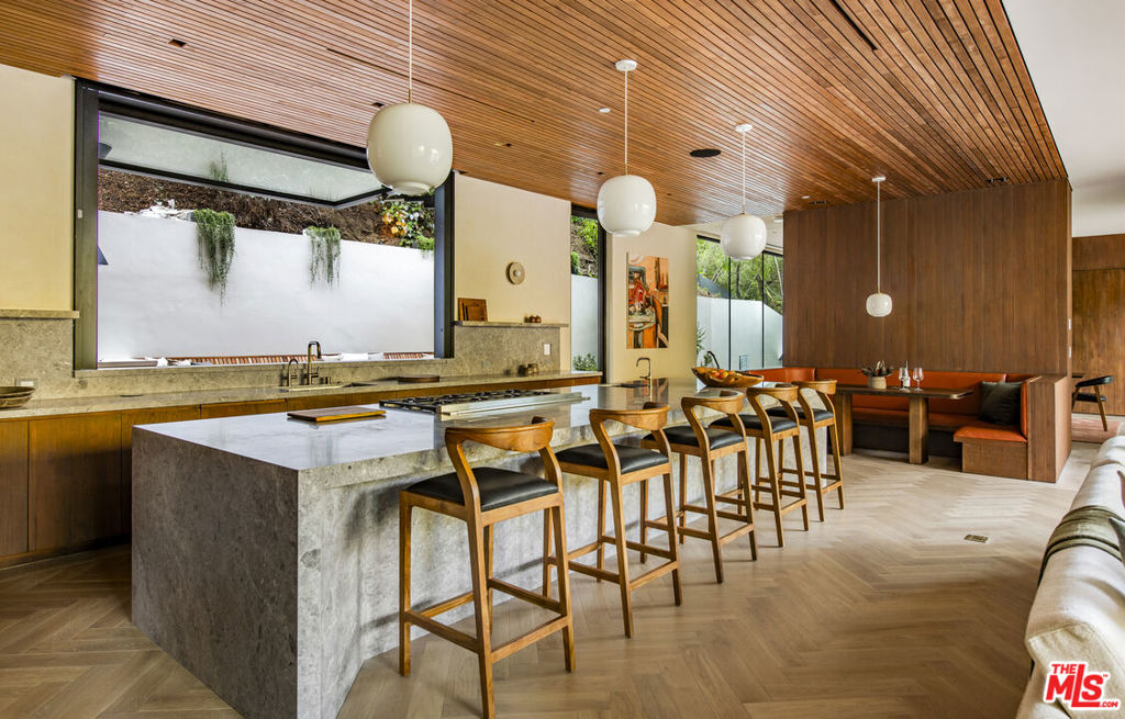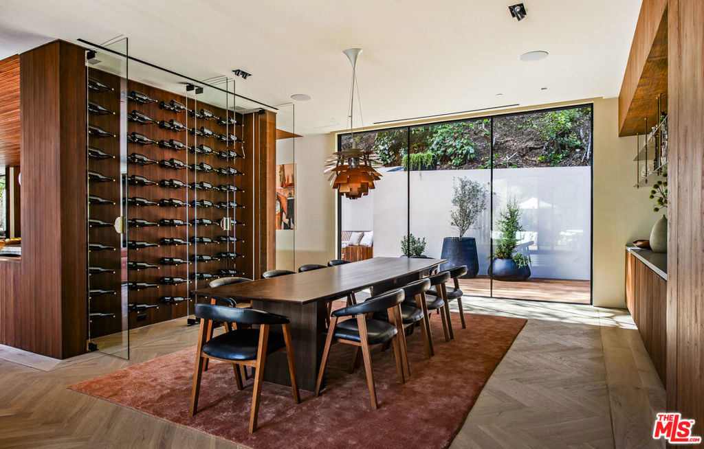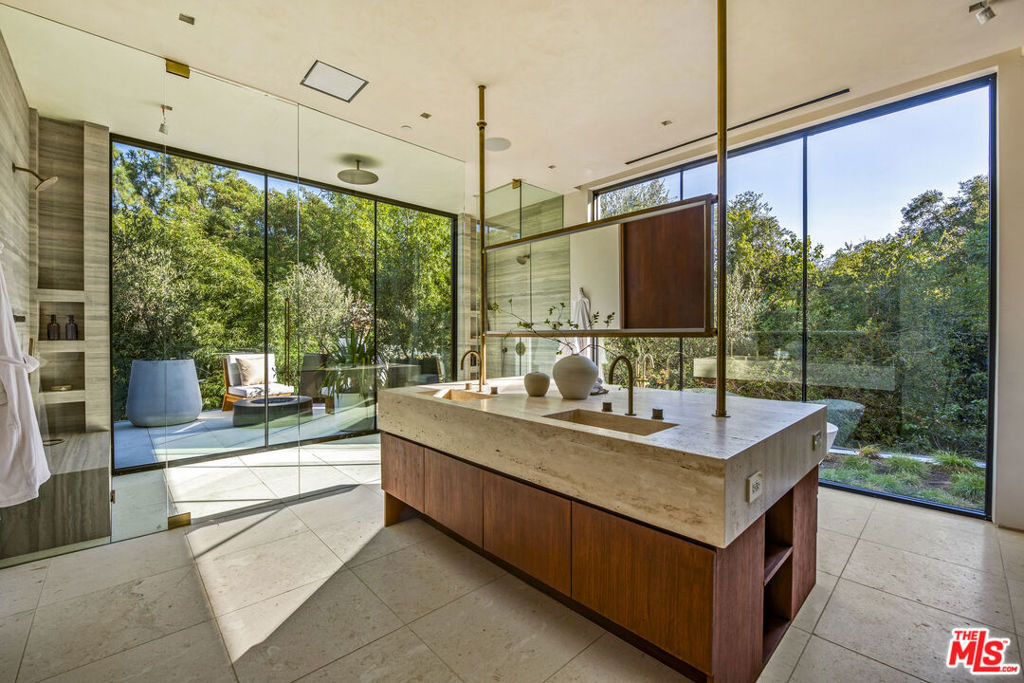 Welcome to a triumph of design and detail; a sanctuary of transitional Scandinavian modern design in the prestigious Beverly Hills neighborhood. This six-bed, nine and a half bath new construction home, with interior design by Abramson Architects, blends unparalleled craftsmanship with contemporary elegance and timeless sophistication. Nestled amidst majestic oak trees and serene canyon views, the estate invites you to immerse yourself in the ultimate luxury living experience.This architectural masterpiece is perched on a gated estate spanning almost an acre. Every detail has been thoughtfully curated, showcasing ultra-high-end materials, and organic bespoke finishes, resulting in a vacation-villa ambiance. The striking exterior, adorned with warm teak wood siding and black basalt stone, is both inviting and architecturally stunning, while mature hedges ensure maximum privacy.Inside, 10+ foot ceilings and expansive Fleetwood pocket doors create a seamless indoor-outdoor flow, flooding the main living spaces with natural light, and a sense of effortless grandeur. A chef's dream, the large professional kitchen features a striking 15-foot custom stone island, top-of-the-line Miele appliances, a charming breakfast nook, and a large automated pop-up window that transforms the space for effortless al fresco entertaining. Transitioning upstairs, the substantial primary suite impresses with a serene ambiance, complete with dual custom closets, a striking plastered floating fireplace, a secluded deck overlooking verdant canyon vistas, and a spa-like bathroom featuring a steam rain shower and a custom birchwood sauna. An expansive 50+ foot skylight floods the upper level with natural light, where four bedrooms extend to private outdoor decks, further enhancing the home's connection to nature. The piece de resistance is the floating staircase, complimented by a one-of-a-kind chandelier art piece that hangs; a true showpiece. The backyard is a seamless extension of the home's main living spaces, and are equally captivating with a zero-edge infinity pool and spa with swim-up bar, multiple fire pit lounges, pergolas, and fully equipped outdoor kitchensperfect for entertaining or peaceful relaxation. The lower level is a haven for recreation and entertainment, and is thoughtfully and artistically curated highlighting a pickleball court with stadium-like seating, pergola, grassy knoll with lush landscaping and hand-made fountains, all framed by the breathtaking beauty of the surrounding nature.Additional amenities include a secondary chef's kitchen, tiered private theatre, state-of-the-art home gym, office with custom cabinetry, temperature-controlled wine storage, showcase 3-car garage, parking up to 10 cars, two well-appointed laundry rooms, and Savant-powered smart home technology for modern convenience. The home is accompanied by custom-made indoor and outdoor furniture specifically deigned to fit within the Mid-Century Scandinavian design.The Hutton House is a private oasis of luxury and serenity where thoughtful design meets understated elegance. Every element reflects a commitment to quality and comfort, offering every conceivable amenity to those who demand nothing less than perfection. A rare opportunity to own a truly exceptional home in one of the world's most coveted locations.