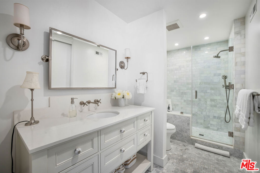 Finally, a private and fully-remodeled townhome in the front row of prestigious Century Hill! This exceptional townhouse boasts custom handmade cabinets in the kitchen and living room, featuring Rohl faucets and a Franke sink for a touch of luxury. The kitchen also includes a water filtration system and an Everhot lead-free hot/cold water dispenser, perfect for culinary enthusiasts. For those who enjoy cooking, the kitchen is equipped with a Thermador Masterpiece series induction cooktop and Thermador appliances, ensuring top-notch performance. The custom wiring throughout the house includes ethernet and cable connections, catering to modern tech needs. Entertainment is taken to the next level with a Dolby Atmos screening system, complete with an Integra 9.2 amplifier and a Golden Ear speaker system, all displayed on a Sony 4k screen. Whether it's movie night or a special event, this setup will leave you spellbound. The Crestron Control system adds convenience, allowing you to manage various aspects of your home with ease. The townhouse even features a steam system in the primary bath, providing a spa-like experience at home. The primary bath is further adorned with Rohl faucets, vintage marble flooring, and a Toto washlet integrated toilet for added comfort and sophistication. Spanning twenty lush acres, Century Hill offers more than just a luxurious home. It's a gated, resort-style community with unparalleled security. This beautiful townhouse enjoys panoramic vistas, including a direct view of the iconic Hollywood sign from the primary suite. Situated conveniently close to world-class shopping and dining, you'll find the premier Century City Westfield Mall and the chic boutiques and restaurants of Beverly Hills just blocks away. Plus, with the upcoming Metro Purple D-Line Extension, you'll have seamless access to all that Los Angeles has to offer. Century Hill is a haven for those who value an active lifestyle. The community boasts a state-of-the-art fitness center, tennis and pickleball courts, an indoor golf range, and squash courts. There are also five swimming pools with soothing spas for relaxation. For hosting events, Century Hill offers a spacious banquet room and a full kitchen in their CH Clubhouse, perfect for creating unforgettable memories with friends and neighbors. Security is a top priority at Century Hill. The community is safeguarded by 24/7 security personnel, two gated entrances, and state-of-the-art camera surveillance. They even offer guest golf cart transportation and a designated guest parking area. Parking is a breeze with three deeded underground parking spaces with direct entry, along with additional parking for guests/events. Ample storage space is available, ensuring your prized possessions have a secure home. Stay connected with lightning-fast 10-gigabit fiber optic network connectivity, extending to common areas. Partnered with DirecTV for premium programming, you'll also benefit from 24/7 technical support. In conclusion, 2250 Century Hill is not just a residence; it's a lifestyle. With its remarkable blend of security, stunning views, and remodeled interiors, this townhouse offers an unmatched living experience in the heart of Century City. Don't miss your chance to be part of this exclusive enclave where luxury meets security, and panoramic views become part of your everyday life. Century Hill awaits, ready to elevate your living experience to new heights.