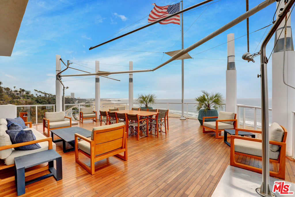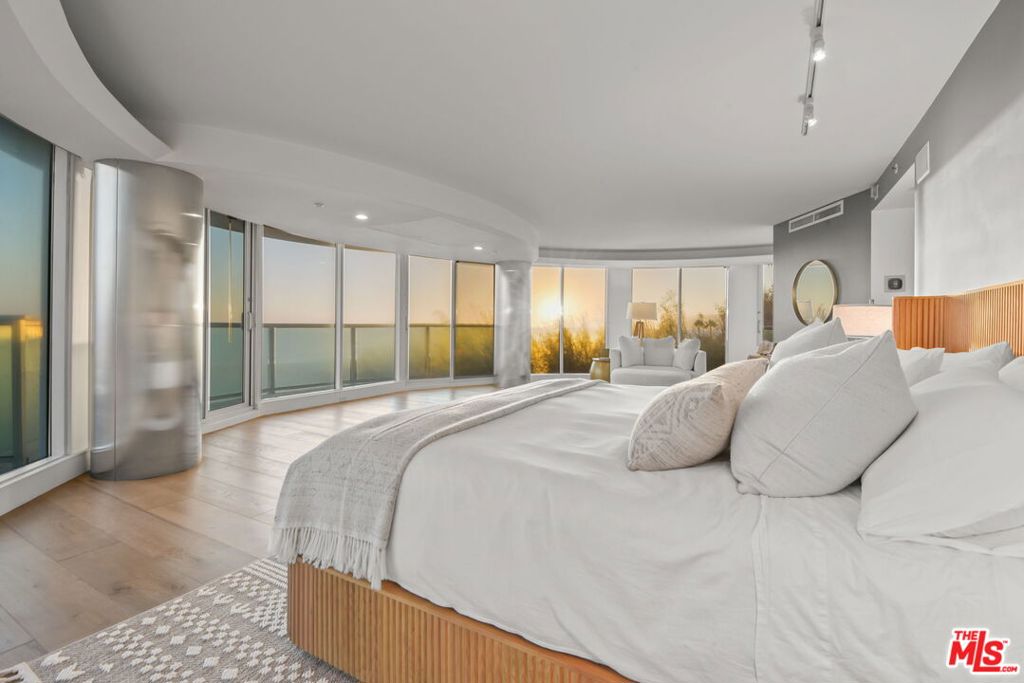 Live your best beach life in this iconic two-story condo at 101 Ocean Avenue, where the Pacific stretches endlessly before you. From sunrise to sunset, watch sailboats drift by, dolphins play, and the Santa Monica Pier Ferris wheel glow against the night sky. In July, the coastline comes alive with fireworksbest viewed from your own private deck or the custom sea-glass light-up bar inside. Take the underground tunnel for a walk on the beach, or stroll to nearby restaurants for seaside dining.Inside, every detail has been designed for comfort and luxury. Each of the three bedrooms includes an ensuite bath, plus a stylish half bath for guests. The primary suite offers the same 180-degree ocean panorama, along with two spacious walk-in closets.The chef's kitchen features top-of-the-line Miele and Viking appliances, quartz countertops, and a 150-bottle Viking wine cooler. A large laundry room provides a full sink and abundant cabinetry. One bedroom has been transformed into a private media room with seven leather reclinerseasily converted back to a bedroom or office. Every window is fitted with Lutron solar shades, and the primary bath includes a BainUltra hydro-jetted tub with heated backrest, chromatherapy, and aromatherapy features. This home also includes three parking spaces and two electric car chargers. The building's resort-style pool area has just completed a multi-million-dollar renovation.If you've ever dreamed of living at the beach, this is the dream realized. Welcome home to 101 Ocean Avenue.